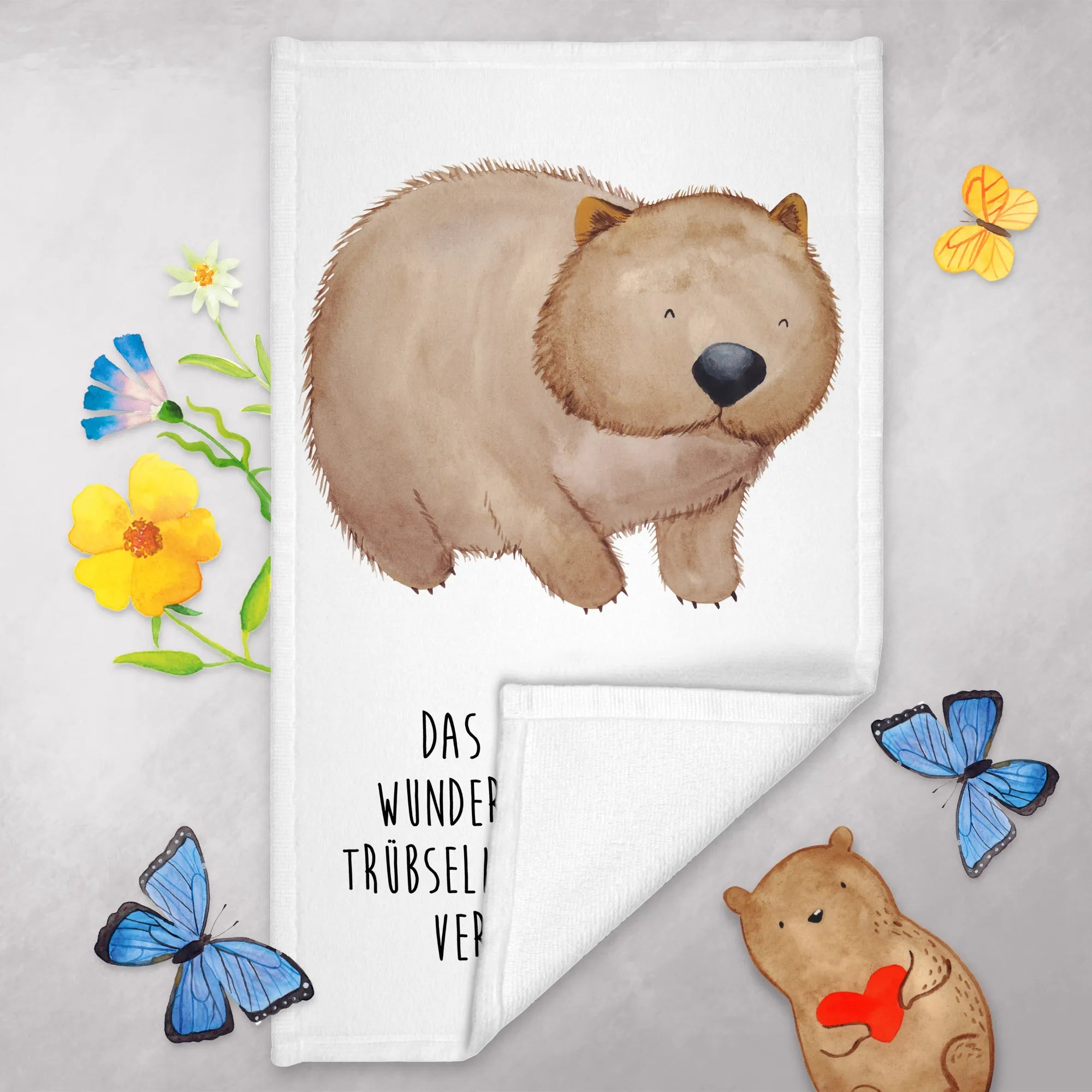 Jeder Blick auf den Wombat lässt dich an die schönen Seiten des Lebens denken. Entscheide dich für dieses charmante Produkt von Mr. & Mrs. Panda und schenke Erwachsene und Kinder Freude und schöne Erinnerungen. Egal ob als Geschenk oder für dich selbst – dieses Handtuch ist ein wahres Highlight und wird von jedem gemocht, der es sieht!