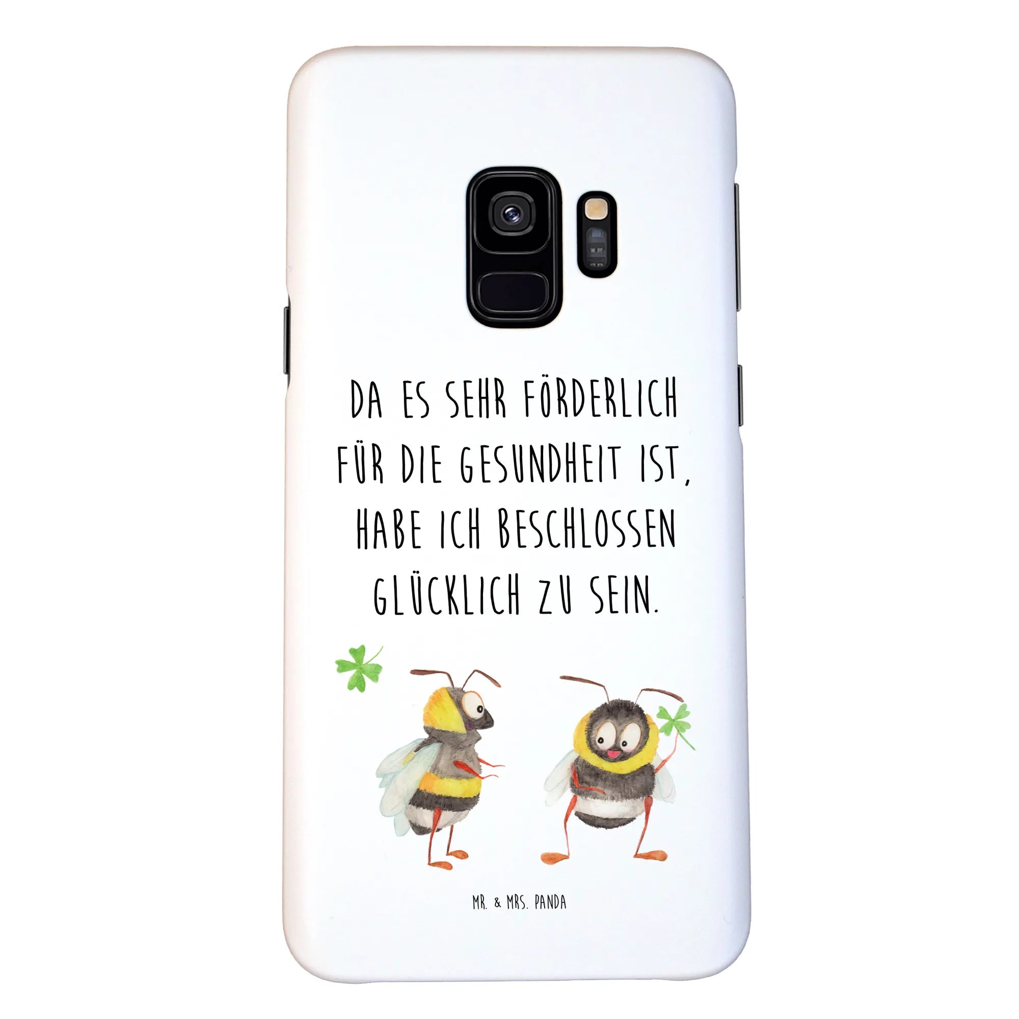 Die Samsung Galaxy S9 Handyhülle mit dem zauberhaften Motiv 'Hummeln mit Kleeblatt' aus der einzigartigen Small World Kollektion von Mr. & Mrs. Panda ist einfach perfekt für dich! Diese maßgeschneiderte Schutzhülle bietet nicht nur einen optimalen Schutz für dein Smartphone, sondern bringt zudem eine ordentliche Portion gute Laune mit sich. Mit liebevoll gestalteten Hummeln, die fröhlich ein Kleeblatt halten, zaubert sie ein Lächeln auf jedes Gesicht.