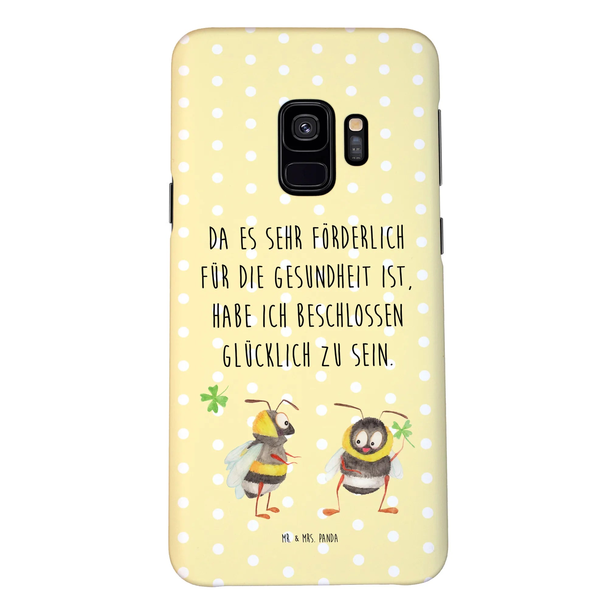 Die Kombination aus Funktionalität und toller Gestaltung macht die Samsung Galaxy S9 Hülle mit Hummeln und Kleeblatt zu einem Muss. Schenke Dir oder Deinen Lieben etwas ganz Besonderes und bringe positive Energie in den Alltag – genau das ist die Mission von Mr. & Mrs. Panda. Egal wo du bist, mit dieser Handyhülle bist du immer gut geschützt und zeigst gleichzeitig Deinen Sinn für schönes Design und Lebensfreude.