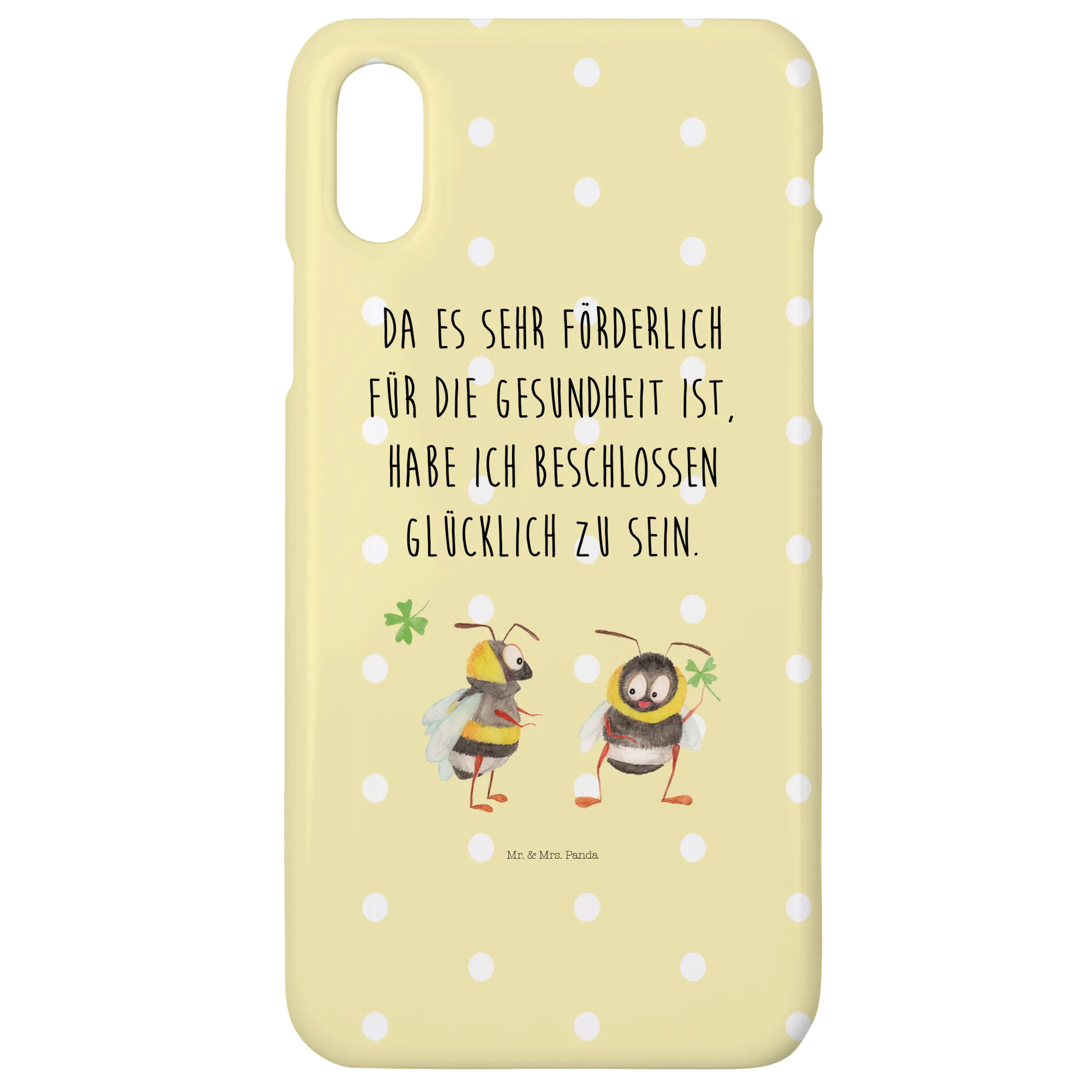 Egal ob als Geschenk für einen lieben Menschen oder für dich selbst, diese Hülle ist ein echter Hingucker! Die bedeutsame Botschaft "Da es sehr förderlich für die Gesundheit ist, habe ich beschlossen, glücklich zu sein" erinnert dich jeden Tag daran, die positiven Seiten des Lebens zu genießen. Die Hummeln stehen symbolisch für Fleiß und die Freude am Leben. Sie fördern die Verbindung zu deinen Liebsten und bringen dich in gute Stimmung.