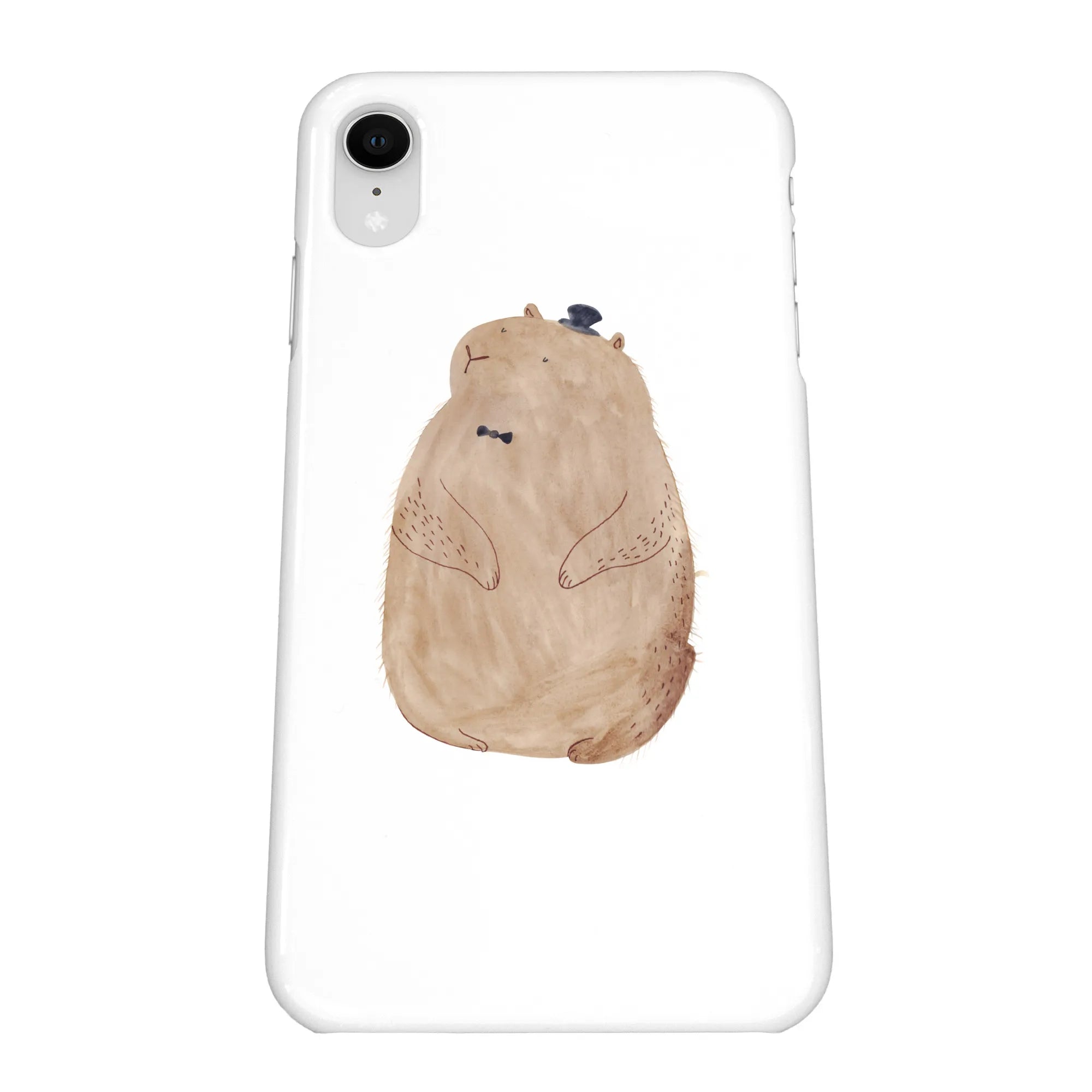 Unsere Hülle ist mehr als nur ein Schutz: Sie ist ein kleiner Glücksbringer für Deinen Alltag. Das liebevoll aquarellierte Murmeltier mit Zylinder strahlt Fröhlichkeit, Freundlichkeit und Anstand aus und bringt ein warmes Lächeln in Deine Hosentasche. Die helle, weiße Hintergrundfarbe setzt das Motiv perfekt in Szene und passt zu jedem Outfit.