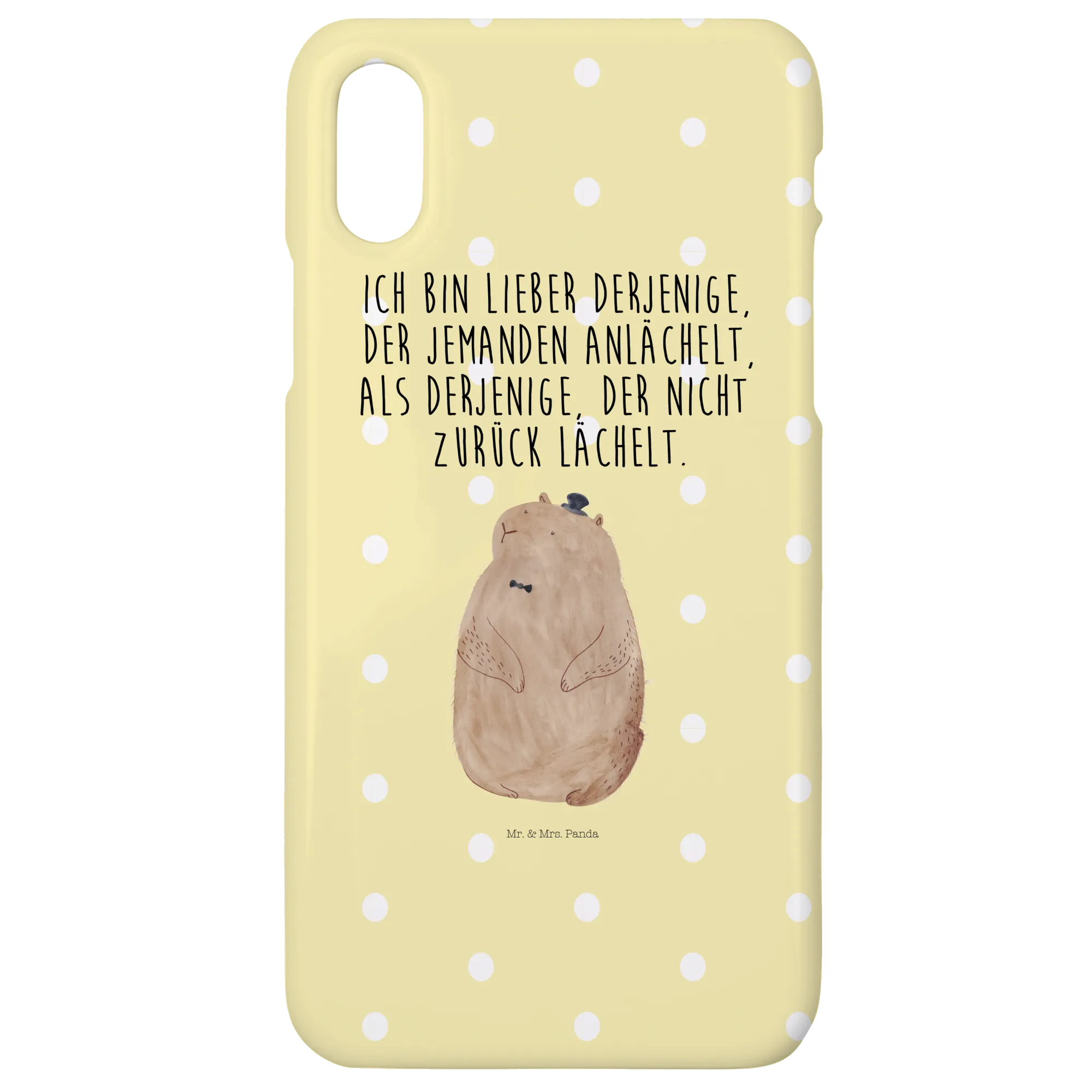 Mit einem abgebildeten Murmeltier und dem liebevollen Spruch "Ich bin lieber derjenige, der jemanden anlächelt, als derjenige, der nicht zurück lächelt", sorgt die Handyhülle nicht nur für einen stylischen Auftritt, sondern vermittelt auch eine wichtige Botschaft: Freundlichkeit und Respekt. Sie ist ein tolles Mitbringsel zu Geburtstagen, Weihnachten oder einfach mal so, um jemandem eine Freude zu machen. Die Small World Kollektion von Mr. & Mrs. Panda vereint charmante Tiermotive mit lustigen Sprüchen und ist so bunt und vielfältig wie unsere Tierwelt.