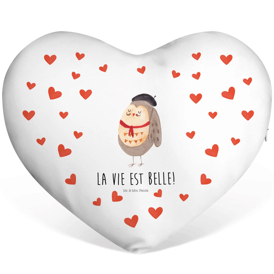 Das Herzkissen mit dem niedlichen Motiv der Eule Französisch von Mr. & Mrs. Panda ist der perfekte Begleiter für alle, die das Leben lieben! Mit dem süßen Spruch "La vie est belle!" zaubert es ein Lächeln in dein Gesicht.