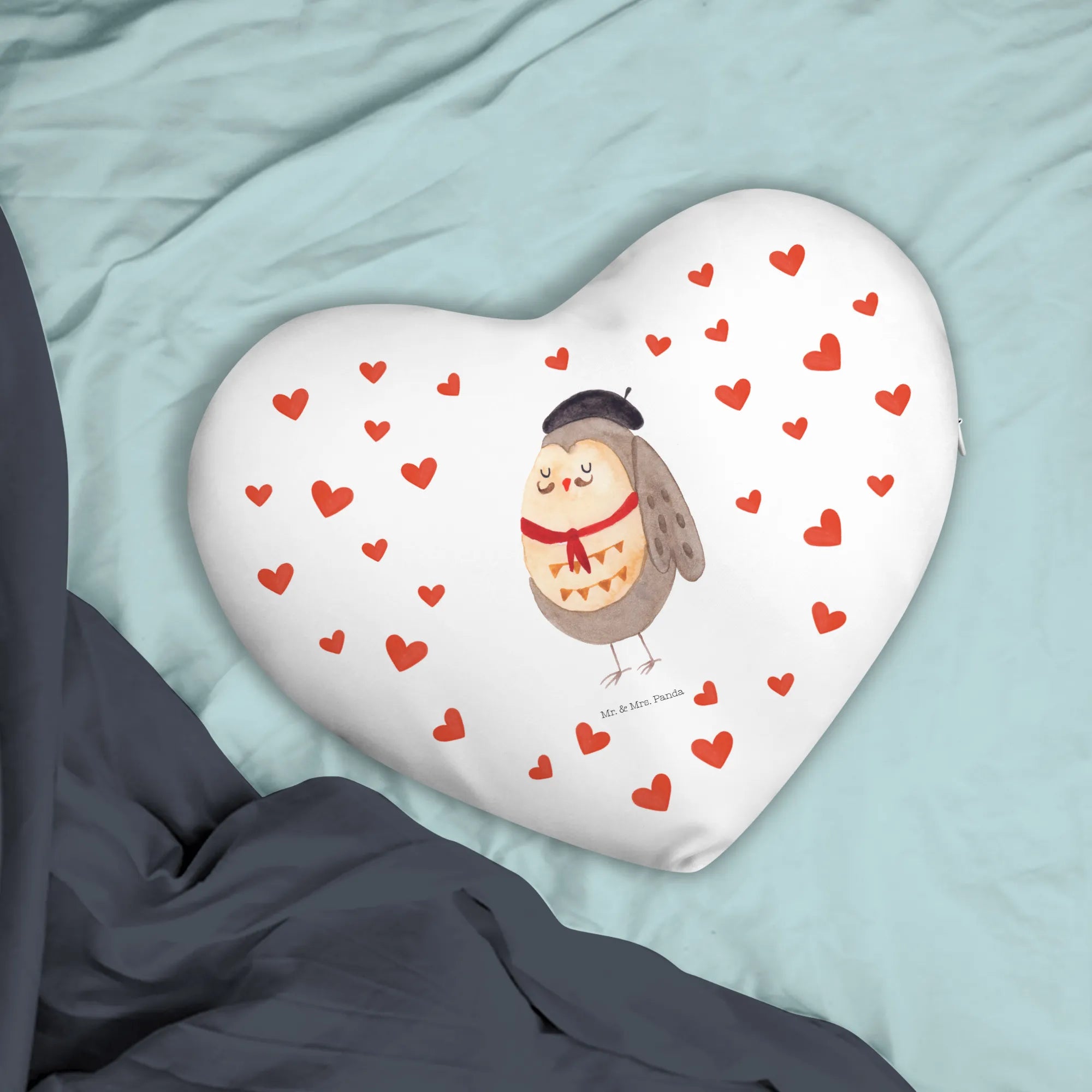 Mache dein Zuhause ein Stück fröhlicher mit diesem einzigartigen Herzkissen von Mr. & Mrs. Panda und lass die Eule Französisch deine Herzen berühren!
