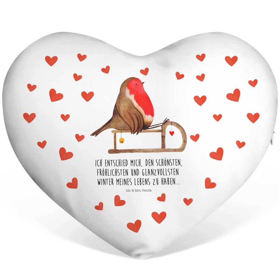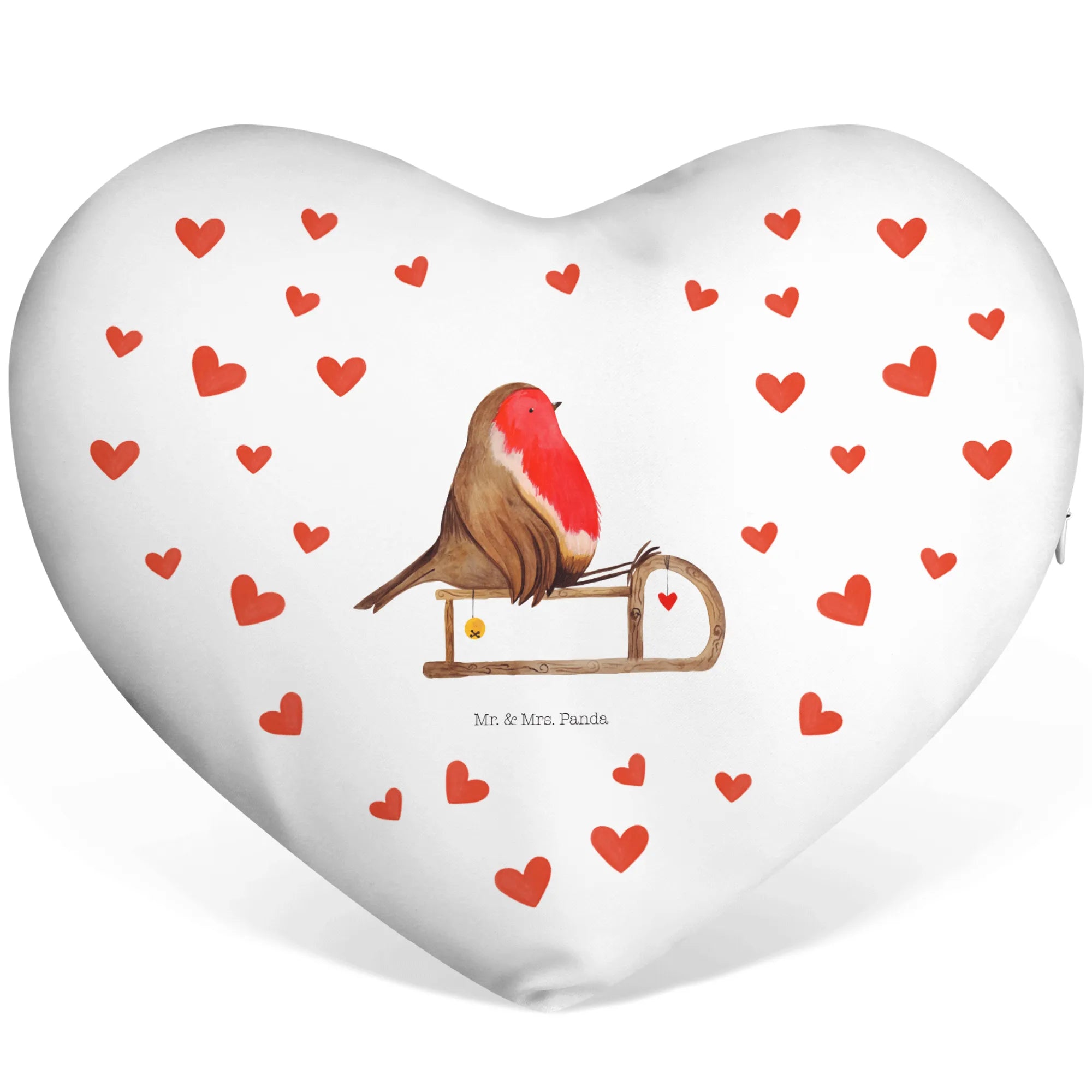Das wunderschöne Herzkissen mit dem niedlichen Motive eines Rotkehlchens auf einem Schlitten ist das perfekte Geschenk für die Winter- und Weihnachtszeit. Dieses kuschelige Kissen von Mr. & Mrs. Panda ist aus superfluschiger Mikrofaser gefertigt und hat eine Form, die Herzen höher schlagen lässt.