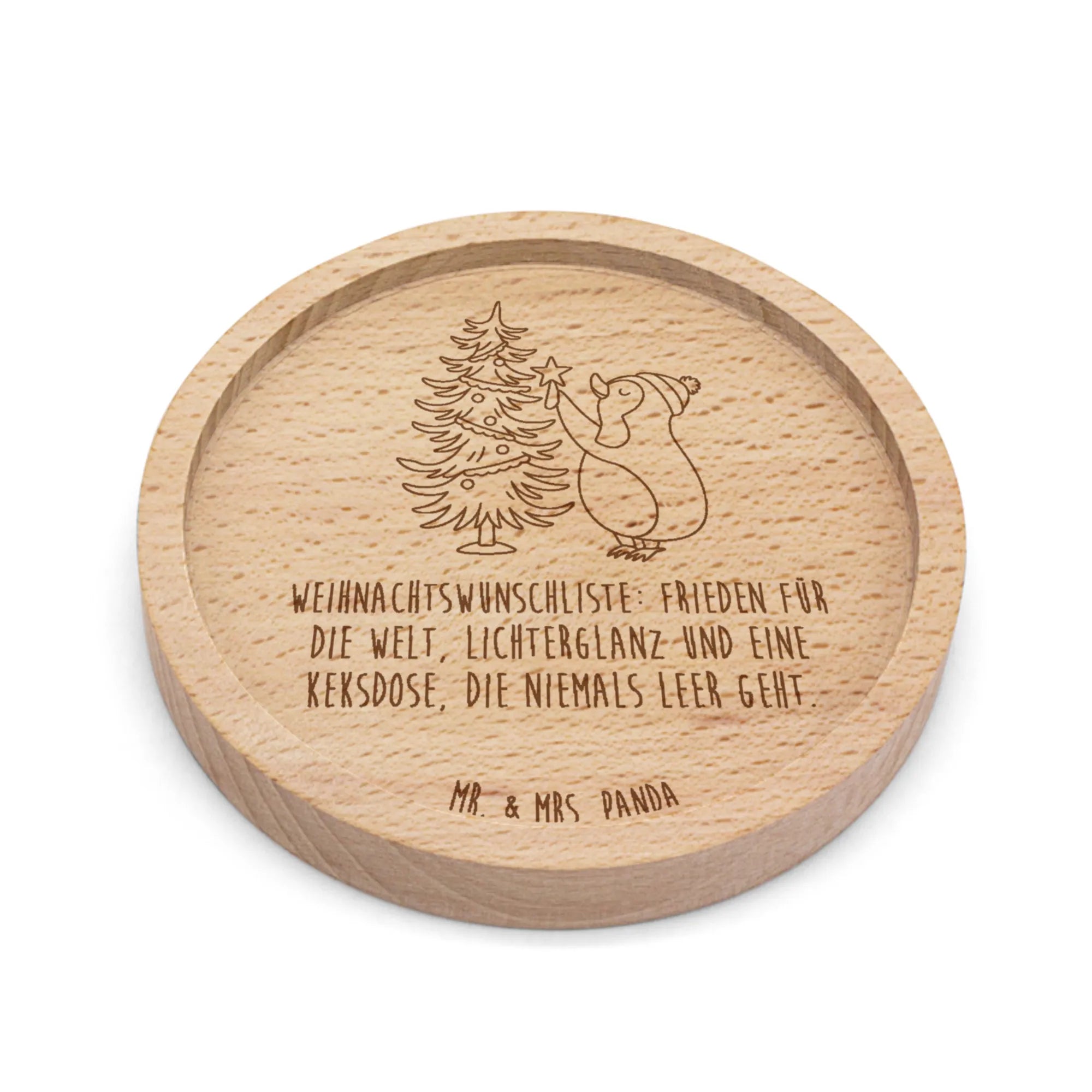Holz Untersetzer Pinguin Weihnachtsbaum - mit Spruch