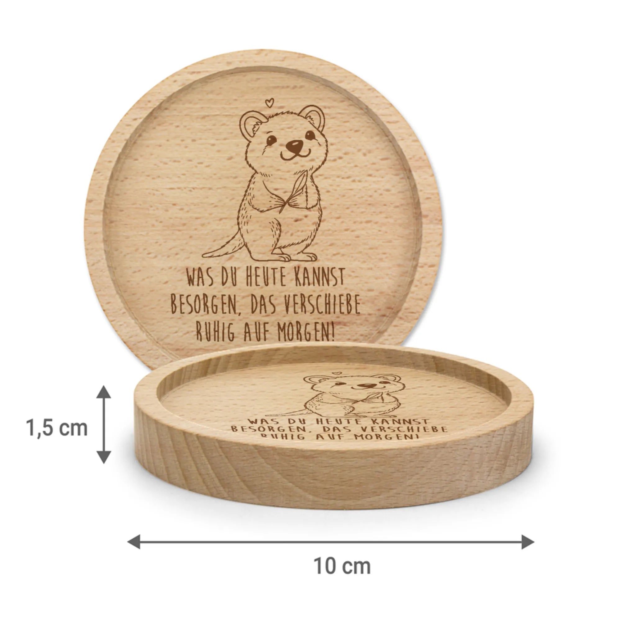 Entdecke die Schönheit des Alltags mit unserem wunderbaren runden Holzuntersetzer von Mr. & Mrs. Panda! Dieser Untersetzer hat einen Durchmesser von 98 mm und eine Dicke von 15 mm, perfekt um deinen Tisch vor unschönen Abdrücken, Kratzern und extremen Temperaturen zu schützen. Jeder Untersetzer ist aus hochwertigem, unbehandeltem Buchenholz gefertigt und bietet nicht nur Schutz, sondern auch einen einzigartigen Charme für deinen Ess- und Couchtisch. Die präzise Lasergravur zeigt wunderschöne Motive und Sprüche, die den Alltag aufhellen und ein Lächeln auf dein Gesicht zaubern. Die einfache Pflege macht ihn zu einem praktischen Begleiter – ein feuchtes Tuch genügt, um den Untersetzer sauber zu halten. Mach deinen Tisch zu einem echten Blickfang mit diesem liebevoll gestalteten Accessoire!