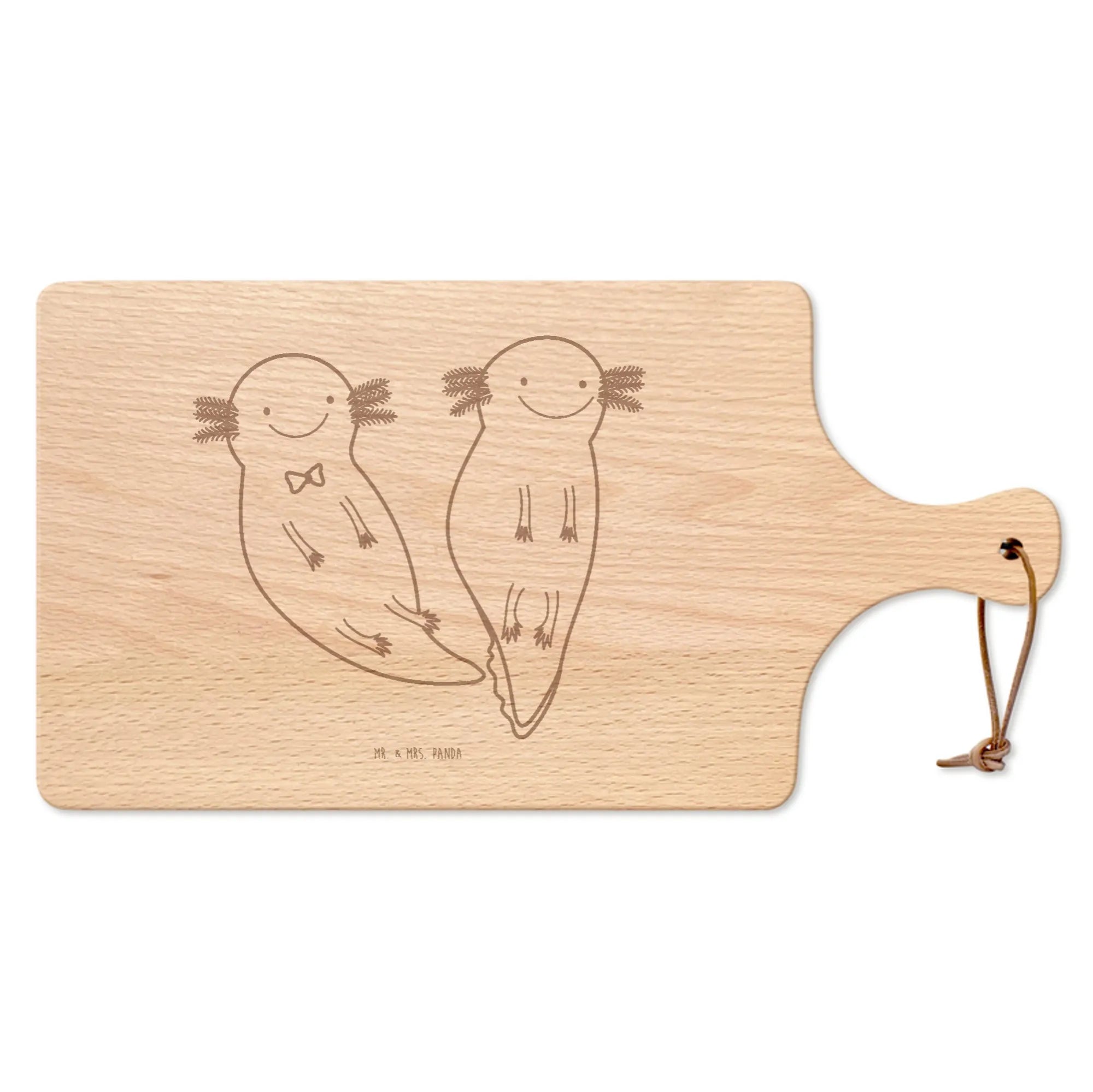 🐼 Solides Buchen-Schneidebrett mit Griff, Lasergravur und süßen Motiven von Mr. & Mrs. Panda.
