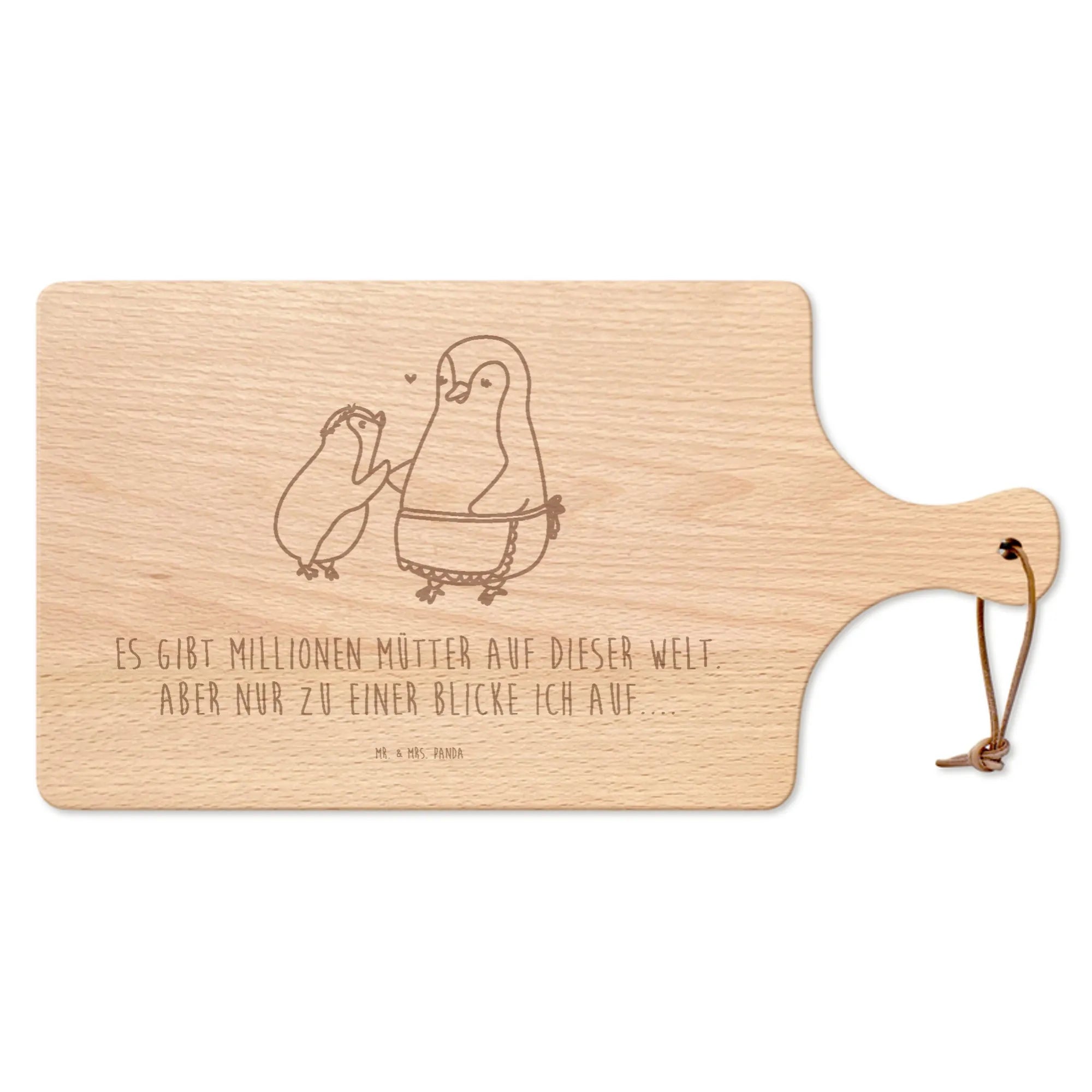 🐼 Solides Buchen-Schneidebrett mit Griff, Lasergravur und süßen Motiven von Mr. & Mrs. Panda.
