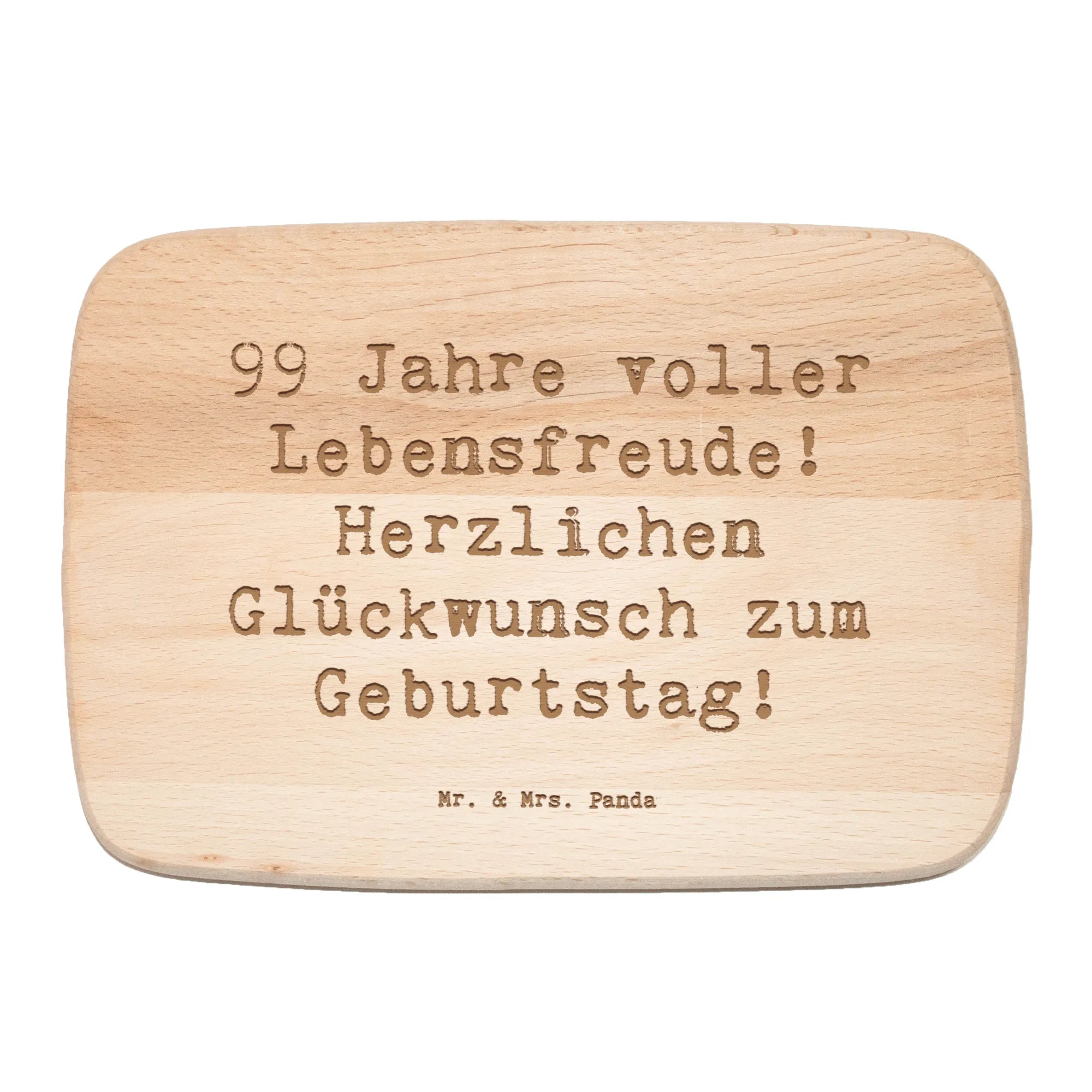 Das perfekte Frühstücksbrett für den 99. Geburtstag! Bei Mr. & Mrs. Panda haben wir mit viel Liebe ein Frühstücksbrettchen aus robustem Birkenholz entworfen, das nicht nur praktischen Nutzen bietet, sondern auch ein wunderbares Geschenk ist. Mit der einfühlsamen Lasergravur "99 Jahre voller Lebensfreude! Herzlichen Glückwunsch zum Geburtstag!" wird es zum echten Hingucker am Frühstückstisch oder bei Feierlichkeiten.