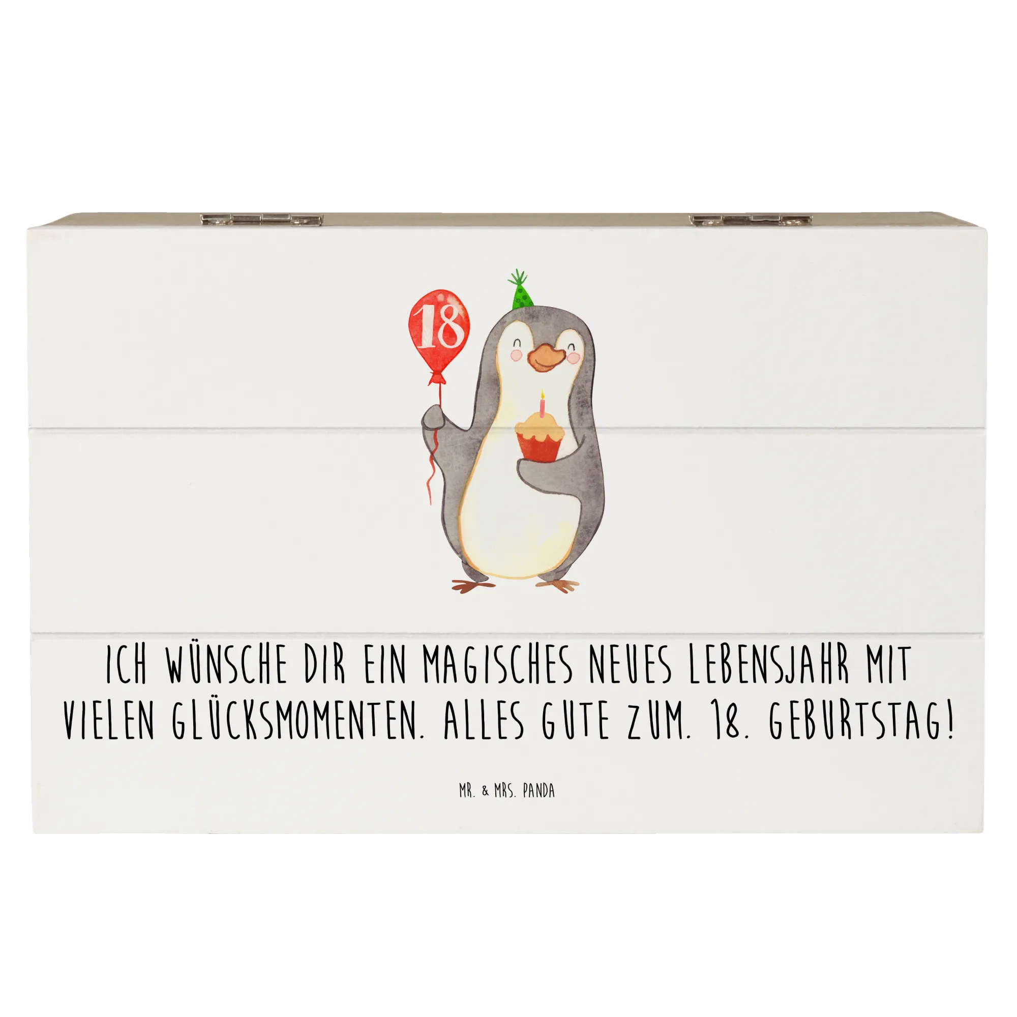 Endlich 18! Dieser ganz besondere Meilenstein im Leben eines jungen Erwachsenen markiert den Beginn eines neuen, aufregenden Kapitels. Unsere Holzkiste von Mr. & Mrs. Panda mit dem entzückenden Motiv Pinguin Luftballon ist genau das richtige Geschenk, um diesen Tag gebührend zu feiern. 🎈