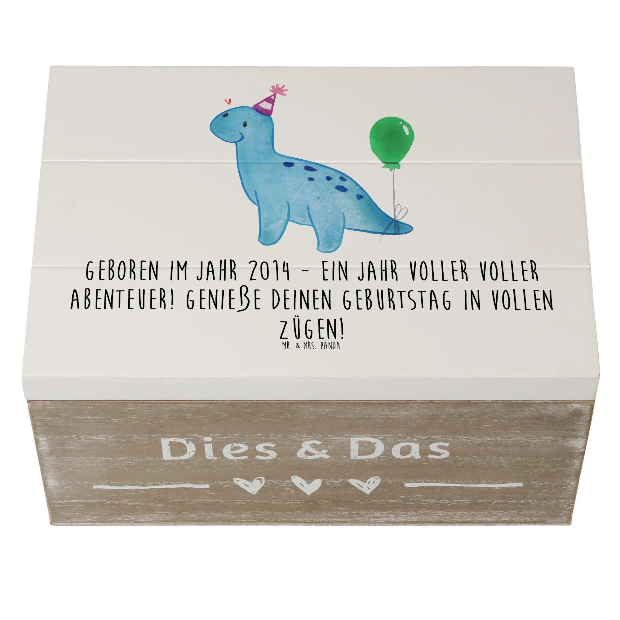 Die Holzkiste mit dem Motto 'Geboren im Jahr 2014 - ein Jahr voller Abenteuer! Genieße deinen Geburtstag in vollen Zügen!' ist das perfekte Geschenk für alle, die 2014 das Licht der Welt erblickt haben. Hergestellt von Mr. & Mrs. Panda, besticht diese wunderschöne Erinnerungsbox durch ihr einzigartiges Design. Sie ist nicht nur eine praktische Aufbewahrungsbox für all die besonderen Schätze, die im Laufe der Jahre gesammelt werden, sondern auch eine liebevolle Erinnerung an die unvergesslichen Momente, die das Leben bereithält.