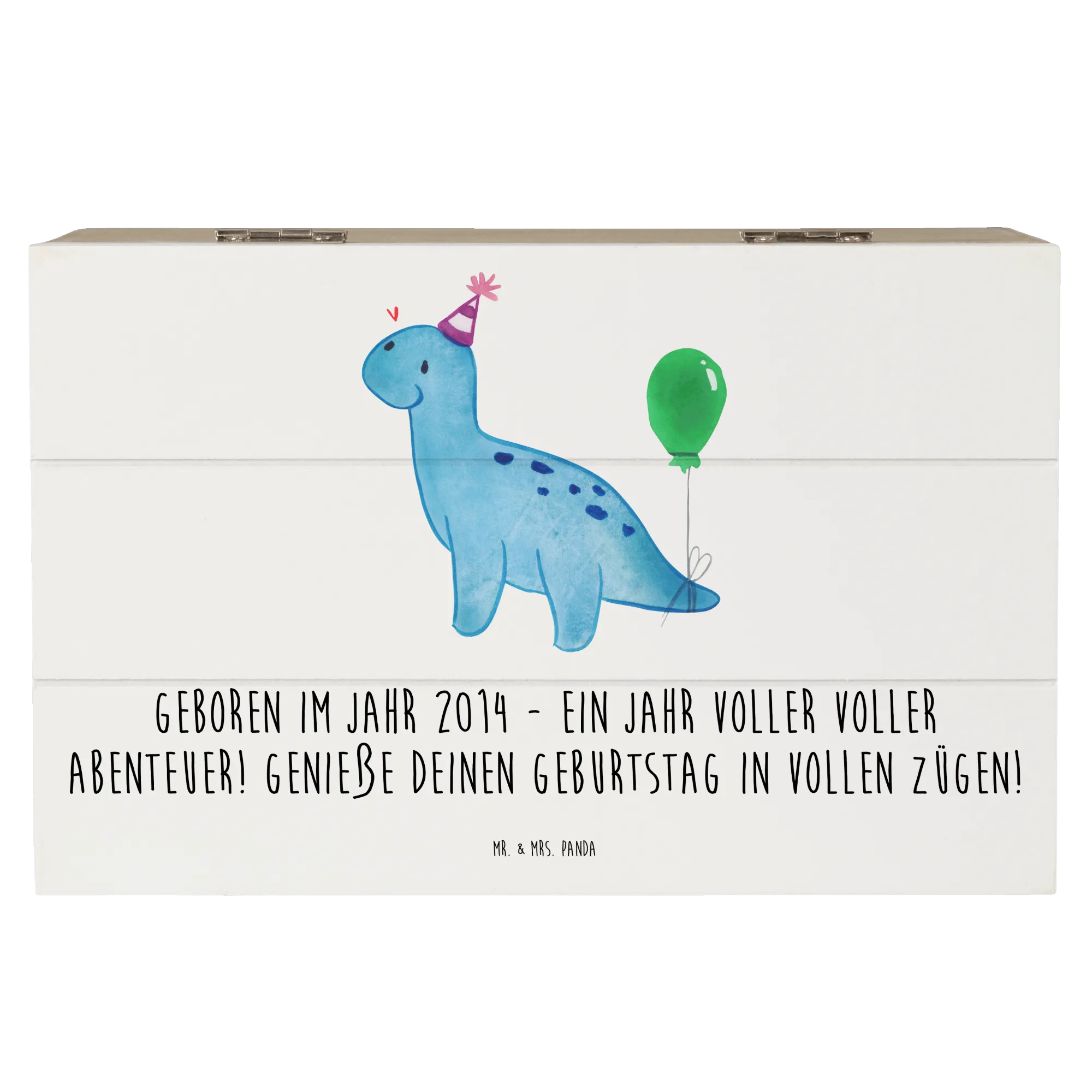 Die wunderschöne Holzkiste von Mr. & Mrs. Panda ist das perfekte Geschenk für alle, die im Jahr 2014 das Licht der Welt erblickt haben. Ob zum Geburtstag, zur Kommunion oder einfach als liebevolles Erinnerungsstück, diese Kiste wird mit Sicherheit Herzen höher schlagen lassen! Bedruckt mit dem liebevollen Slogan 'Geboren im Jahr 2014 - ein Jahr voller Abenteuer! Genieße deinen Geburtstag in vollen Zügen!' erzählt sie nicht nur Geschichten, sondern begleitet auch die neuen Abenteuer und Erinnerungen, die im Laufe der Jahre entstehen.