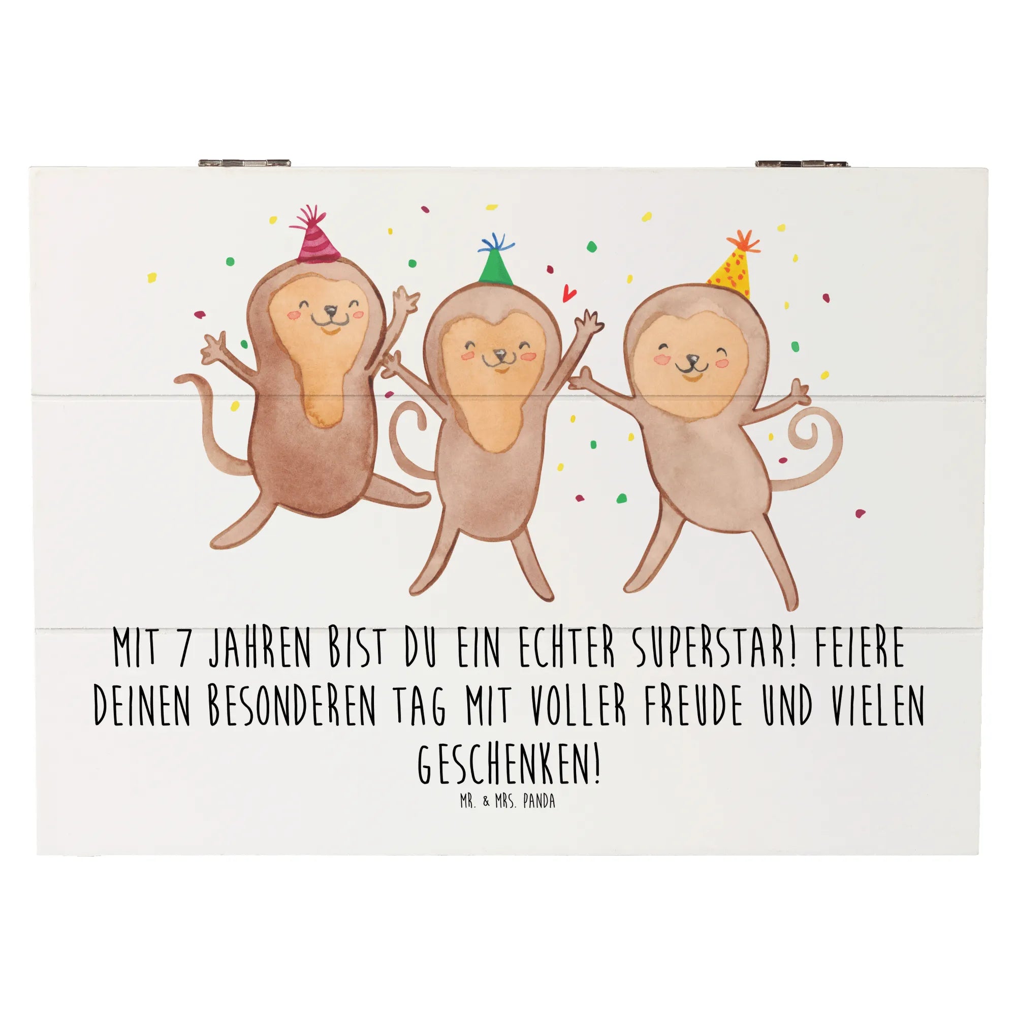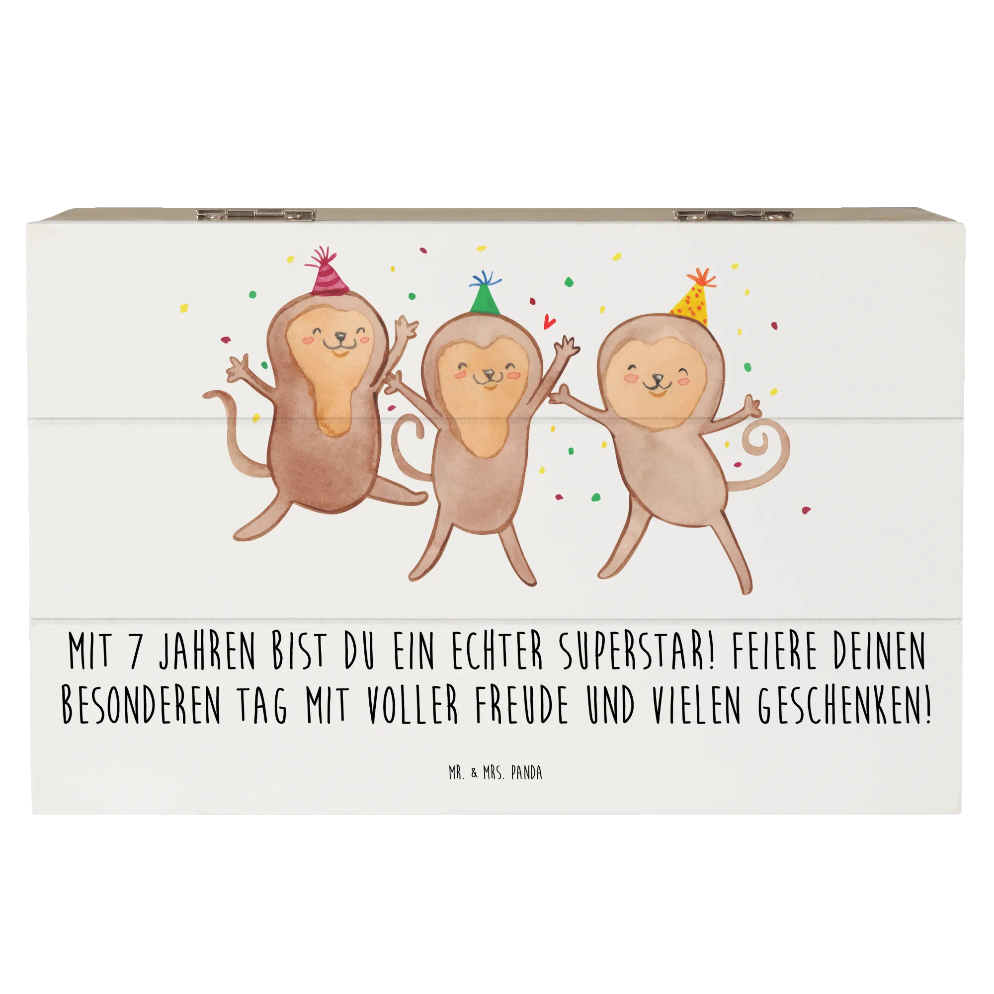 Egal, ob du das Kistchen für den eigenen Nachwuchs oder als tolles Geschenk für den besten Freund oder die beste Freundin kaufst, diese Holzkiste wird sicher für Freude sorgen. Ach ja, ein kleiner Pflegehinweis: Sie lässt sich ganz einfach mit einem feuchten Tuch abwischen, damit sie immer schön bleibt. Schaffe unvergessliche Erinnerungen mit der Erinnerungskiste von Mr. & Mrs. Panda und mache den 7. Geburtstag deines Lieblings zu einem besonderen Fest voller Freude und Überraschungen!