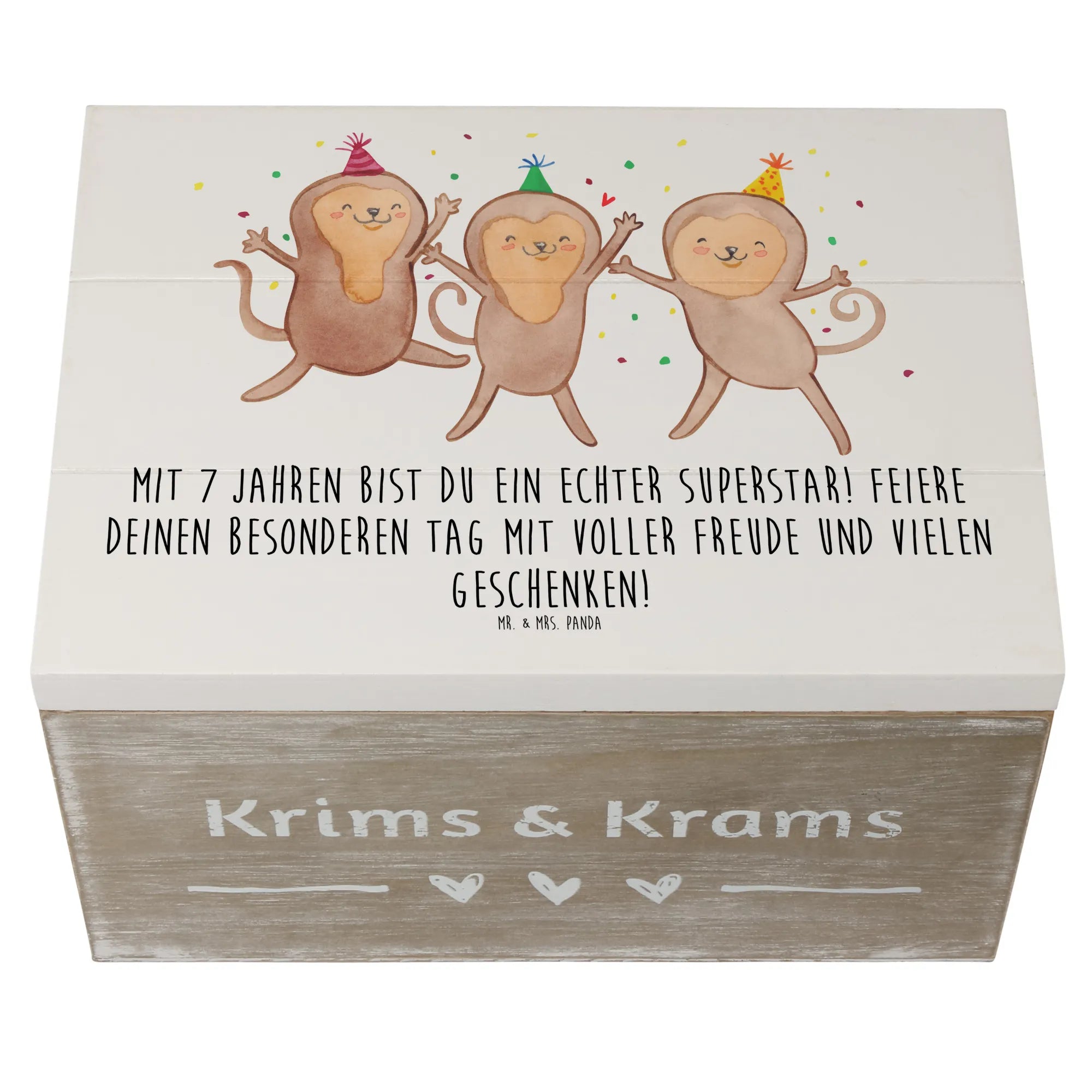 Die wunderschöne Holzkiste von Mr. & Mrs. Panda ist das perfekte Geschenk zum 7. Geburtstag! 🎉 Mit dem fröhlichen Motiv "Mit 7 Jahren bist du ein echter Superstar!" sorgt diese Erinnerungskiste für einen unvergesslichen Tag. Sie ist nicht nur eine bezaubernde Dekokiste, sondern auch eine praktische Schatzkiste, um die besonderen Momente der Kindheit festzuhalten. Ob für Geschenke, Fotos oder kleine Schätze – diese Kiste ist vielseitig einsetzbar.