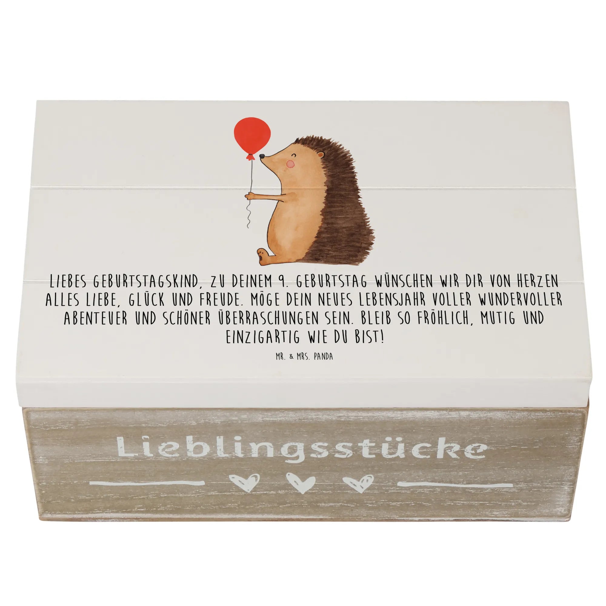 Entdecke die zauberhafte Holzkiste von Mr. & Mrs. Panda, die perfekt zum 9. Geburtstag deines Lieblings ist! 🎉