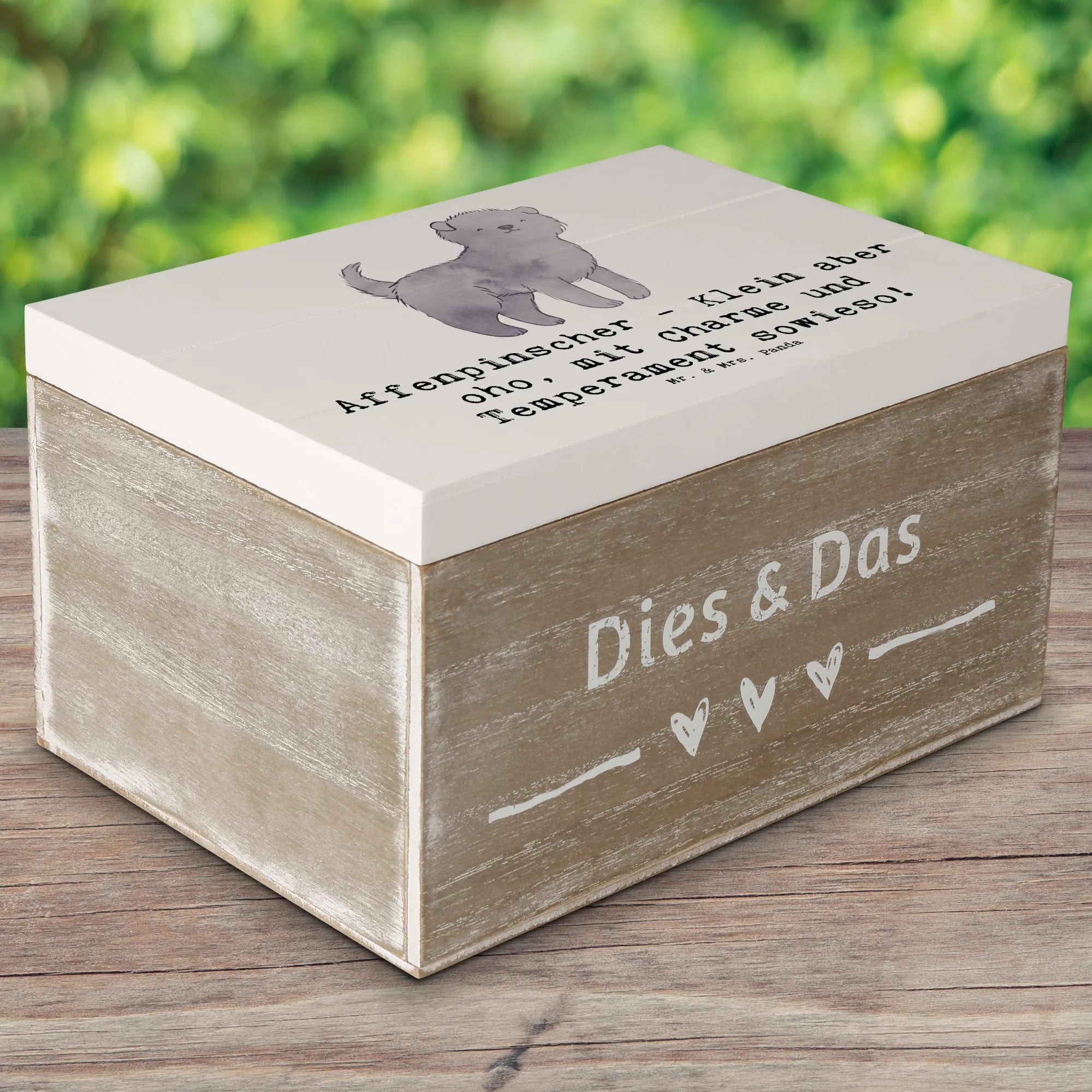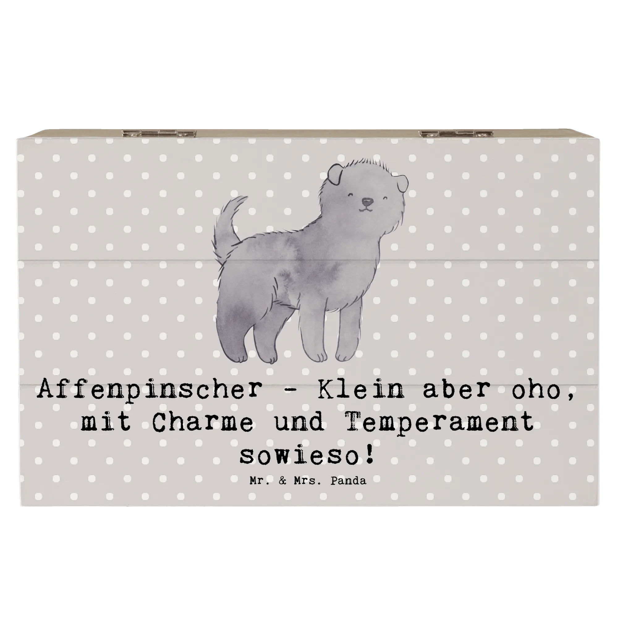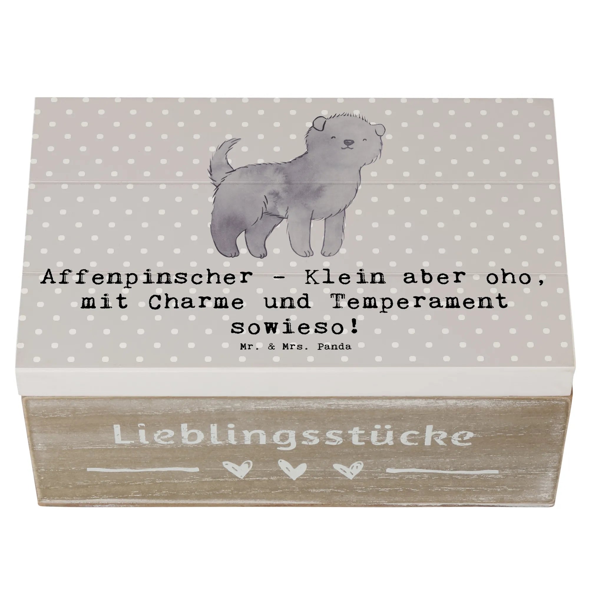 Entdecke die zauberhafte Holzkiste mit dem niedlichen Affenpinscher-Motiv aus der Hunderassen-Kollektion von Mr. & Mrs. Panda! Diese wunderschöne Kiste ist nicht nur ein echter Hingucker, sondern auch die perfekte Möglichkeit, all deine wertvollen Erinnerungen sicher aufzubewahren.