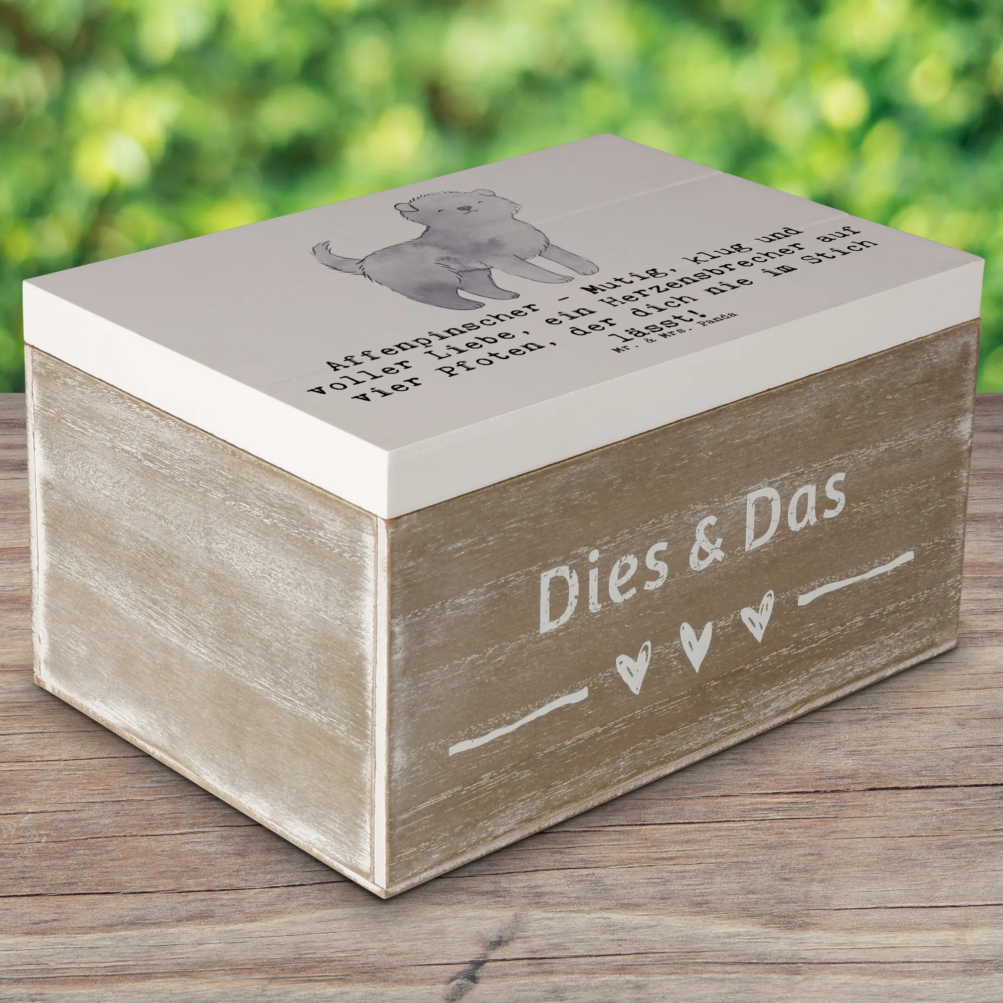 Die wunderschöne Holzkiste mit dem Motiv des Affenpinschers von Mr. & Mrs. Panda ist mehr als nur ein Aufbewahrungsort – sie ist eine Schatztruhe für die schönsten Erinnerungen und besonderen Momente deines Lebens!