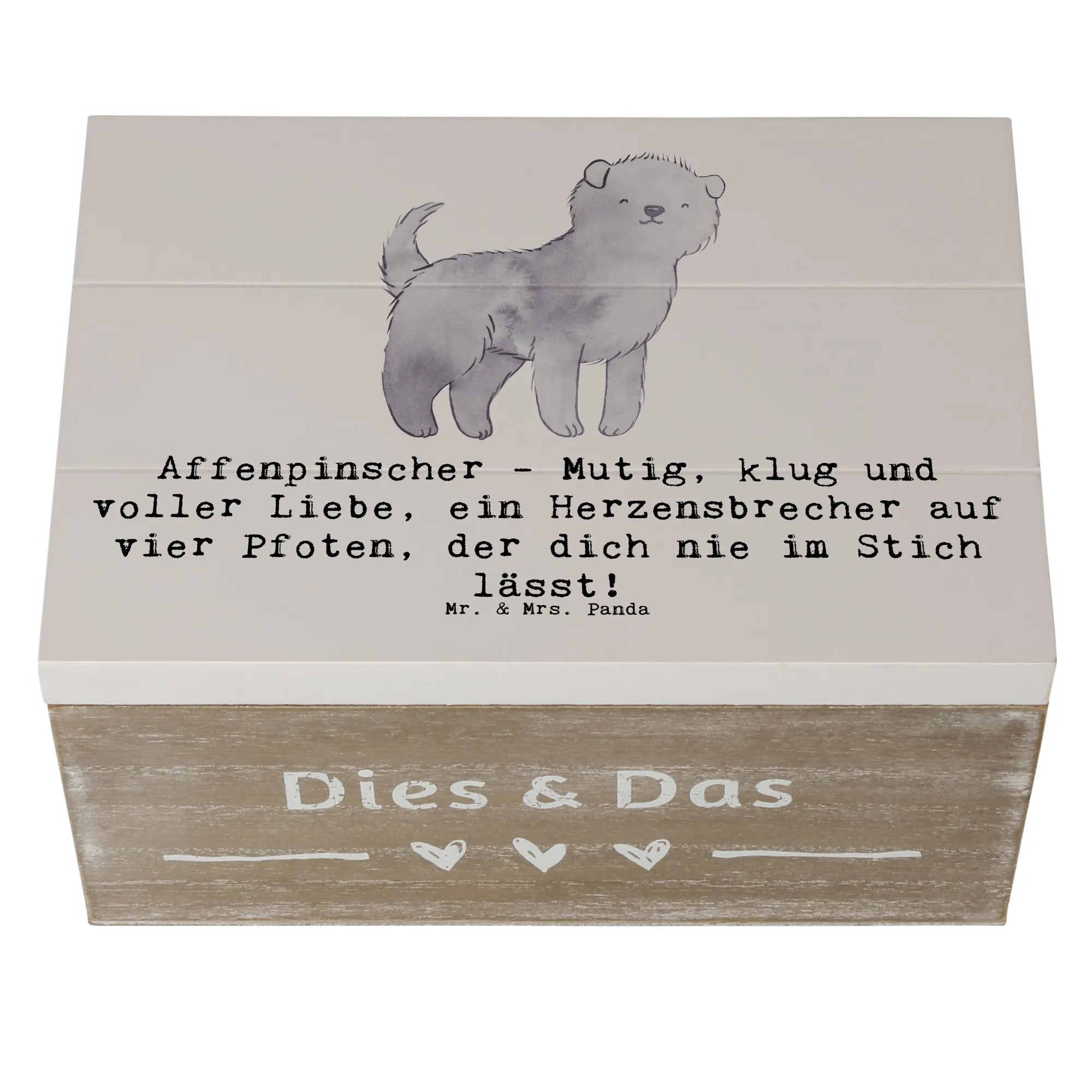 Mit dem süßen und liebevoll gestalteten Motiv „Affenpinscher - Mutig, klug und voller Liebe, ein Herzensbrecher auf vier Pfoten, der dich nie im Stich lässt!“, wird jedes Mal, wenn du die Kiste öffnest, ein Lächeln auf dein Gesicht gezaubert.