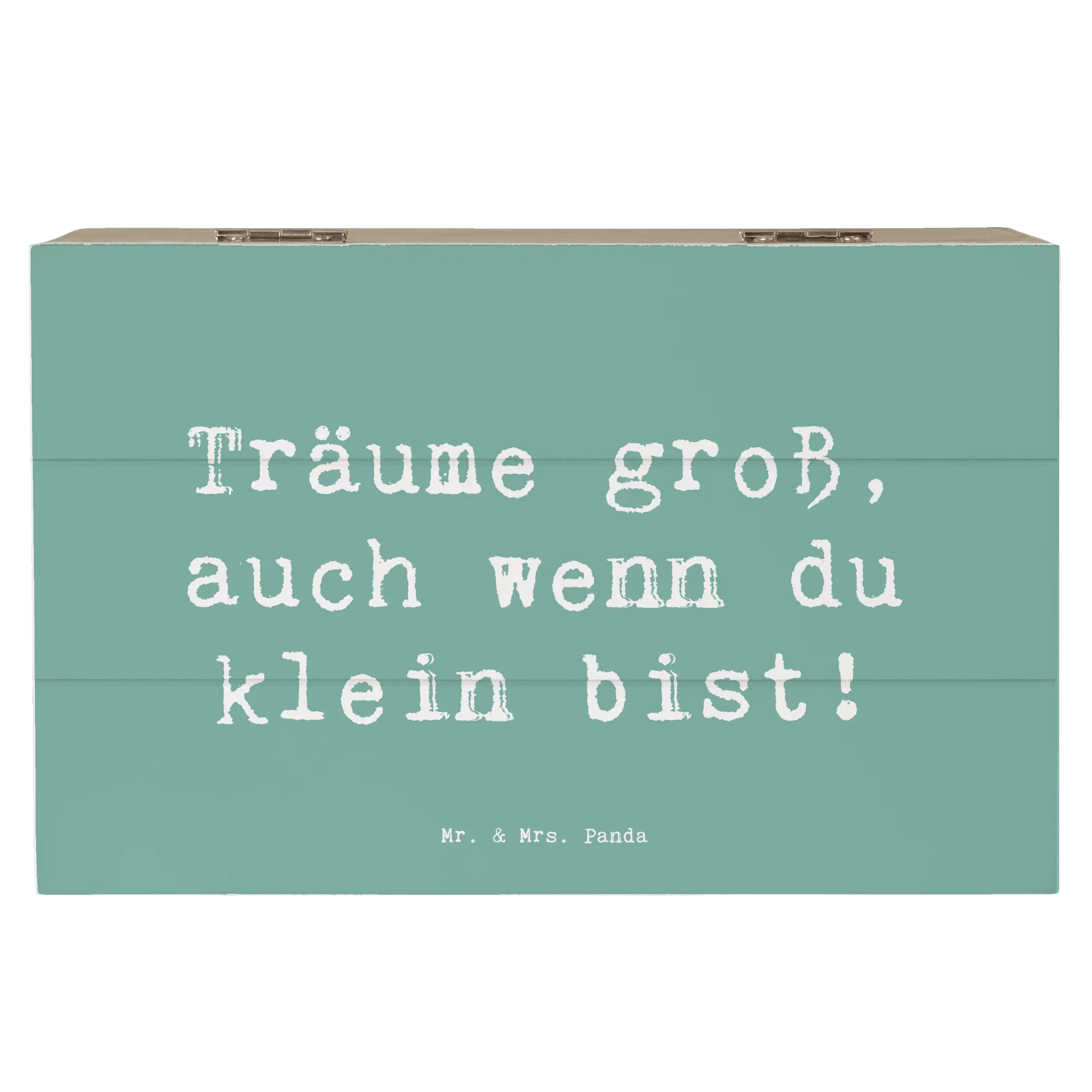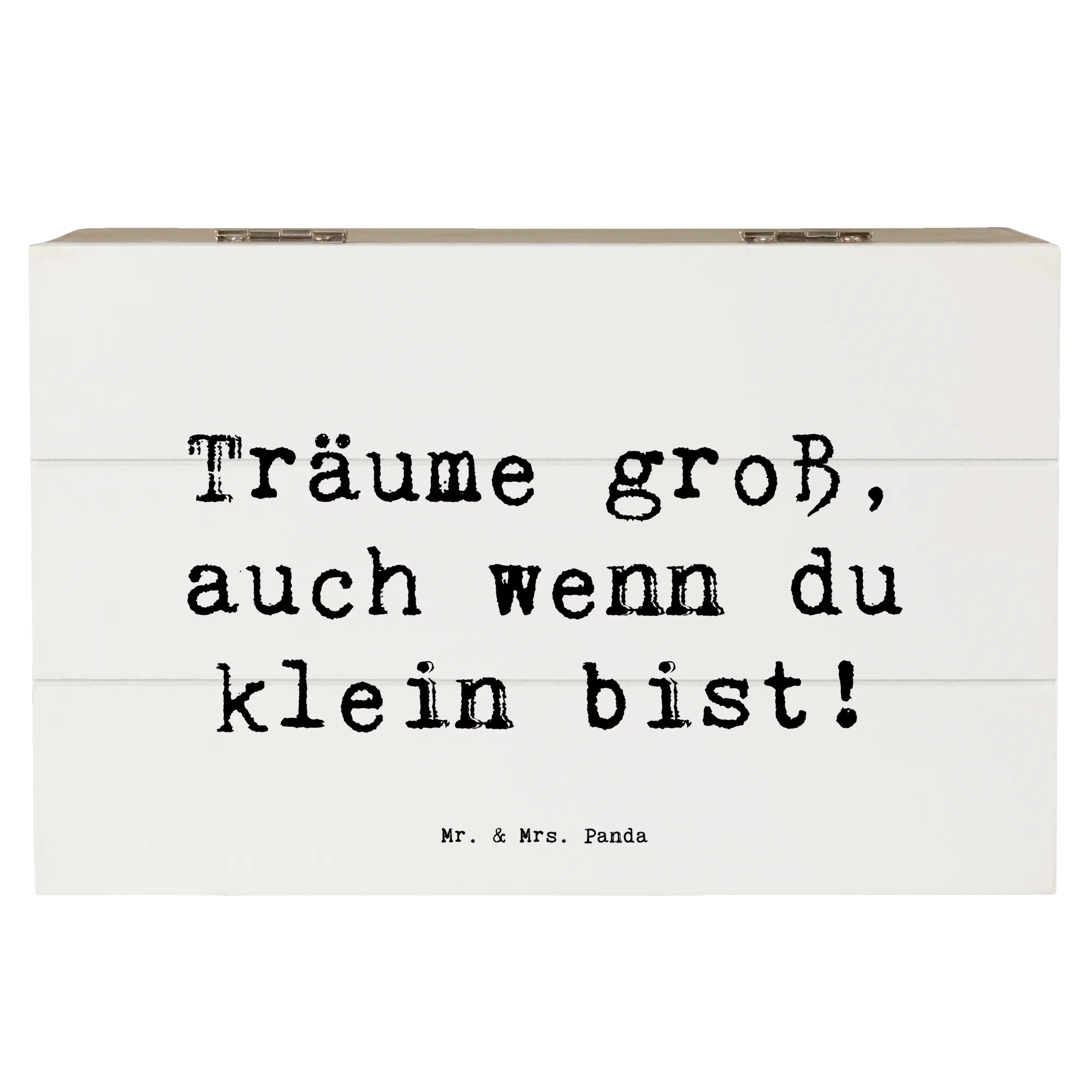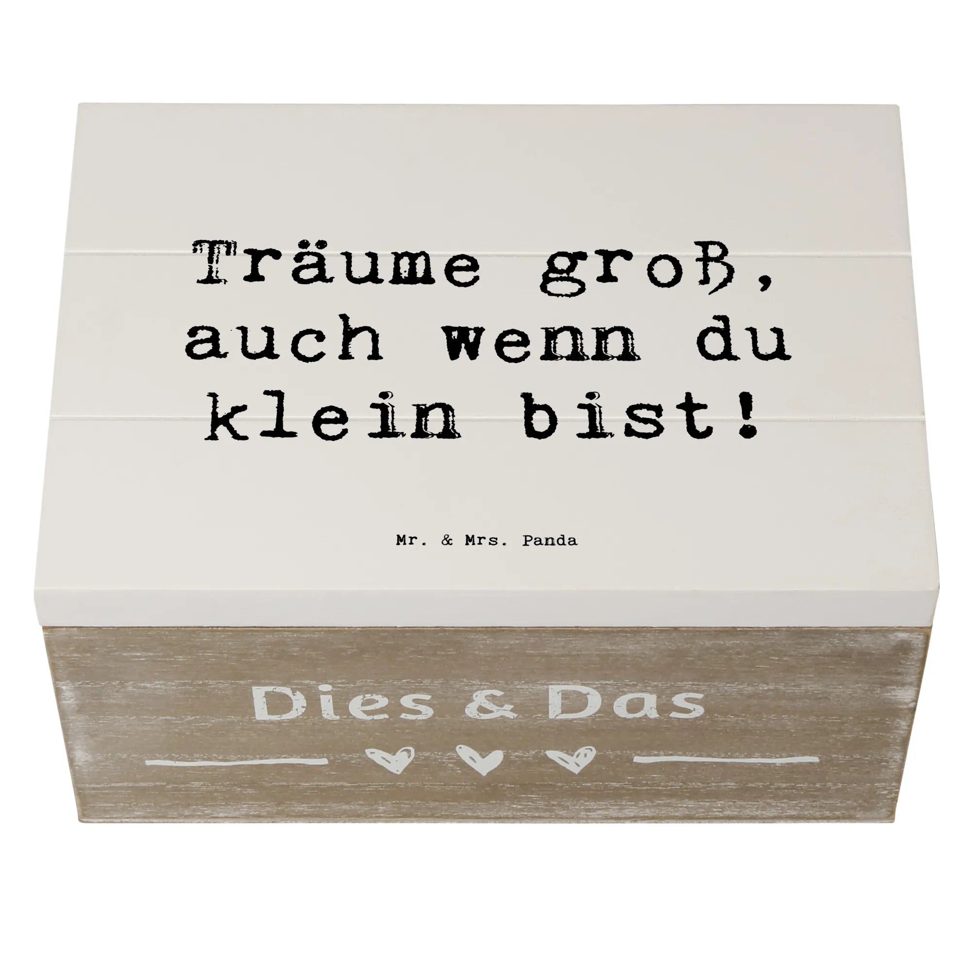 Mit dem inspirierenden Spruch "Träume groß, auch wenn du klein bist!" ist sie perfekt geeignet, um Mut und Zuversicht zu schenken. Die robuste Holzfaser sorgt dafür, dass die Kiste besonders stabil ist und ein Leben lang hält.