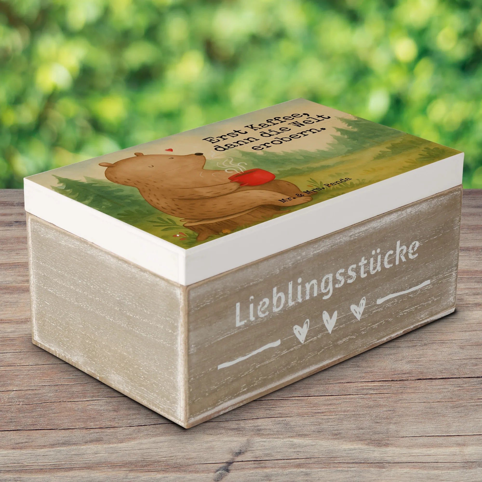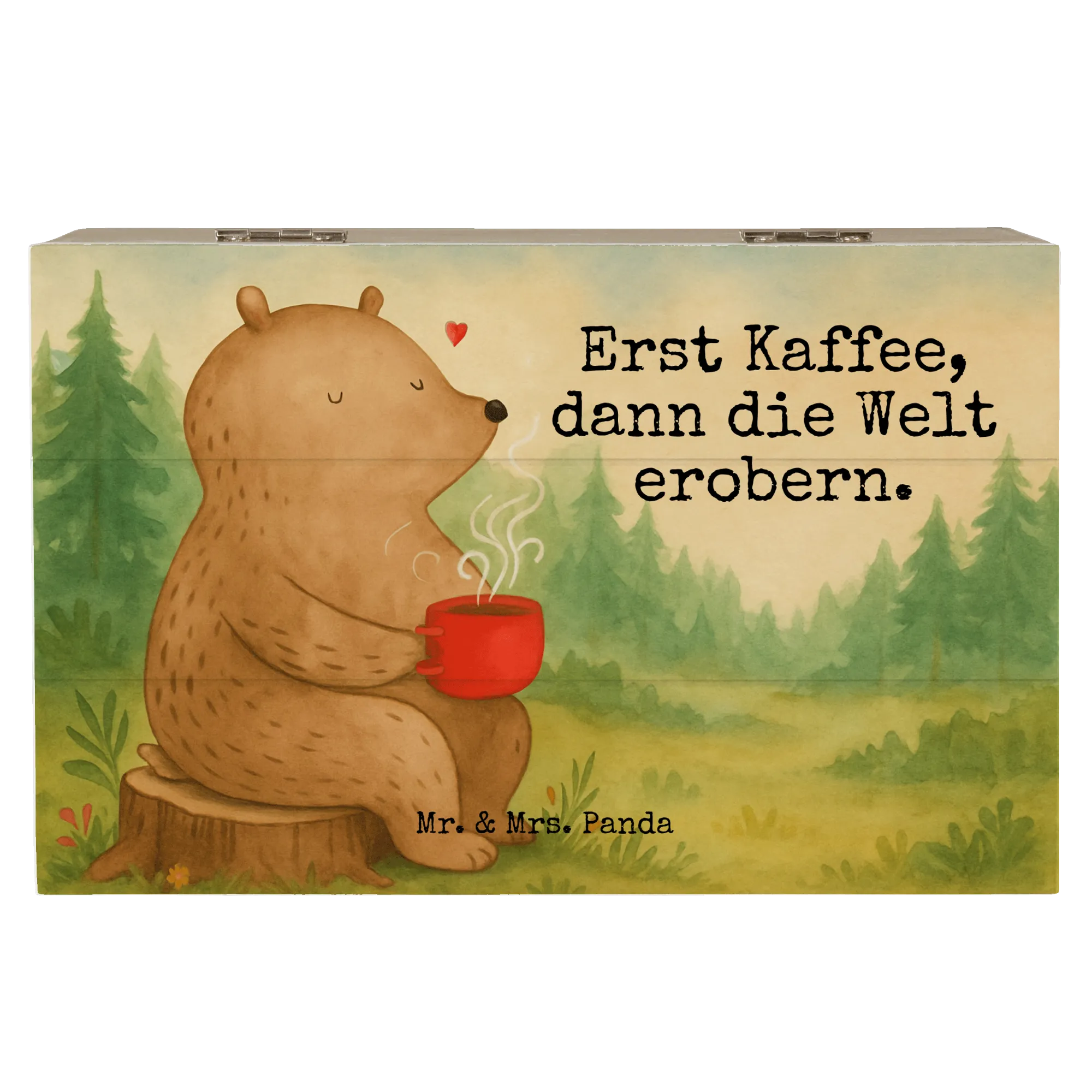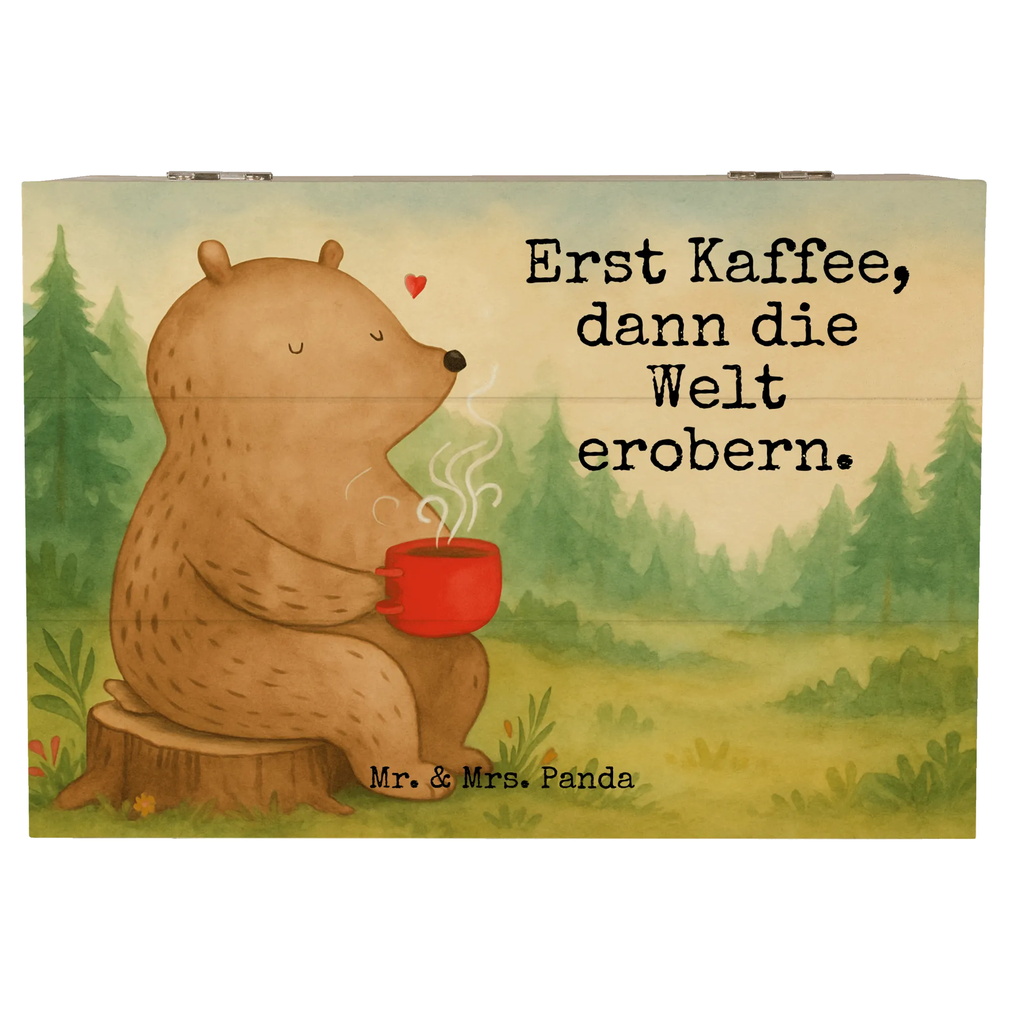 Holzkiste Bär Kaffee Design Erinnerungskiste, Aufbewahrungsbox, Dekokiste, Truhe, XXL, Erinnerungsbox, Geschenkbox, Schatzkiste, Holzkiste, Schatulle, Geschenkdose, Kiste, Bär, Teddy, Teddybär, guten Morgen, Welt erobern, Morgenroutine, Welt retten, Motivation, Bären, Coffee, Kaffee
