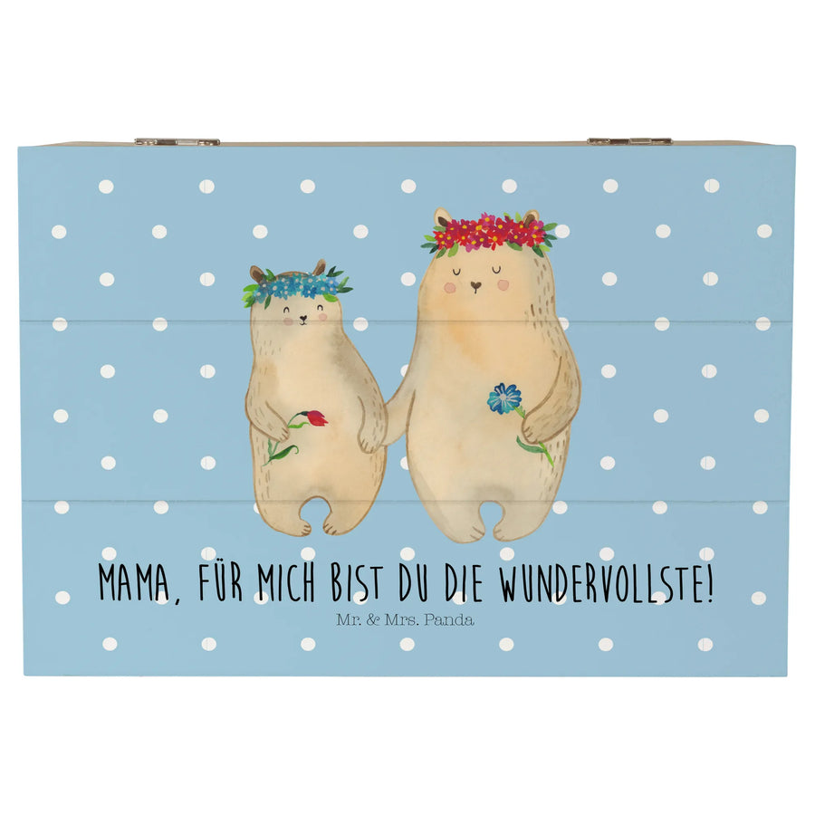 Holzkiste Bären mit Blumenkranz - 22 x 15 cm - mit Spruch - Blau Pastell