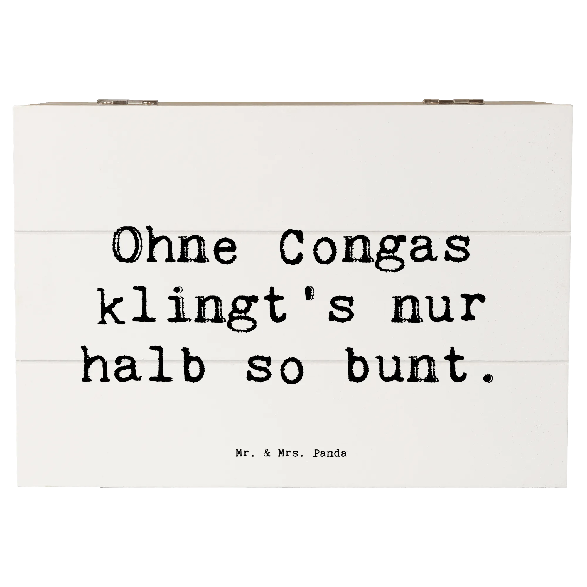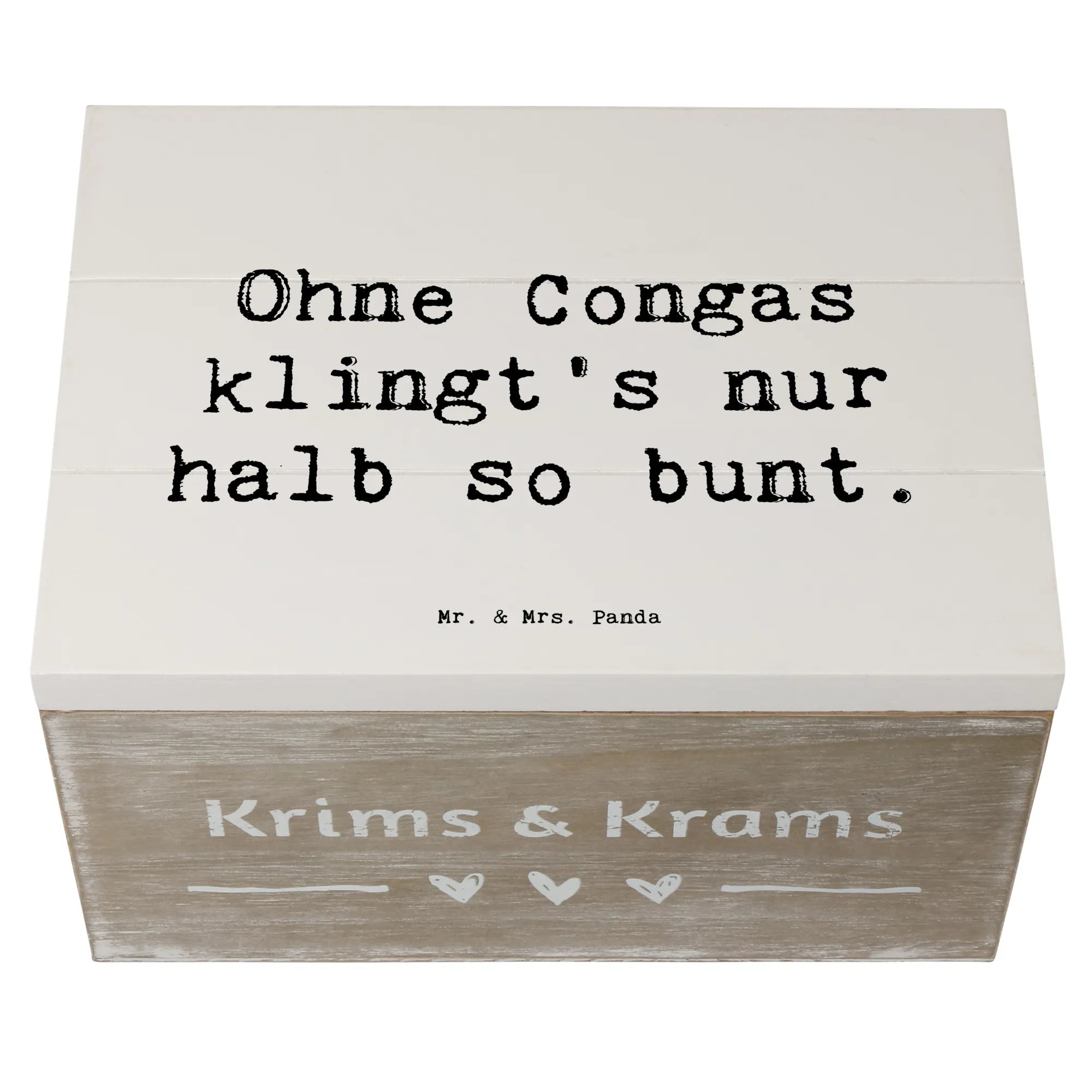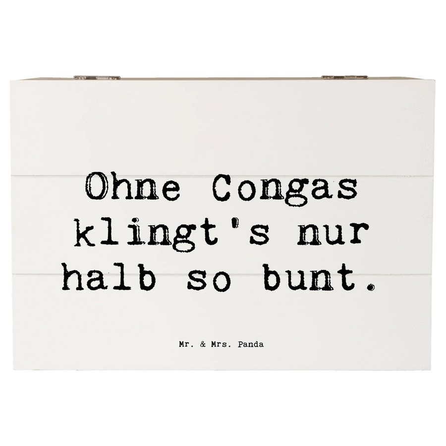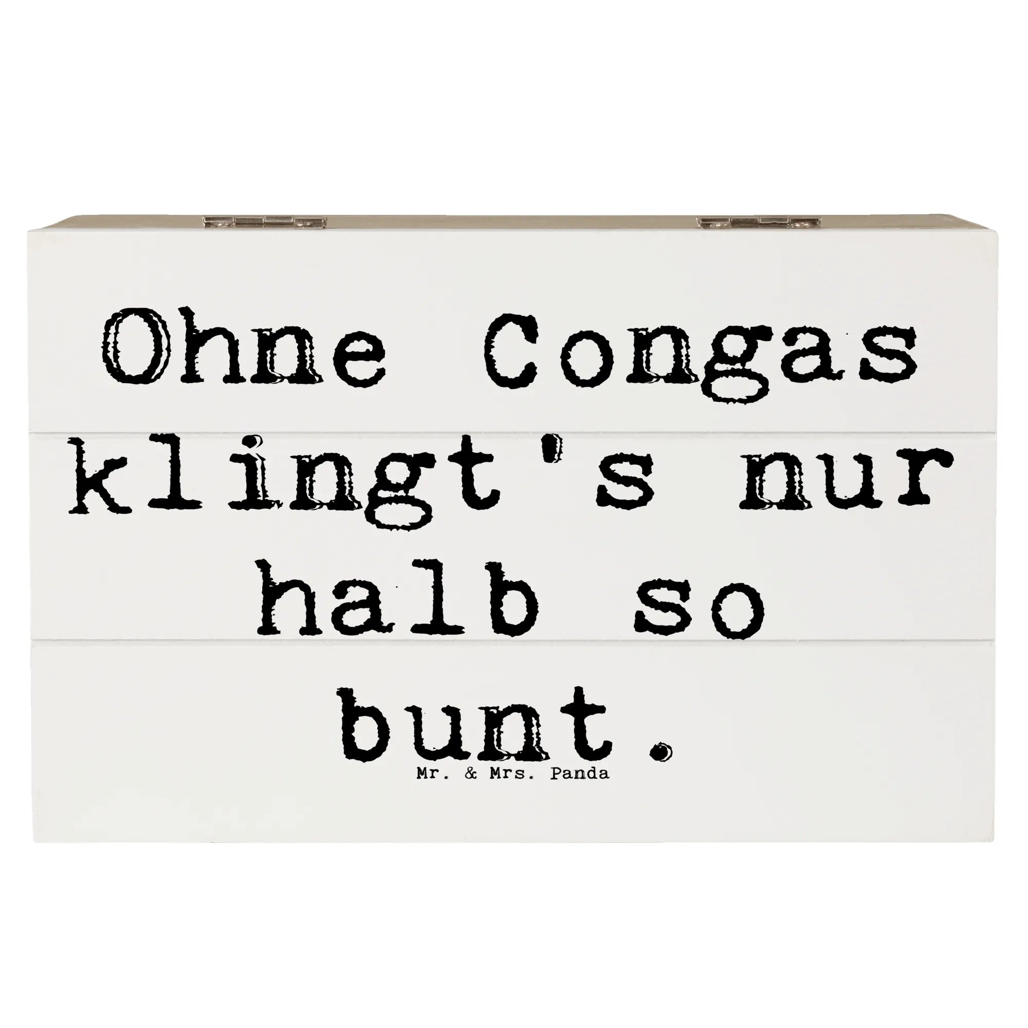 Entdecke die wunderbare Holzkiste von Mr. & Mrs. Panda, perfekt für Musikliebhaber und kreative Seelen! Diese einzigartige Erinnerungskiste, bedruckt mit dem fröhlichen Motiv "Congas" und dem Spruch "Ohne Congas klingt's nur halb so bunt", bringt Freude in jedes Zuhause.