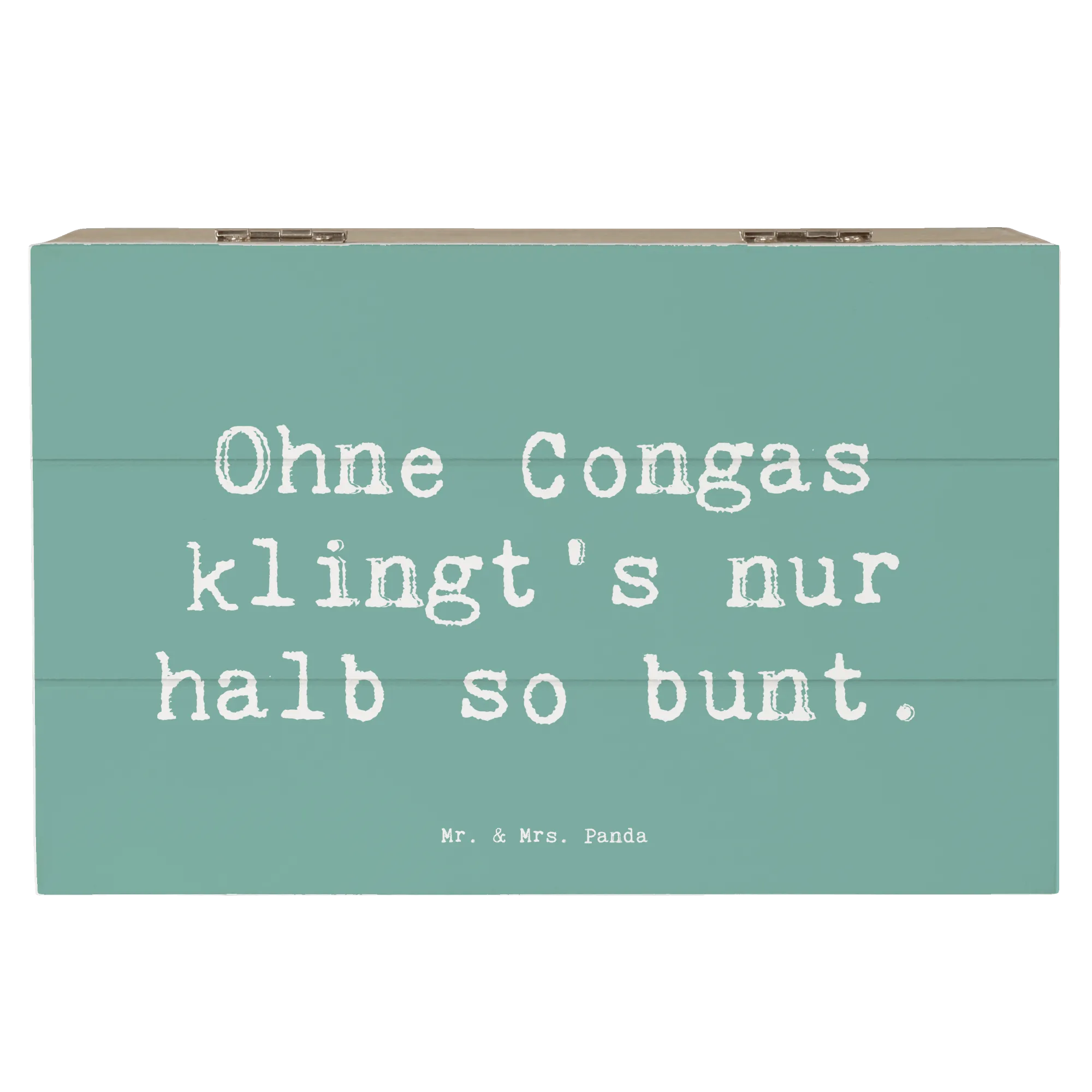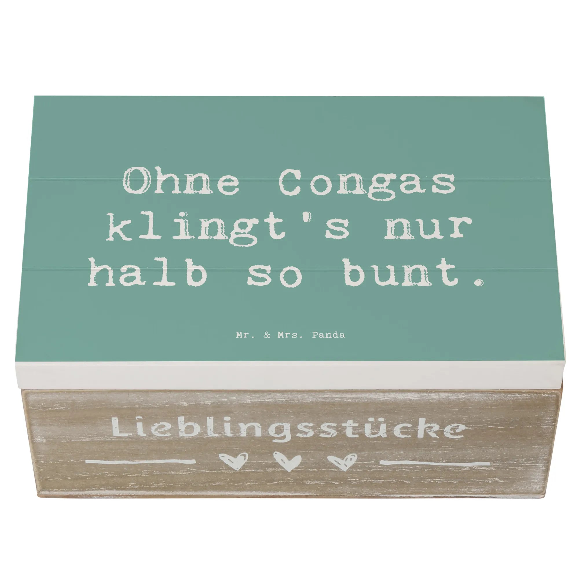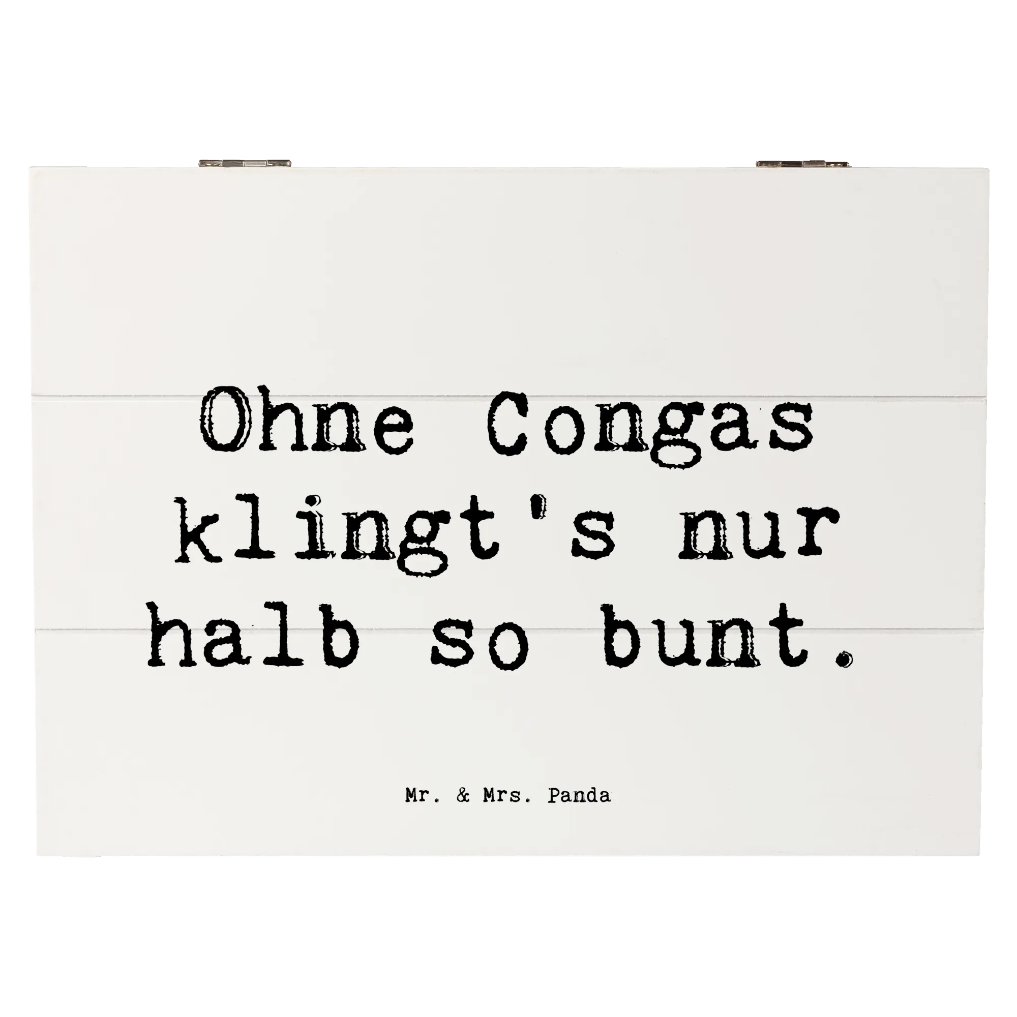 Entdecke die wunderbare Holzkiste von Mr. & Mrs. Panda, perfekt für Musikliebhaber und kreative Seelen! Diese einzigartige Erinnerungskiste, bedruckt mit dem fröhlichen Motiv "Congas" und dem Spruch "Ohne Congas klingt's nur halb so bunt", bringt Freude in jedes Zuhause.