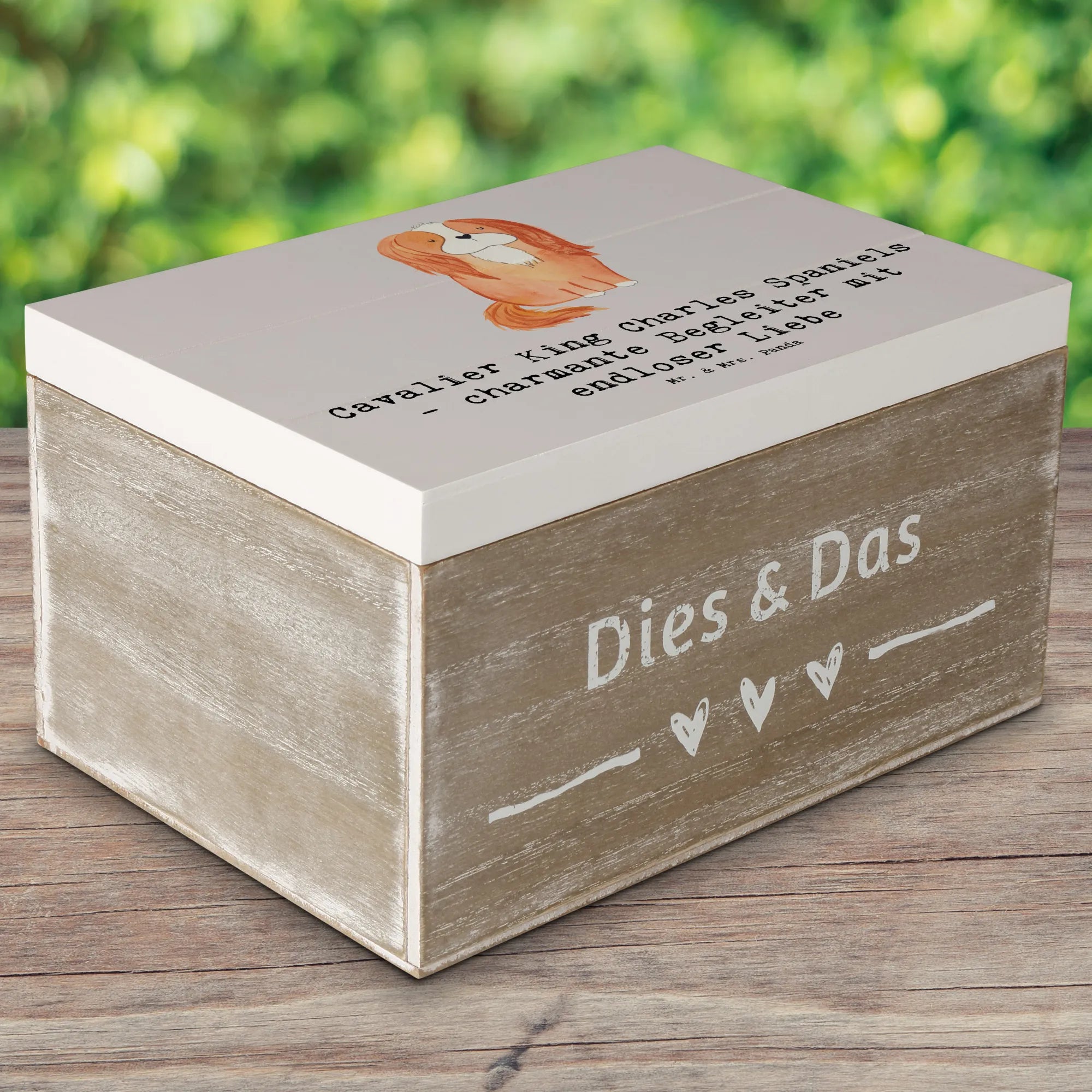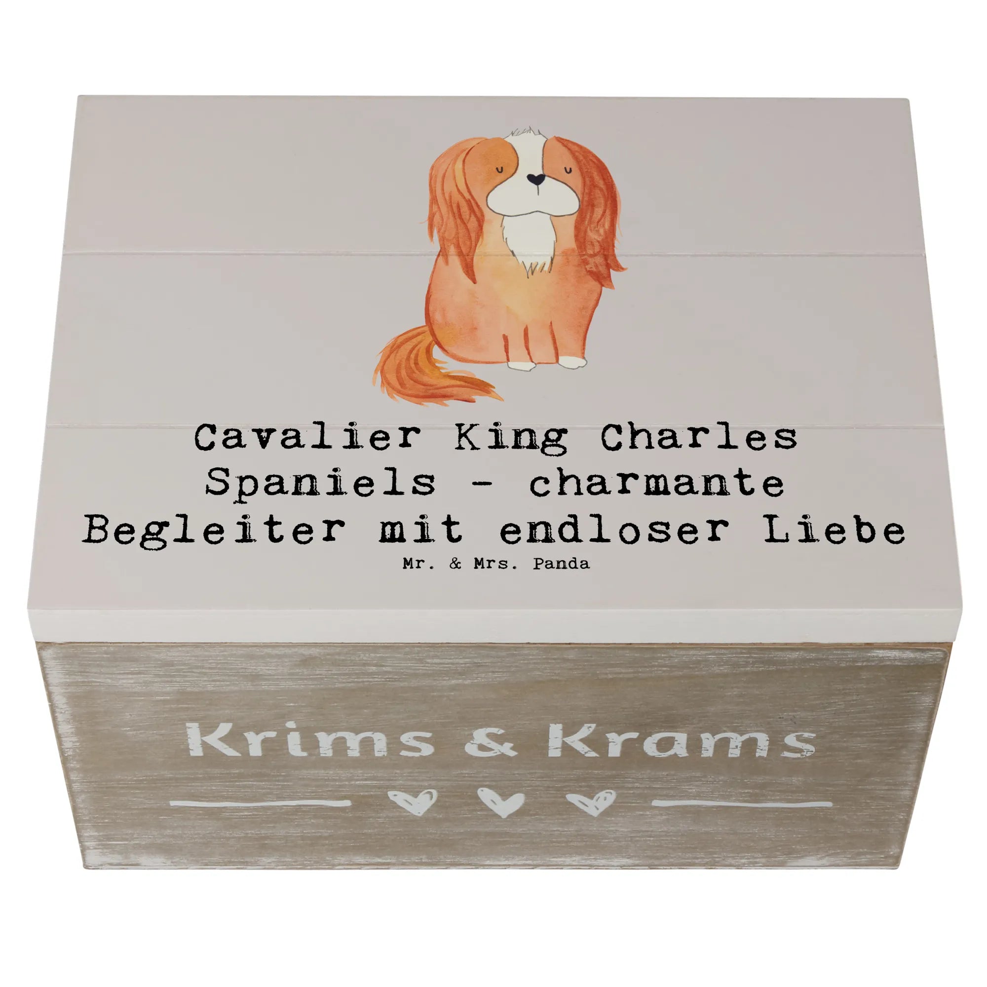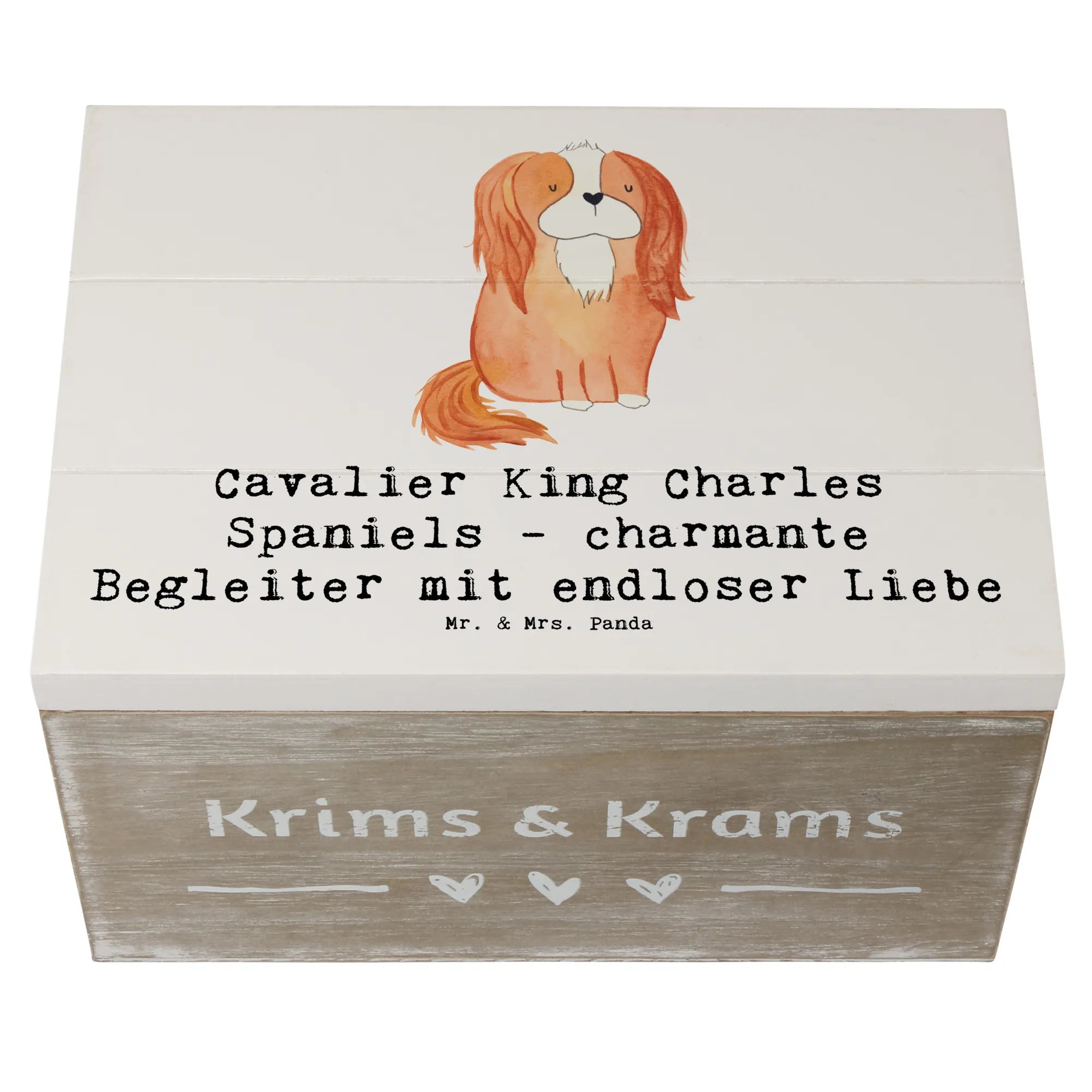 Die wunderschöne Holzkiste von Mr. & Mrs. Panda mit dem Motiv "Cavalier King Charles Spaniel - charmante Begleiter mit endloser Liebe" ist das perfekte Geschenk für Hundefans und Tierliebhaber.