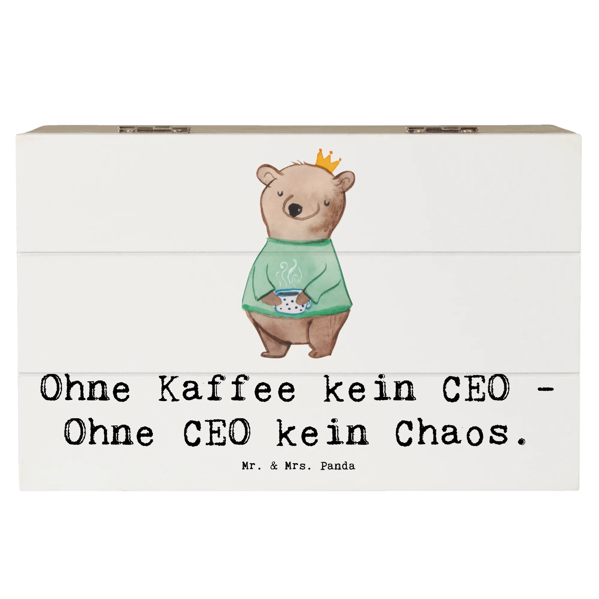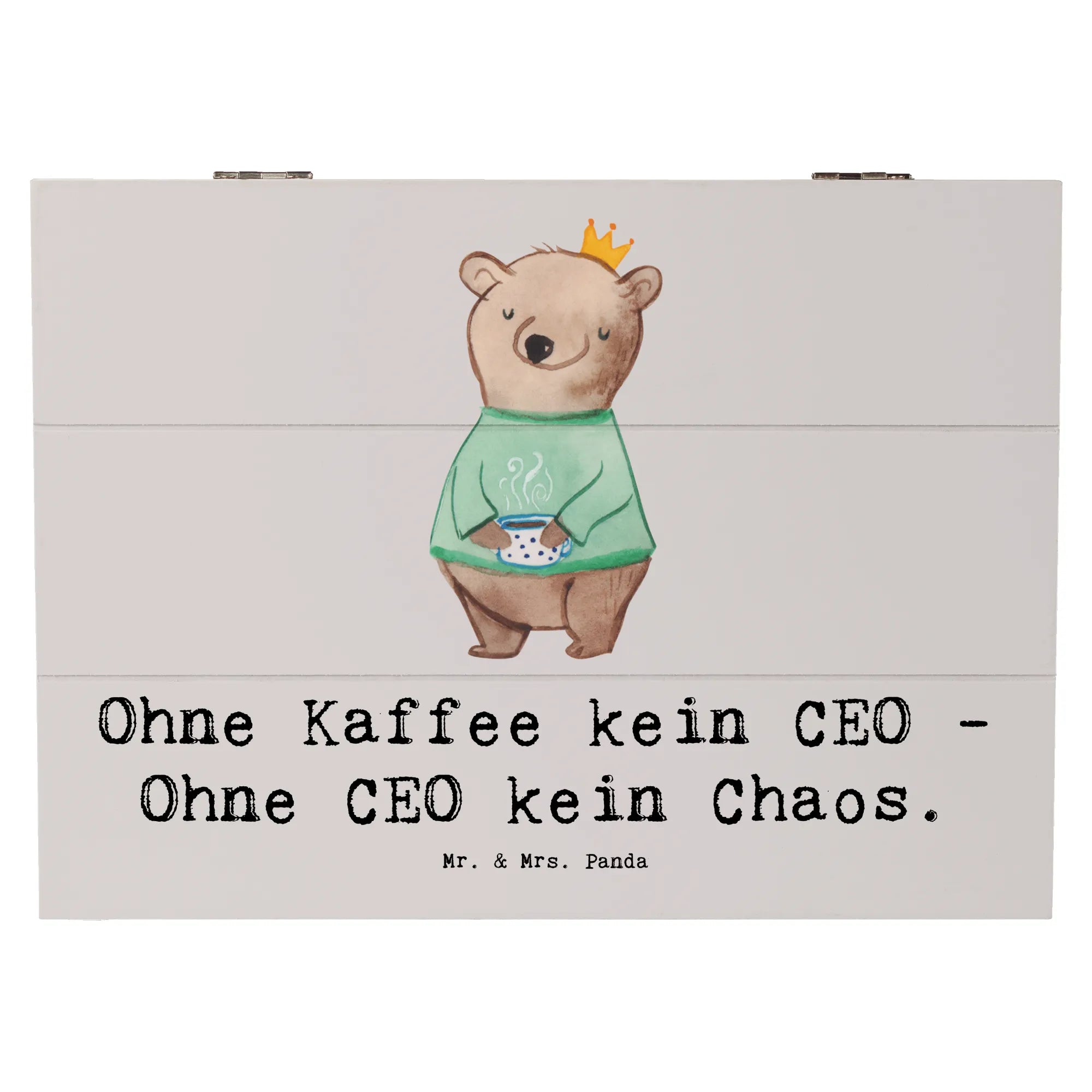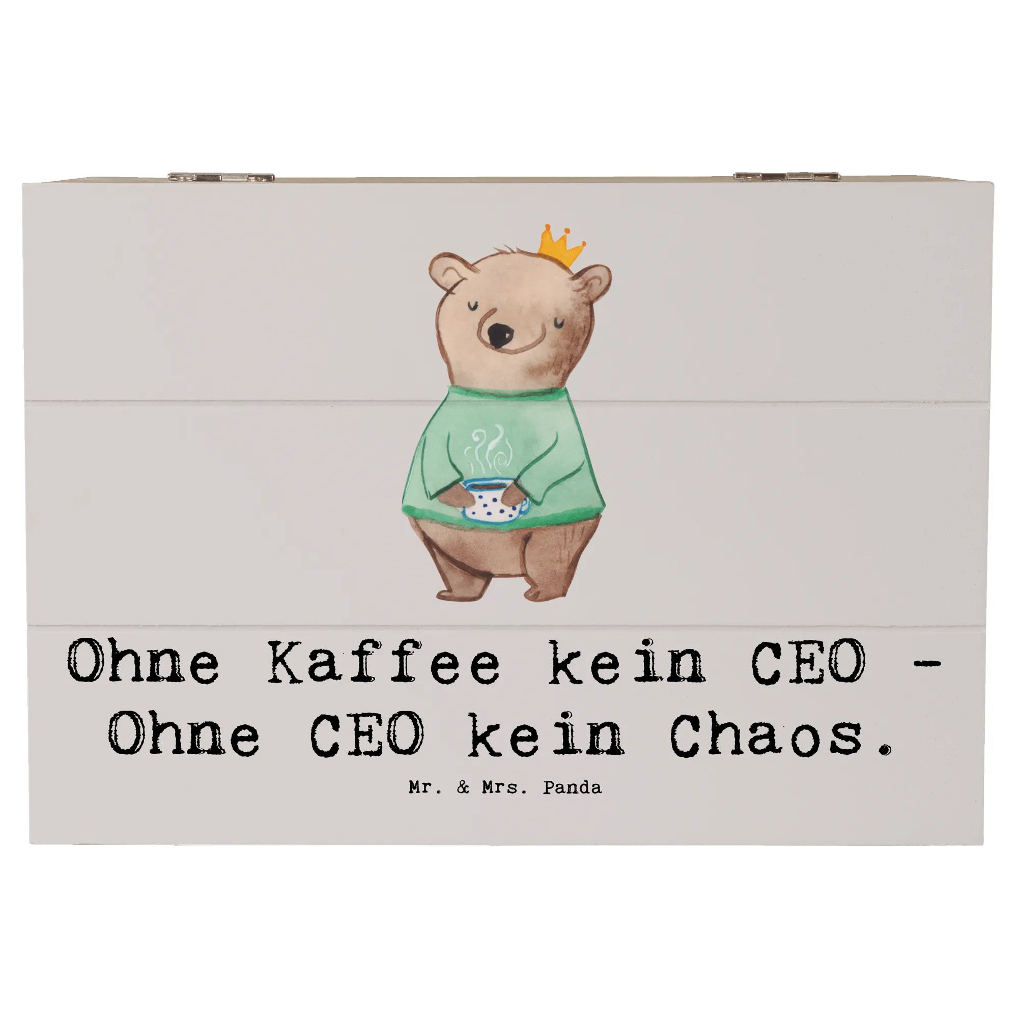 Entdecke die wunderschöne Holzkiste CEO von Mr. & Mrs. Panda – das perfekte Geschenk für alle Führungspersönlichkeiten und Kaffeeliebhaber! Mit dem humorvollen Slogan "Ohne Kaffee kein CEO - Ohne CEO kein Chaos" ist diese Schatzkiste nicht nur praktisch, sondern auch ein echter Hingucker auf jedem Schreibtisch.