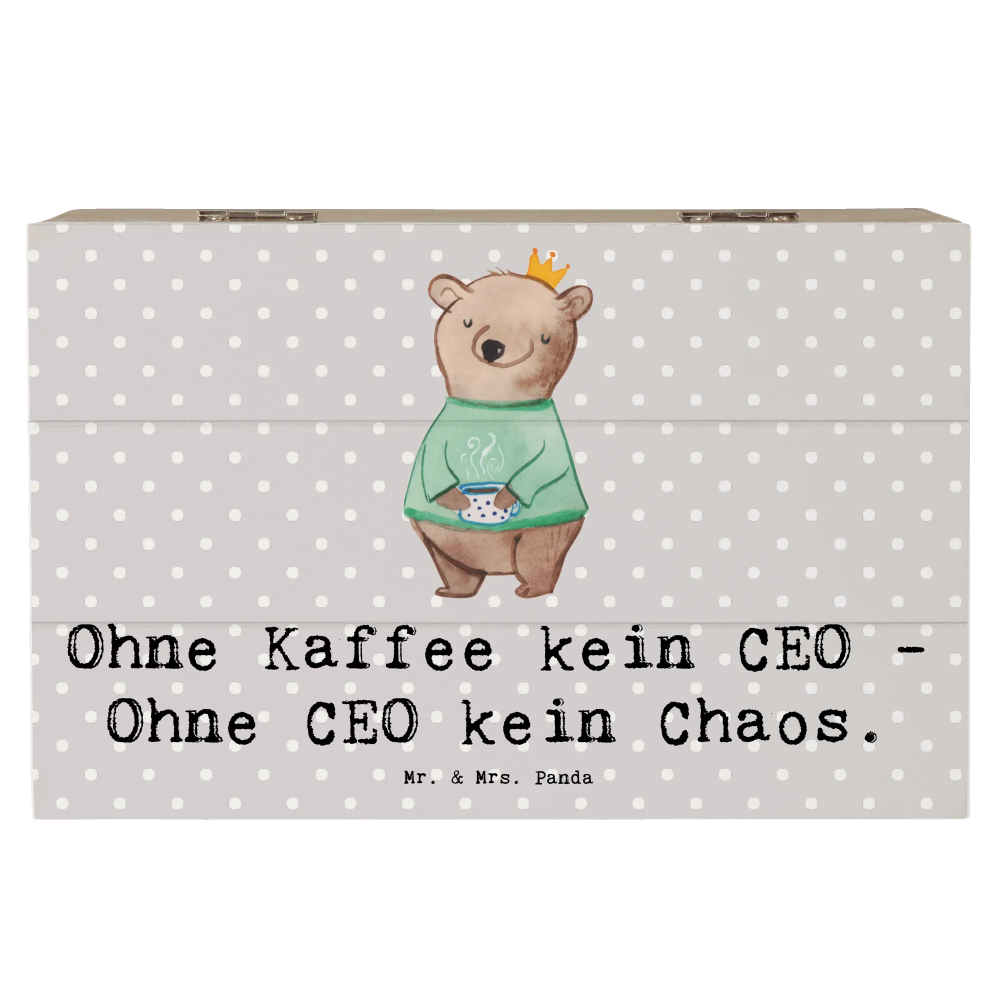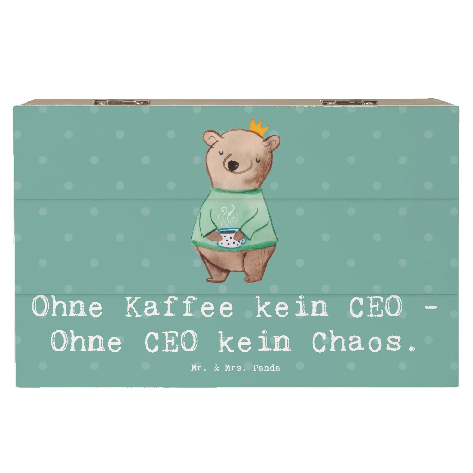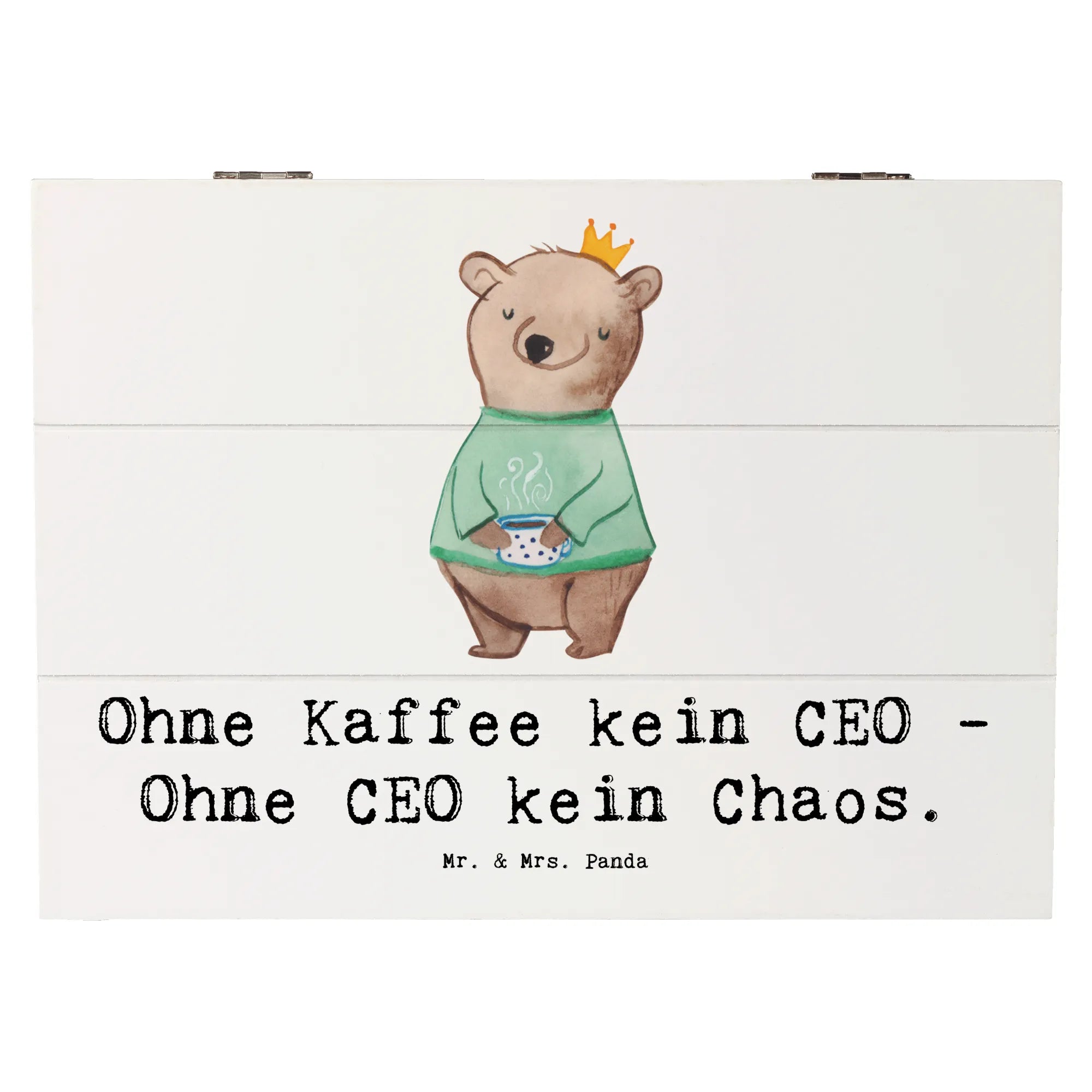 Entdecke die wunderschöne Holzkiste CEO von Mr. & Mrs. Panda – das perfekte Geschenk für alle Führungspersönlichkeiten und Kaffeeliebhaber! Mit dem humorvollen Slogan "Ohne Kaffee kein CEO - Ohne CEO kein Chaos" ist diese Schatzkiste nicht nur praktisch, sondern auch ein echter Hingucker auf jedem Schreibtisch.