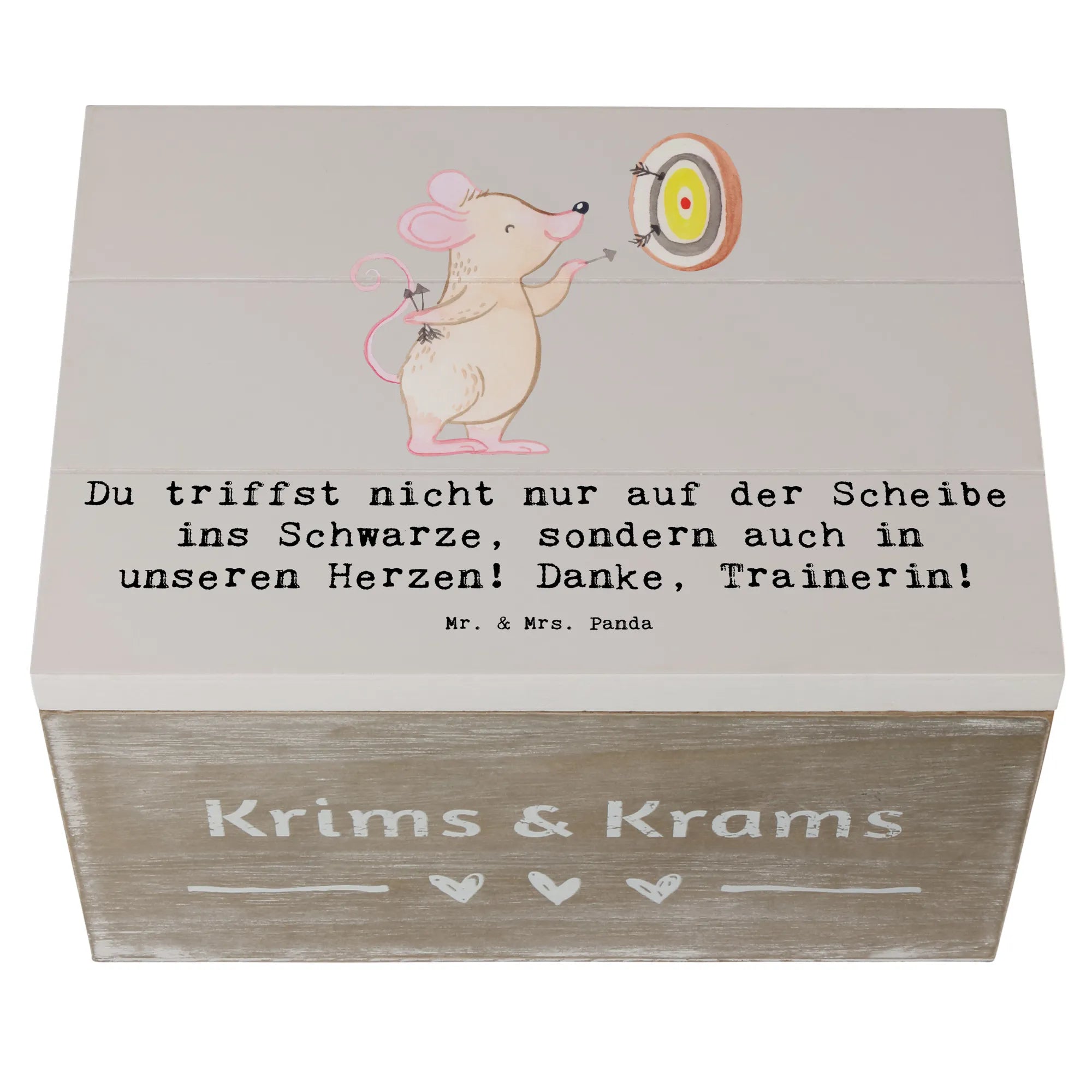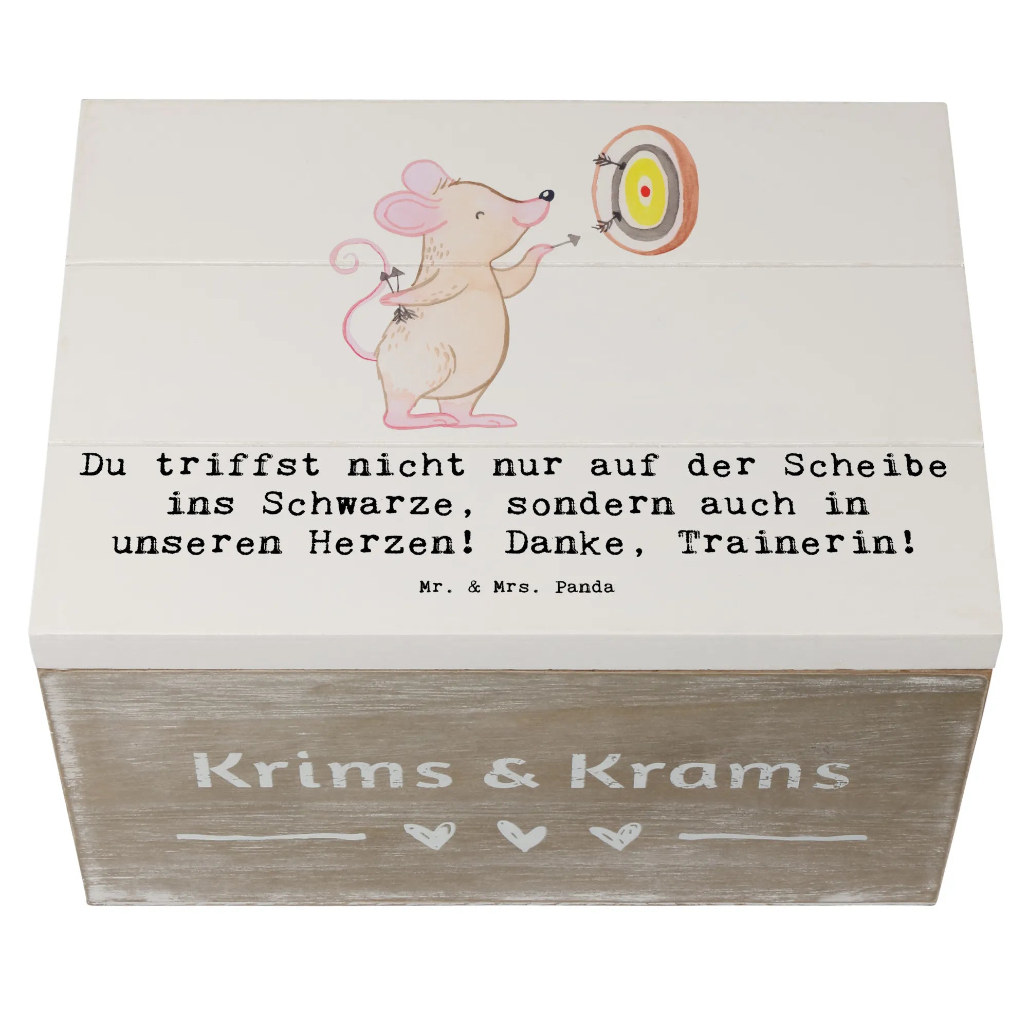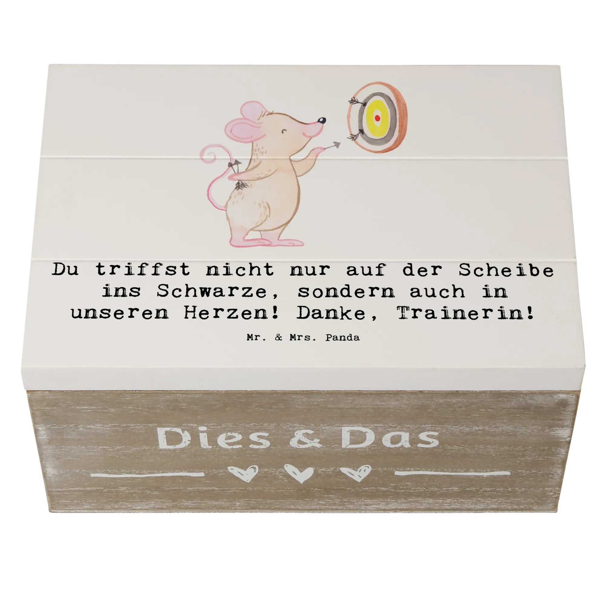 Entdecke die wunderschöne Holzkiste "Darts Trainerin" von Mr. & Mrs. Panda – ein perfektes Geschenk für deine Trainerin! Diese besondere Kiste ist nicht nur ein stabiler Aufbewahrungsort für kostbare Erinnerungen, sondern auch ein liebevolles Dankeschön für die harte Arbeit und Hingabe deiner Trainerin.