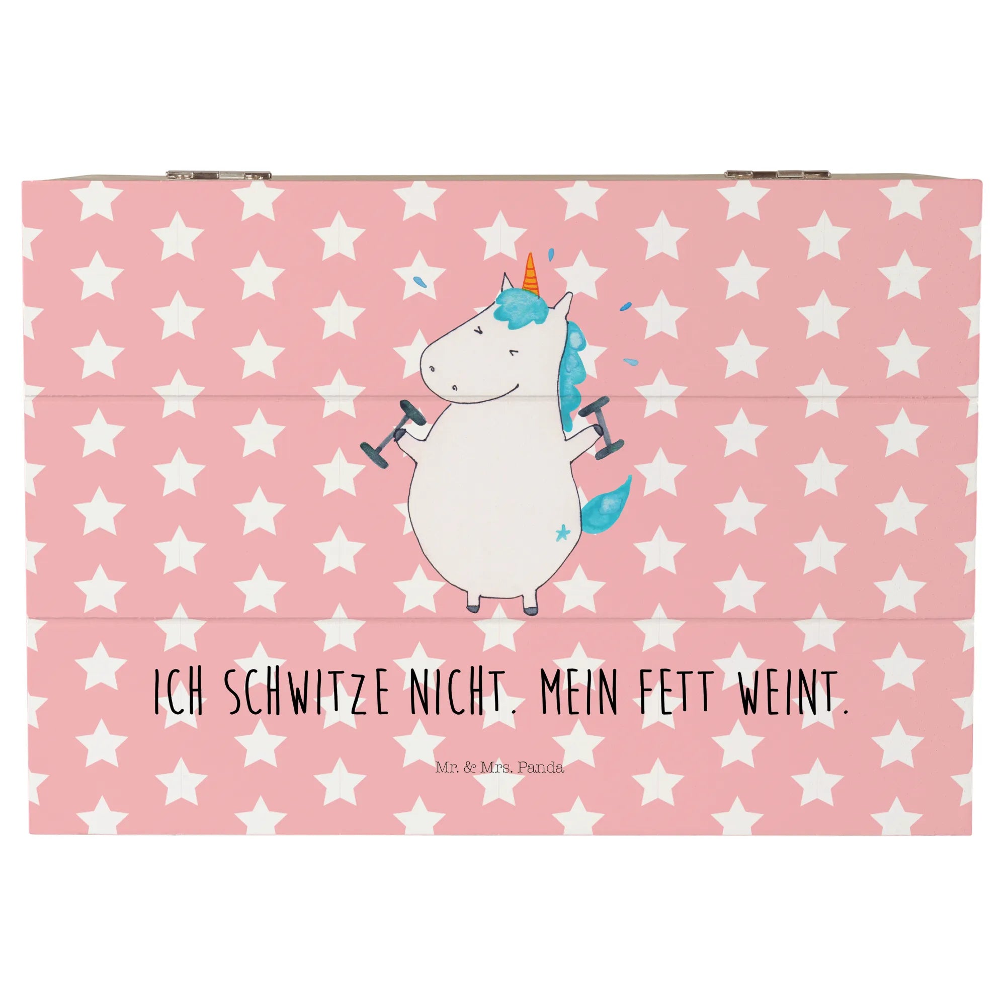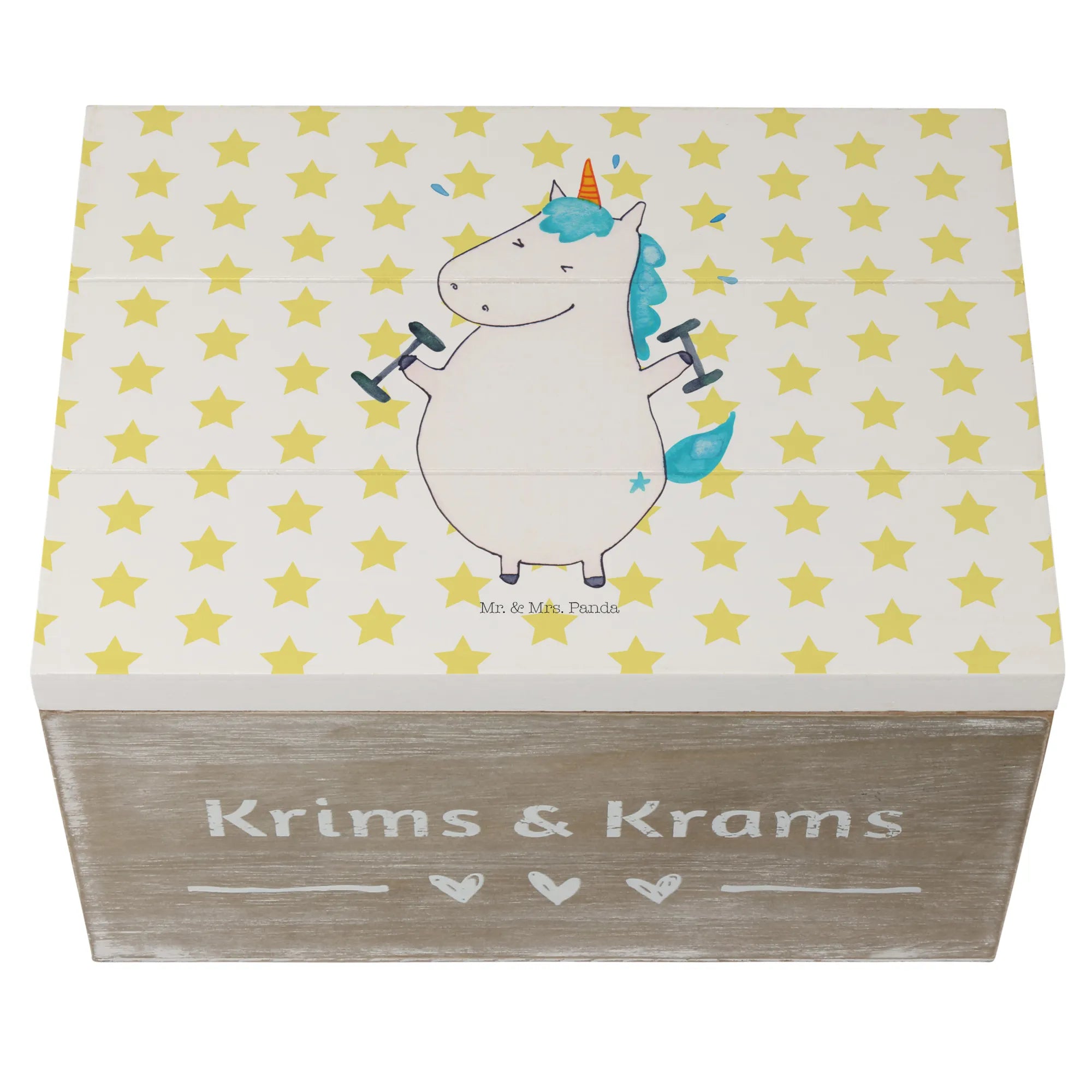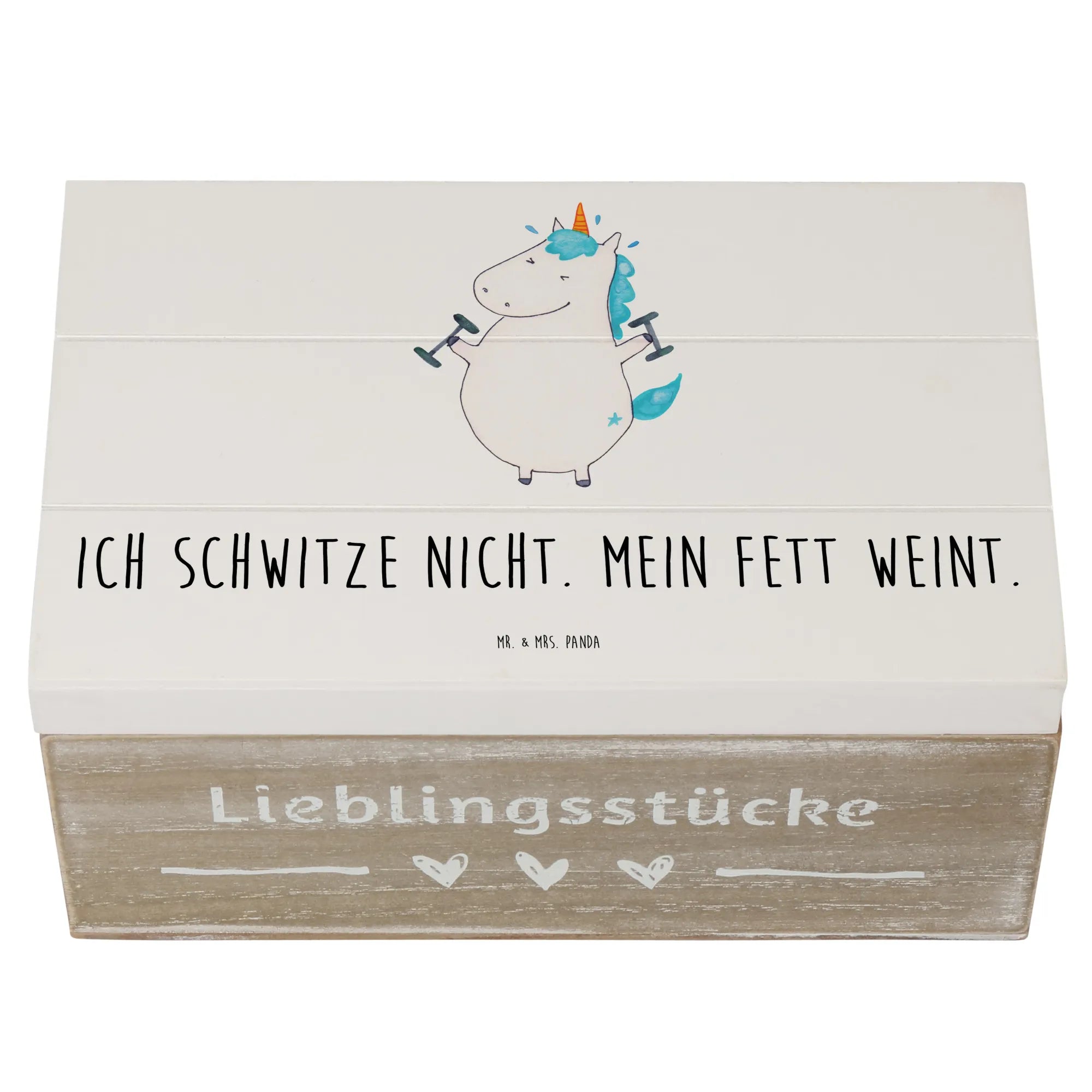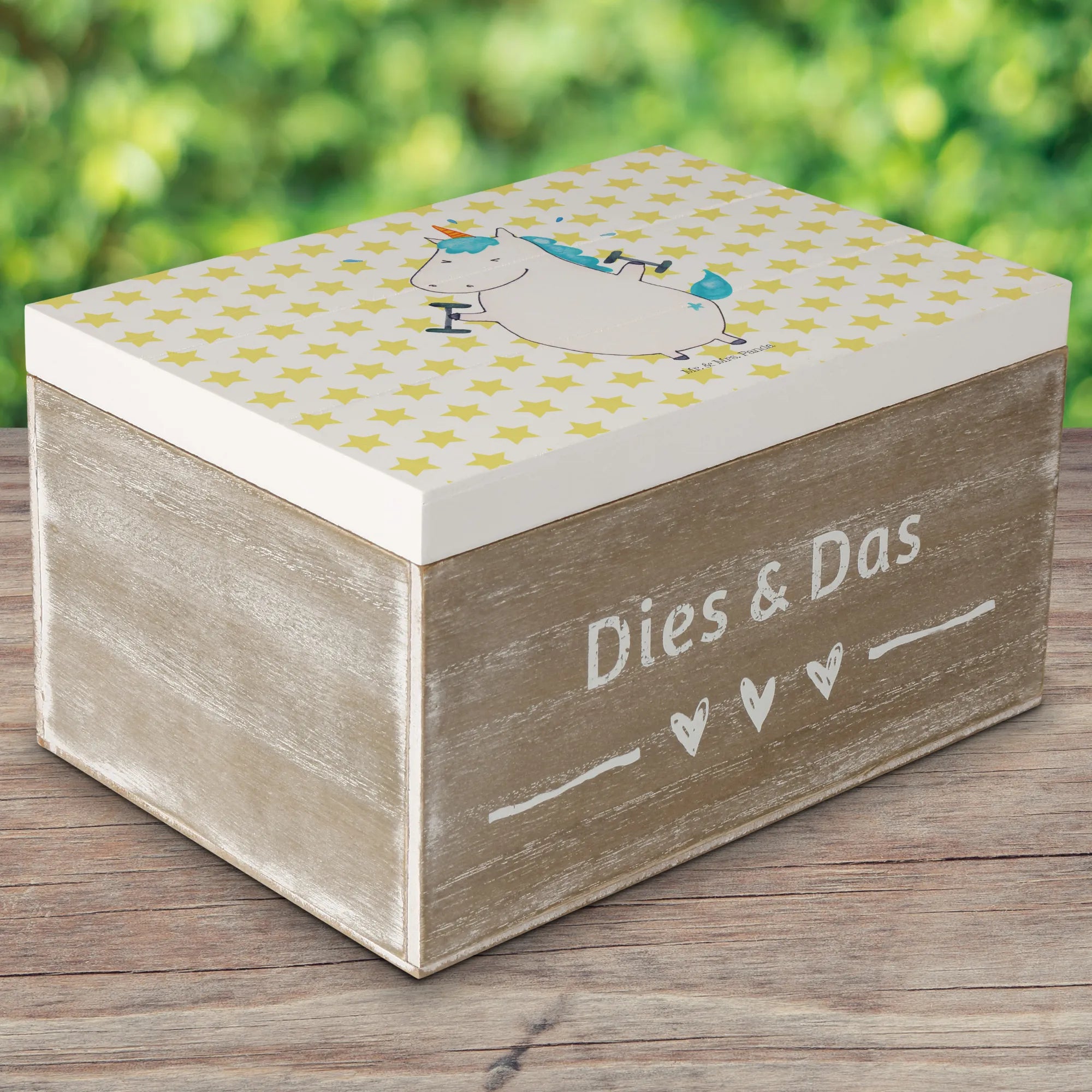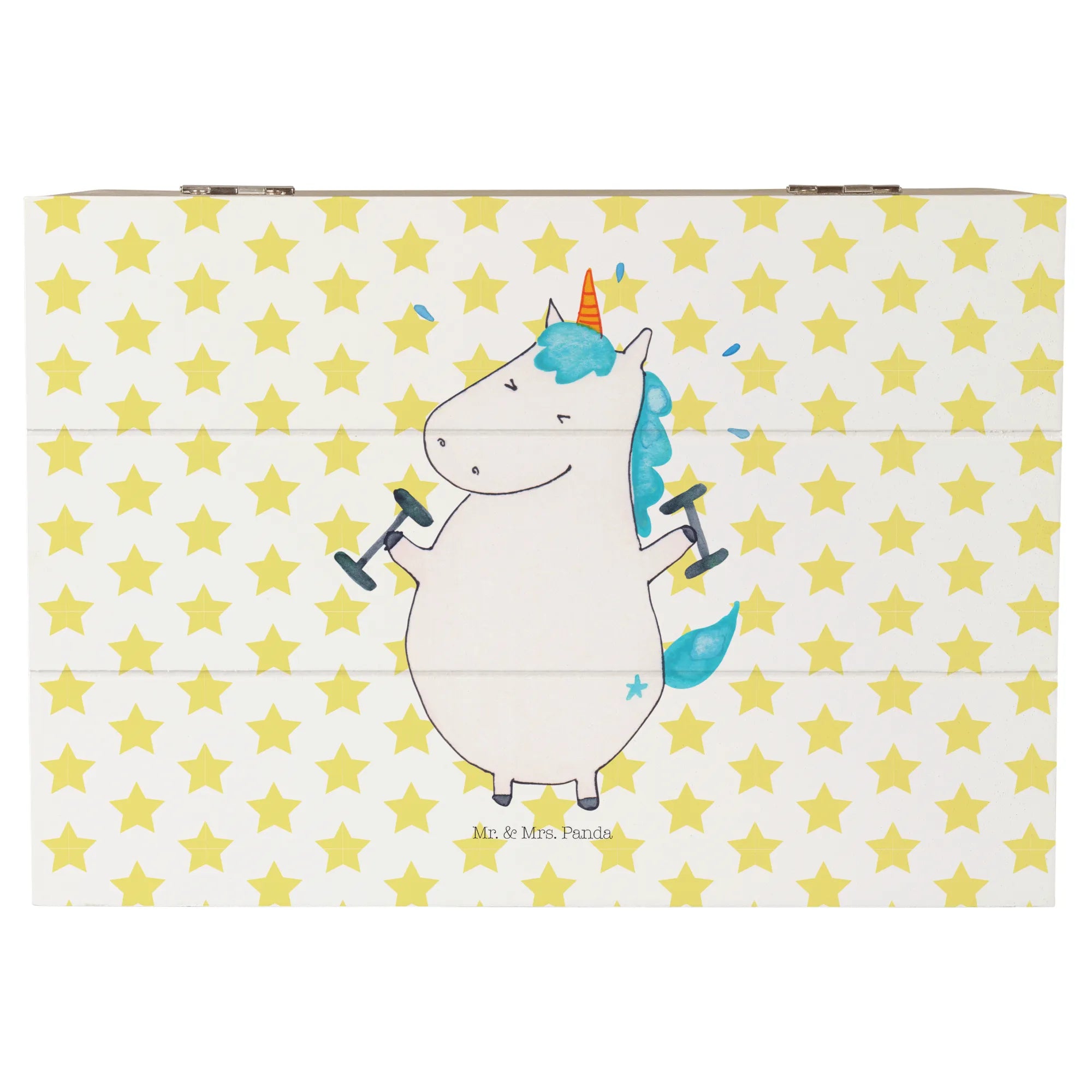 Entdecke die zauberhafte Holzkiste von Mr. & Mrs. Panda mit dem coolen Motiv "Einhorn Fitness"! Diese wunderschöne Kiste ist nicht nur ein Augenschmaus, sondern auch der perfekte Aufbewahrungsort für all deine wertvollen Schätze.