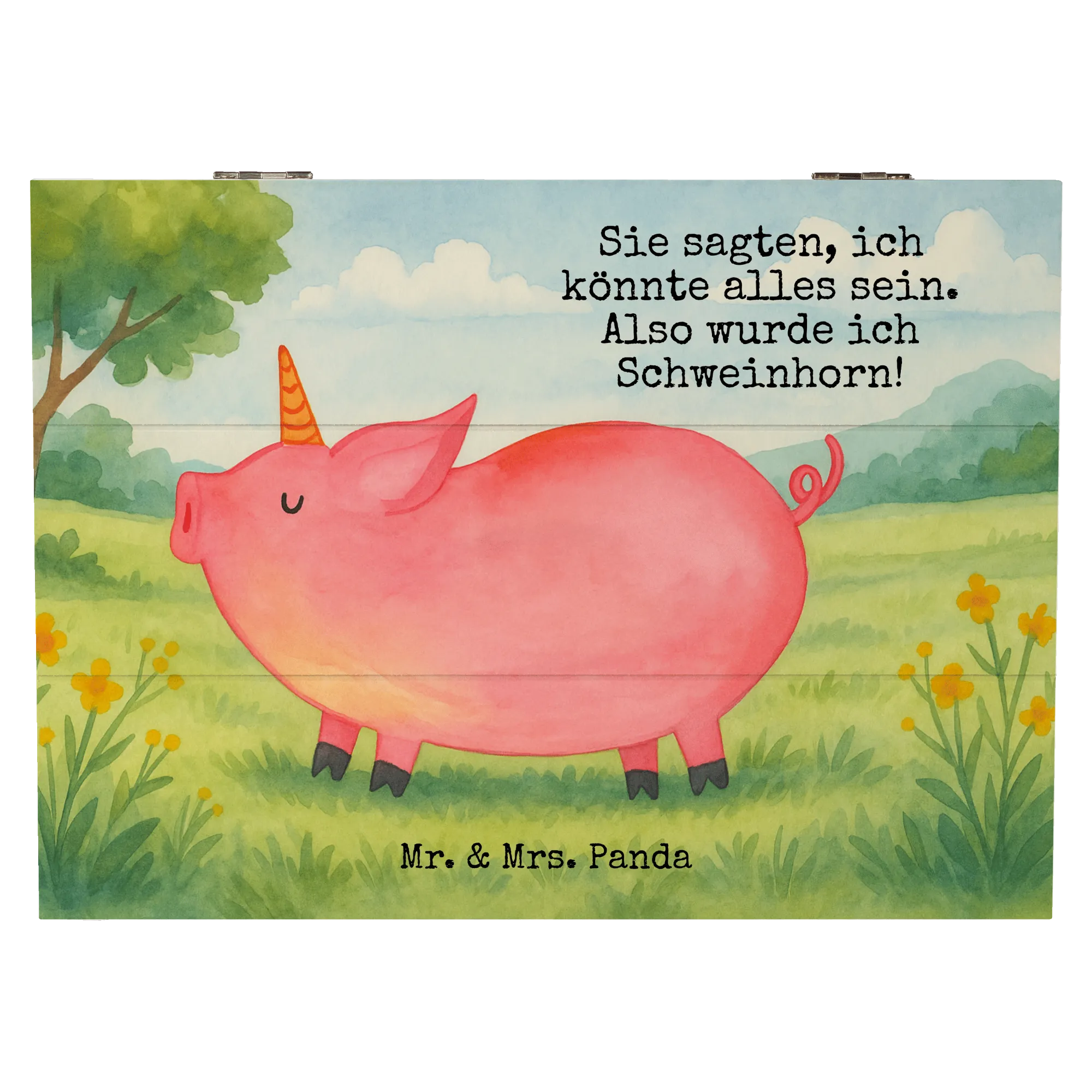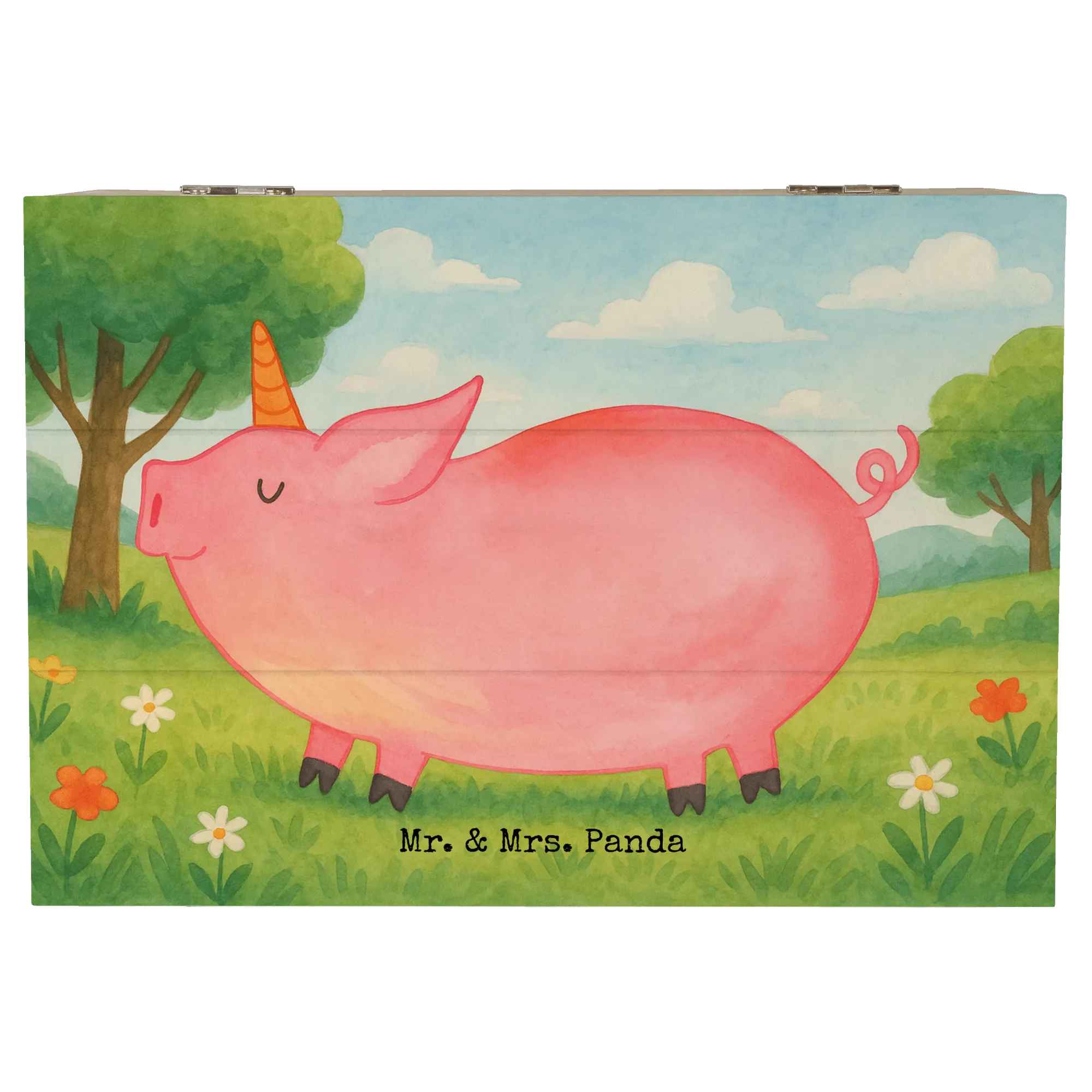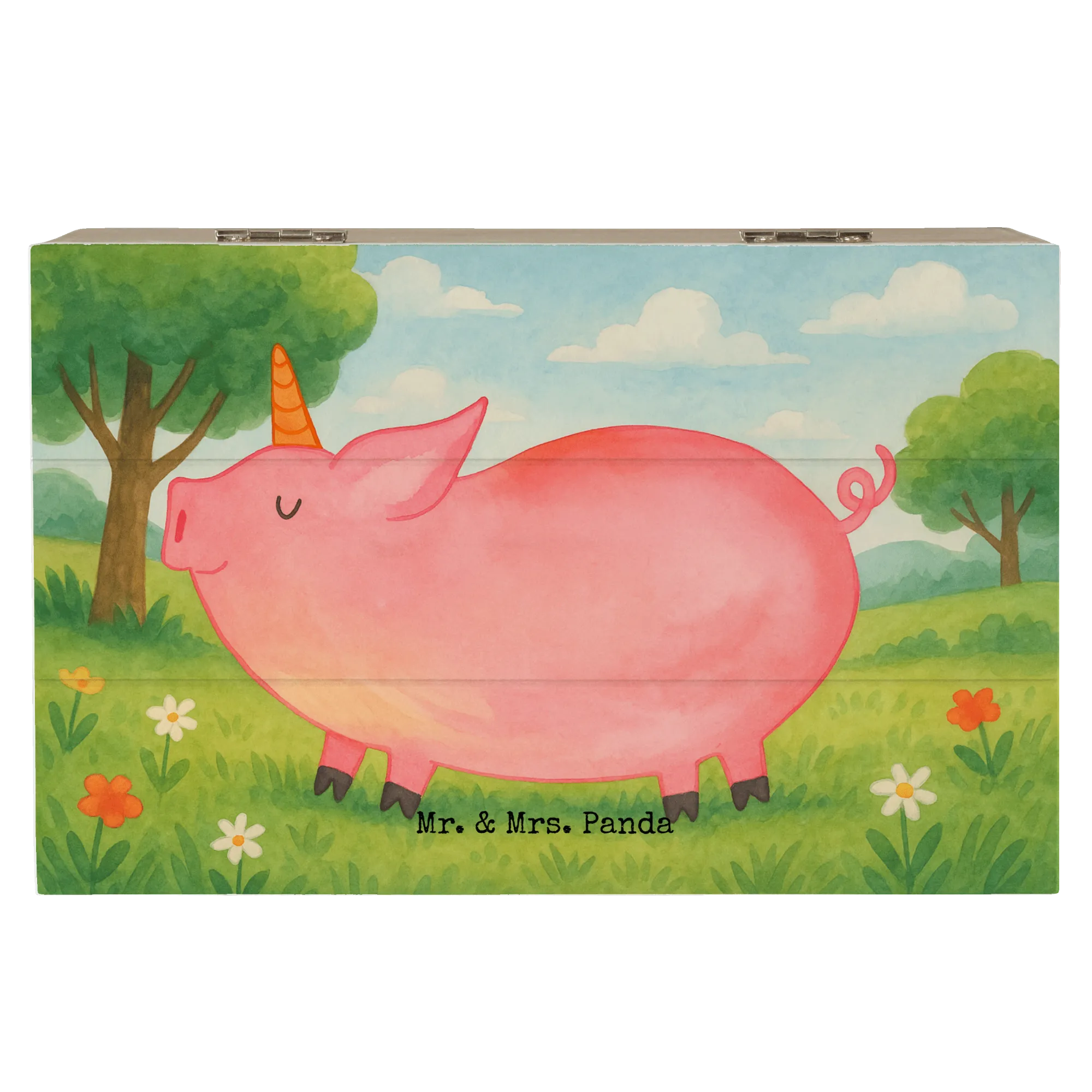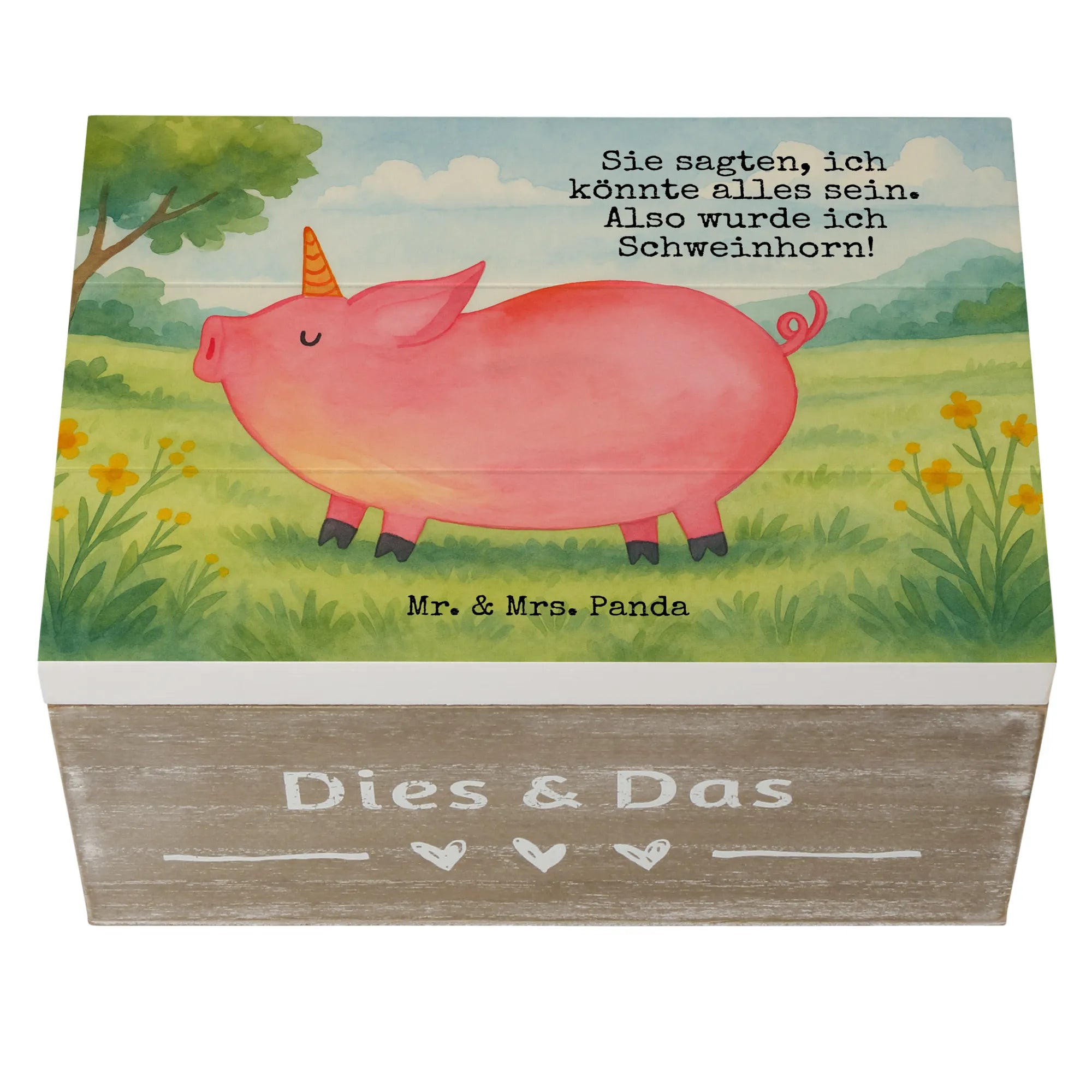 Holzkiste Einhorn Schwein Design - 22 x 15 cm - mit Spruch