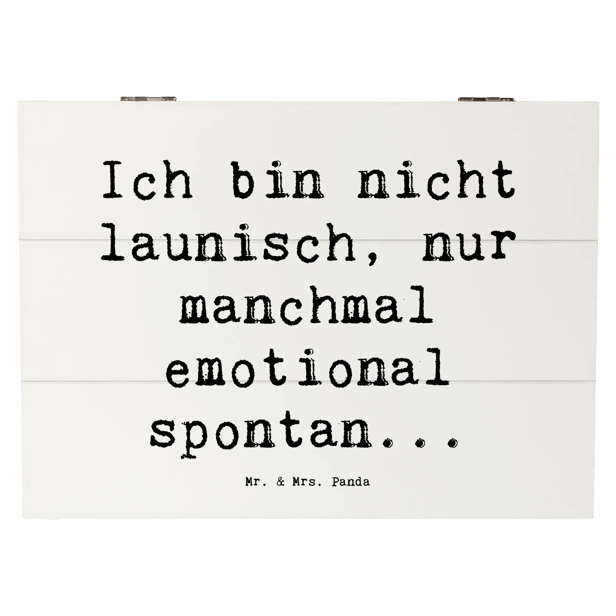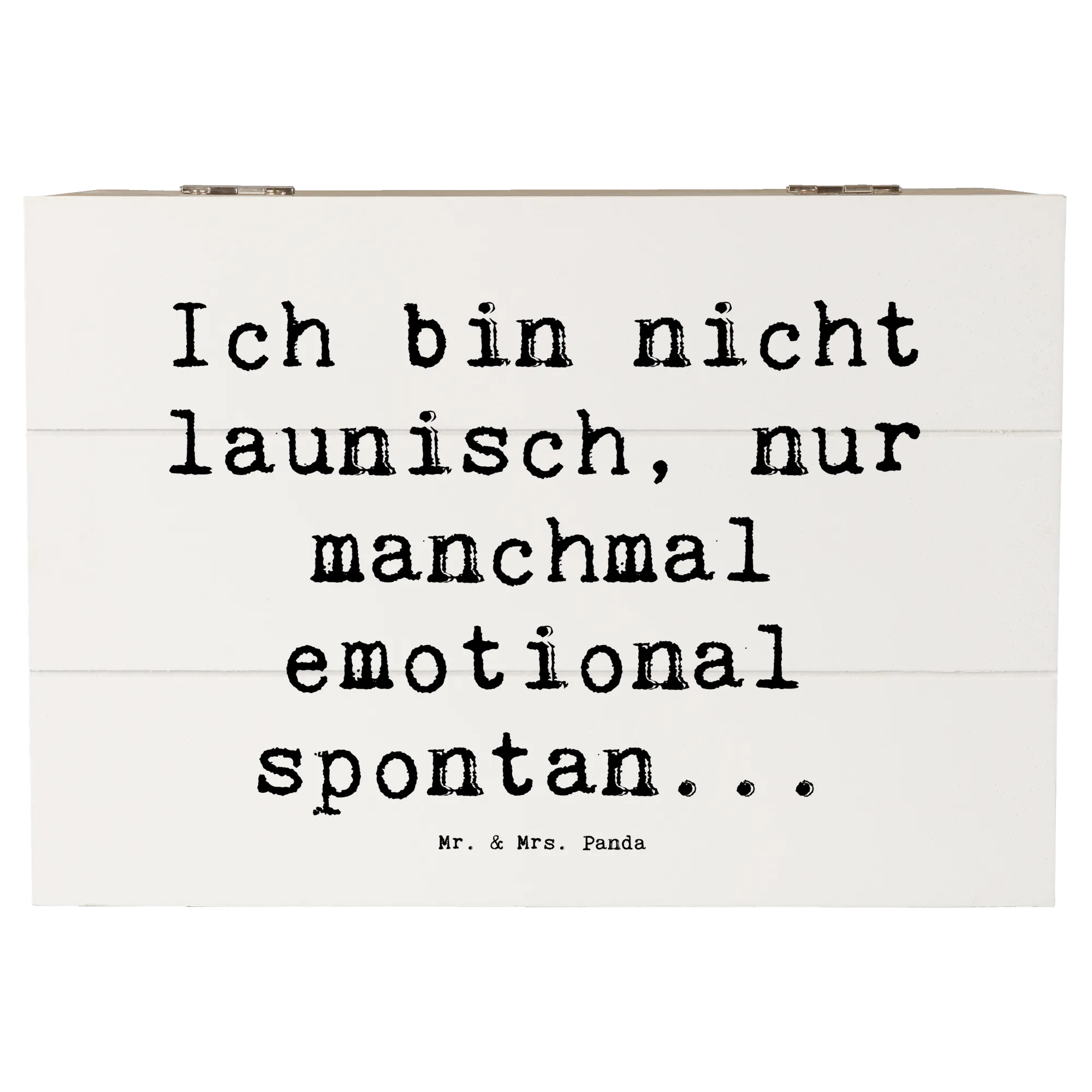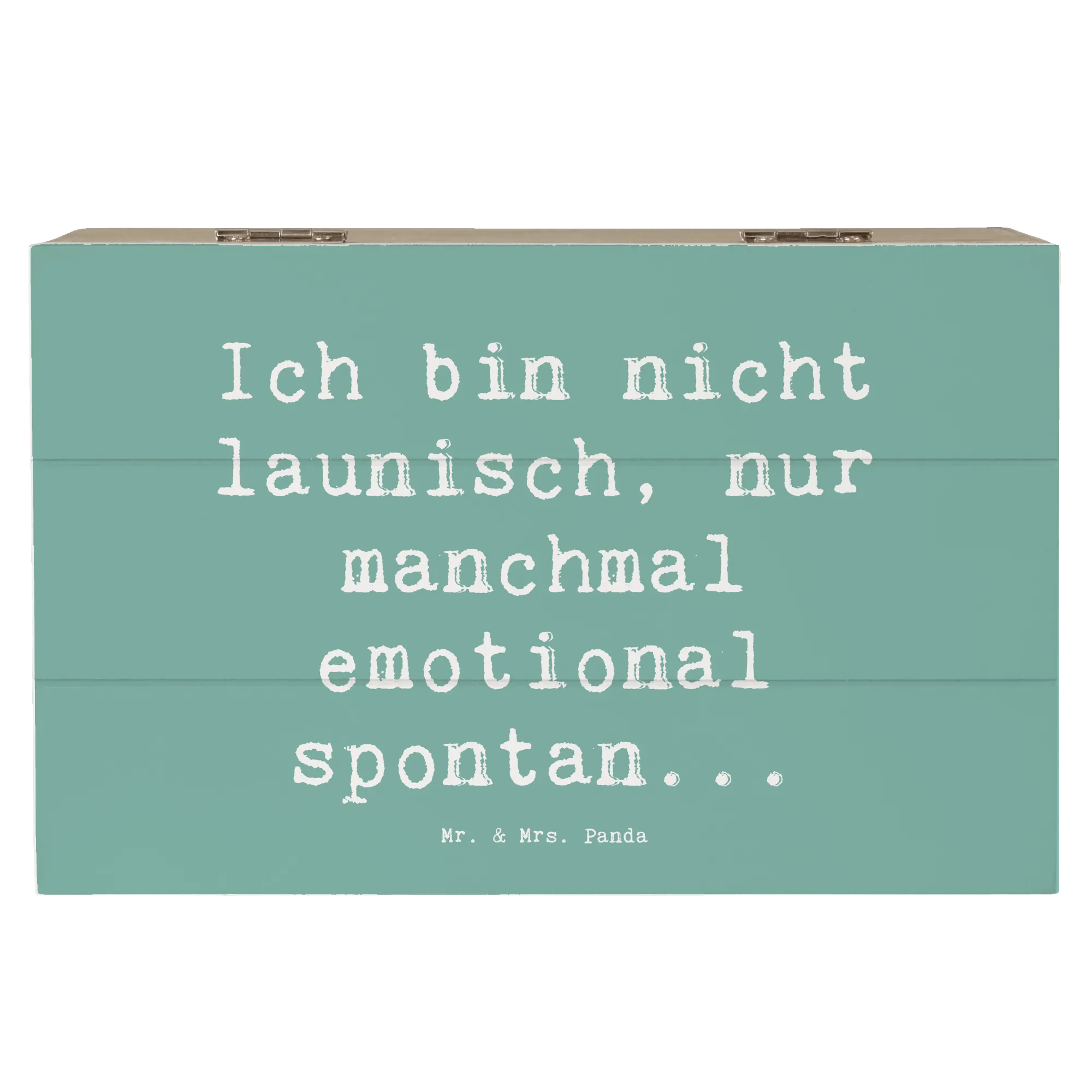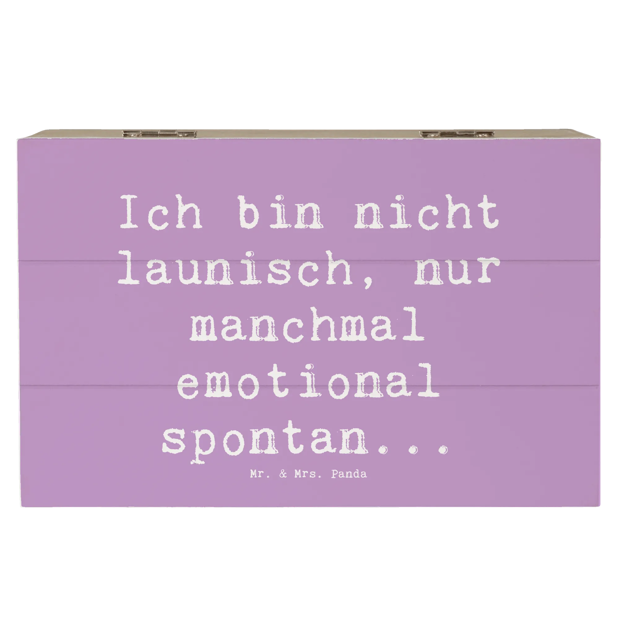 Ein ganz besonderes Highlight dieser Holzkiste ist der Spruch "Ich bin nicht launisch, nur manchmal emotional spontan...". Dieser Spruch bringt nicht nur ein Lächeln ins Gesicht, sondern erinnert uns auch daran, dass es in Ordnung ist, seine Emotionen zu zeigen. Sie eignet sich hervorragend als Geschenk für Freunde und Familie, die ein wenig Mut und Zuversicht brauchen oder einfach als Erinnerung an die schönen Dinge im Leben.
