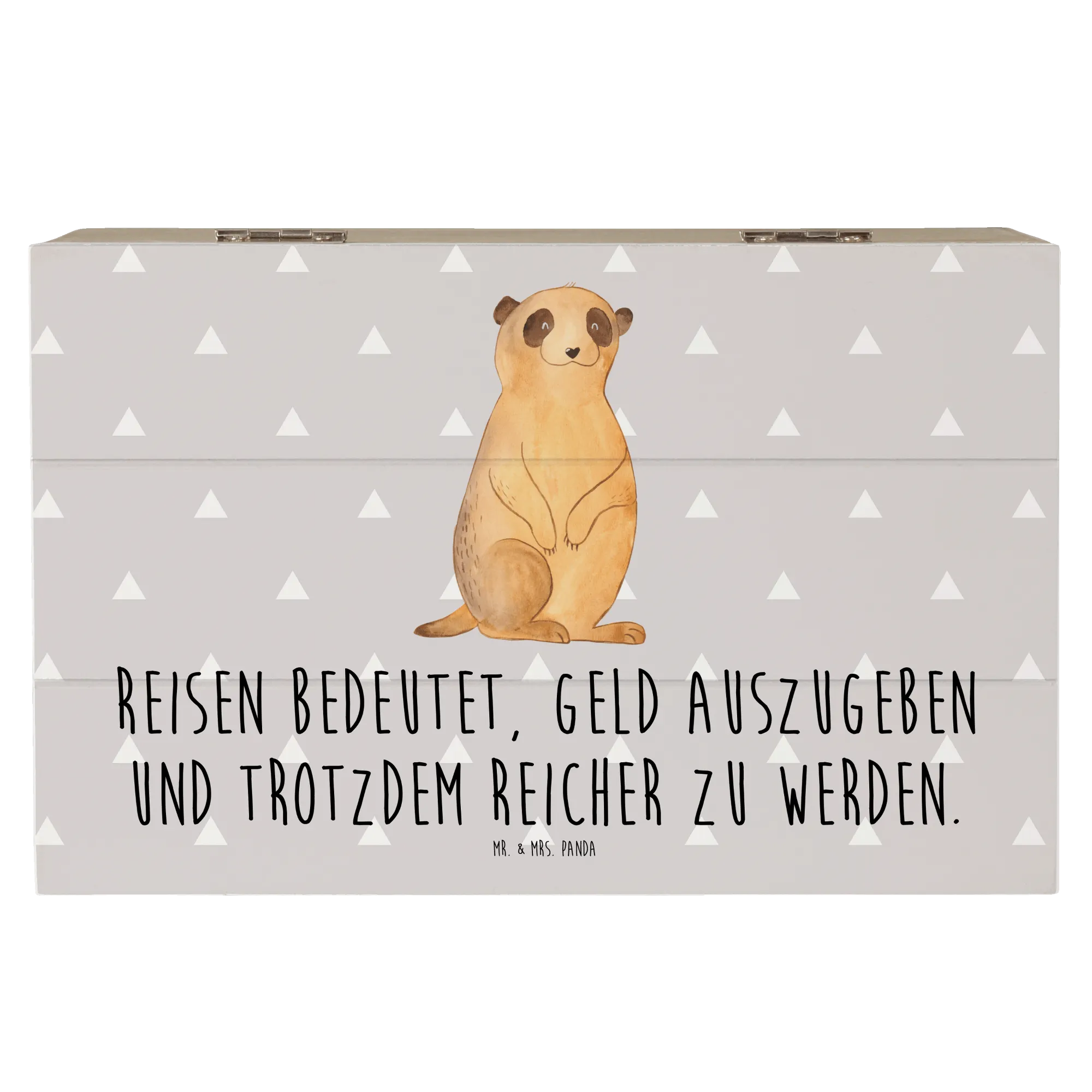 Die wunderschöne Holzkiste von Mr. & Mrs. Panda mit dem süßen Erdmännchen-Motiv aus der Afrika-Kollektion ist das perfekte Geschenk für alle Reise-Enthusiasten und Wildtier-Liebhaber.