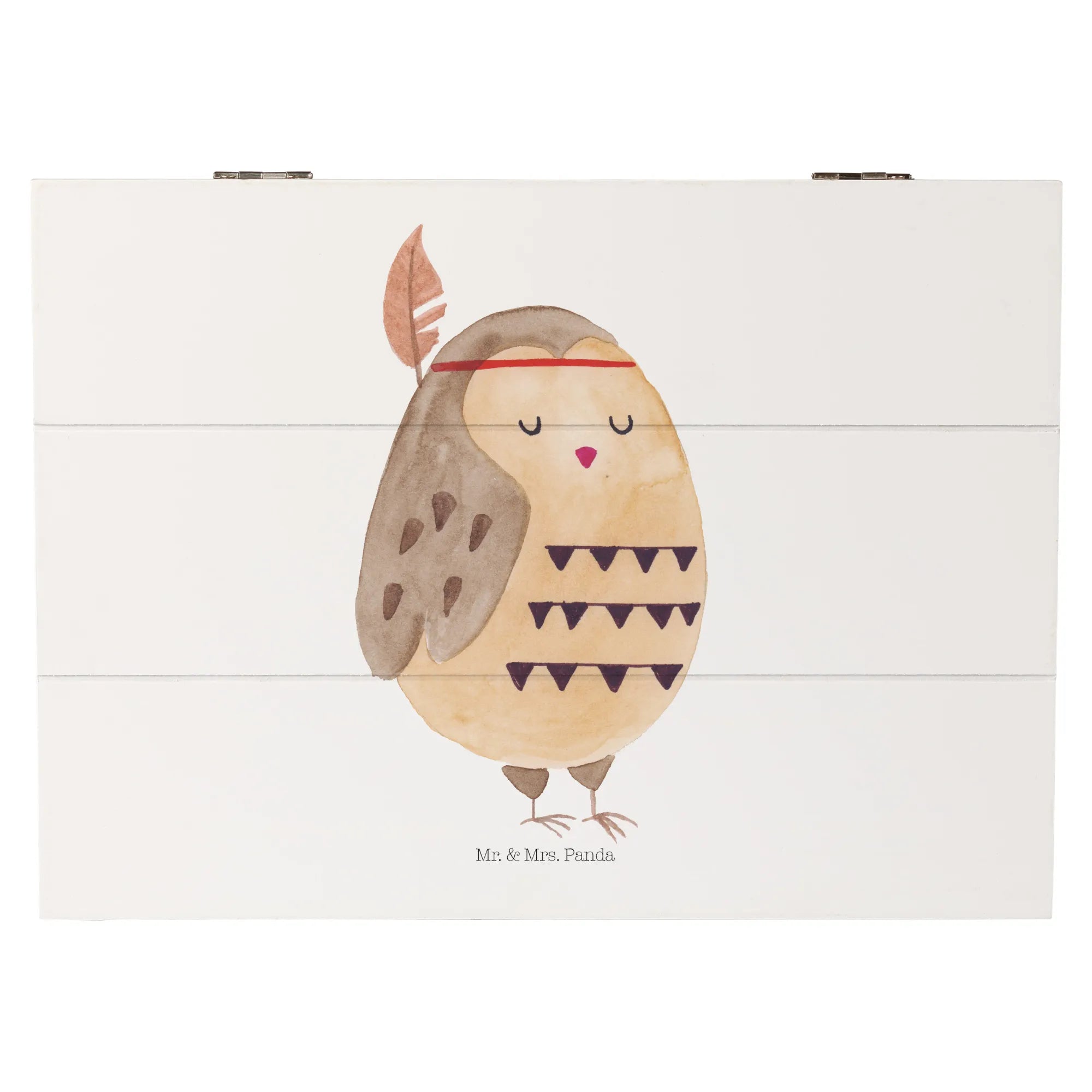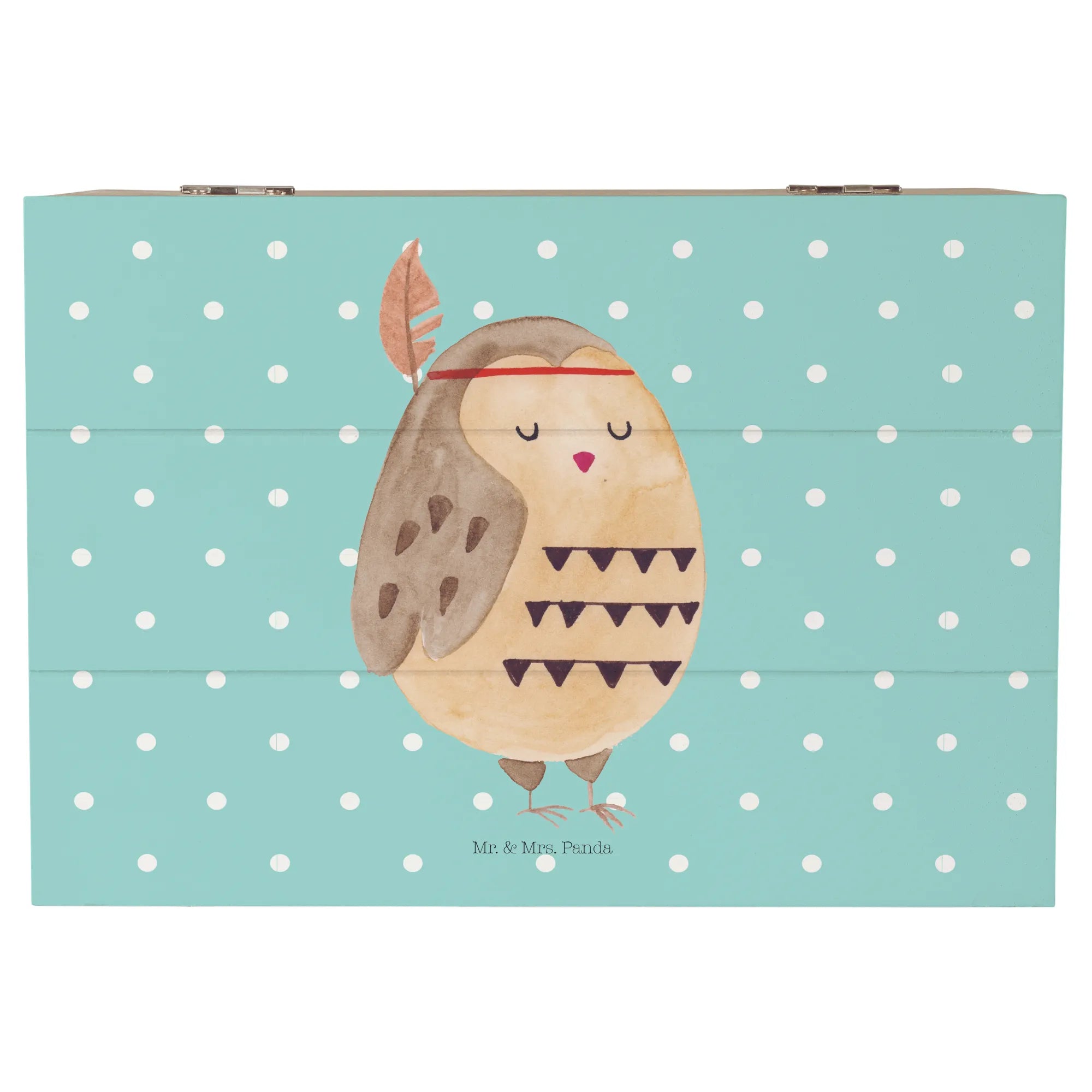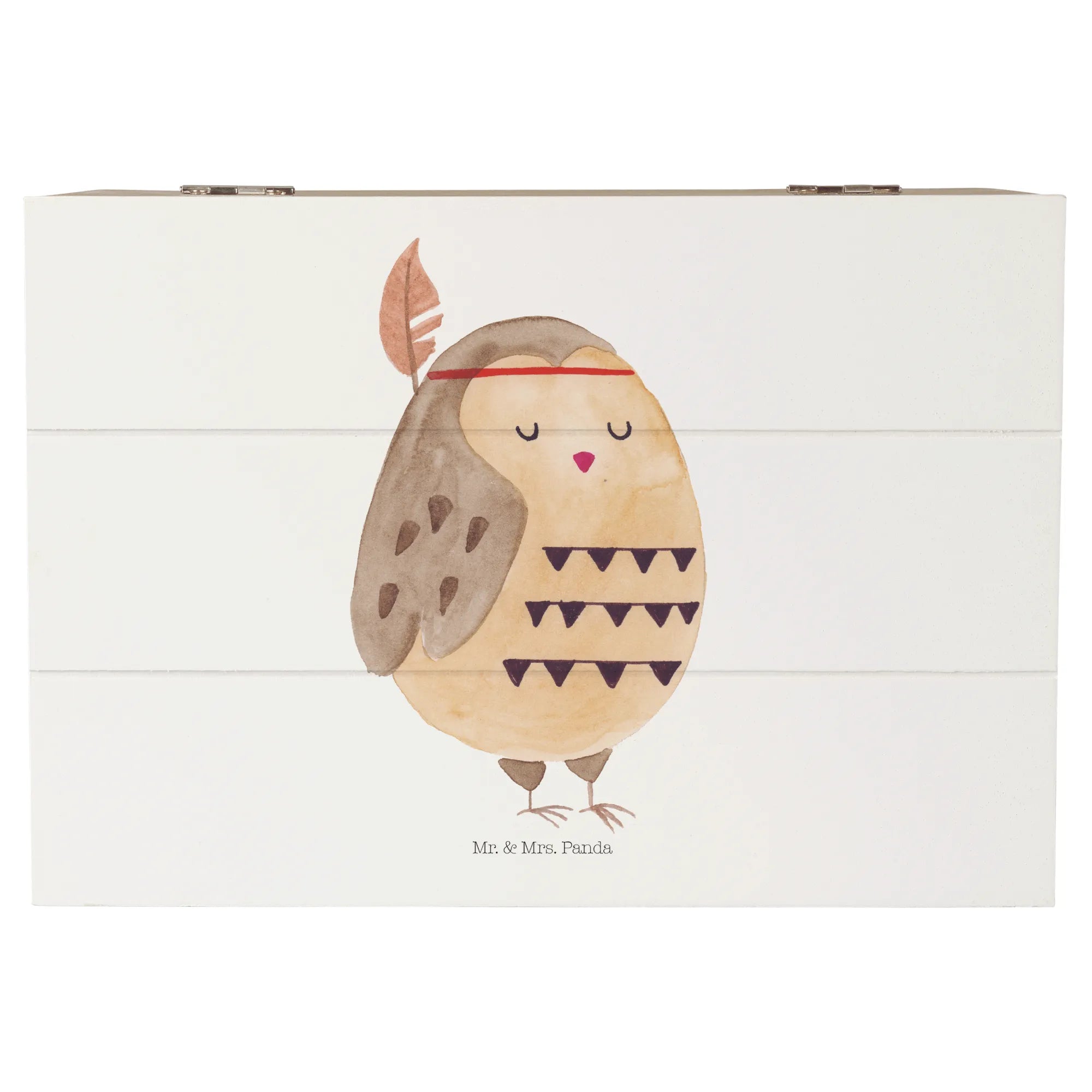 Die wunderschöne Holzkiste mit dem Motiv der Eule Federschmuck von Mr. & Mrs. Panda ist der perfekte Aufbewahrungsort für all deine wertvollen Schätze!