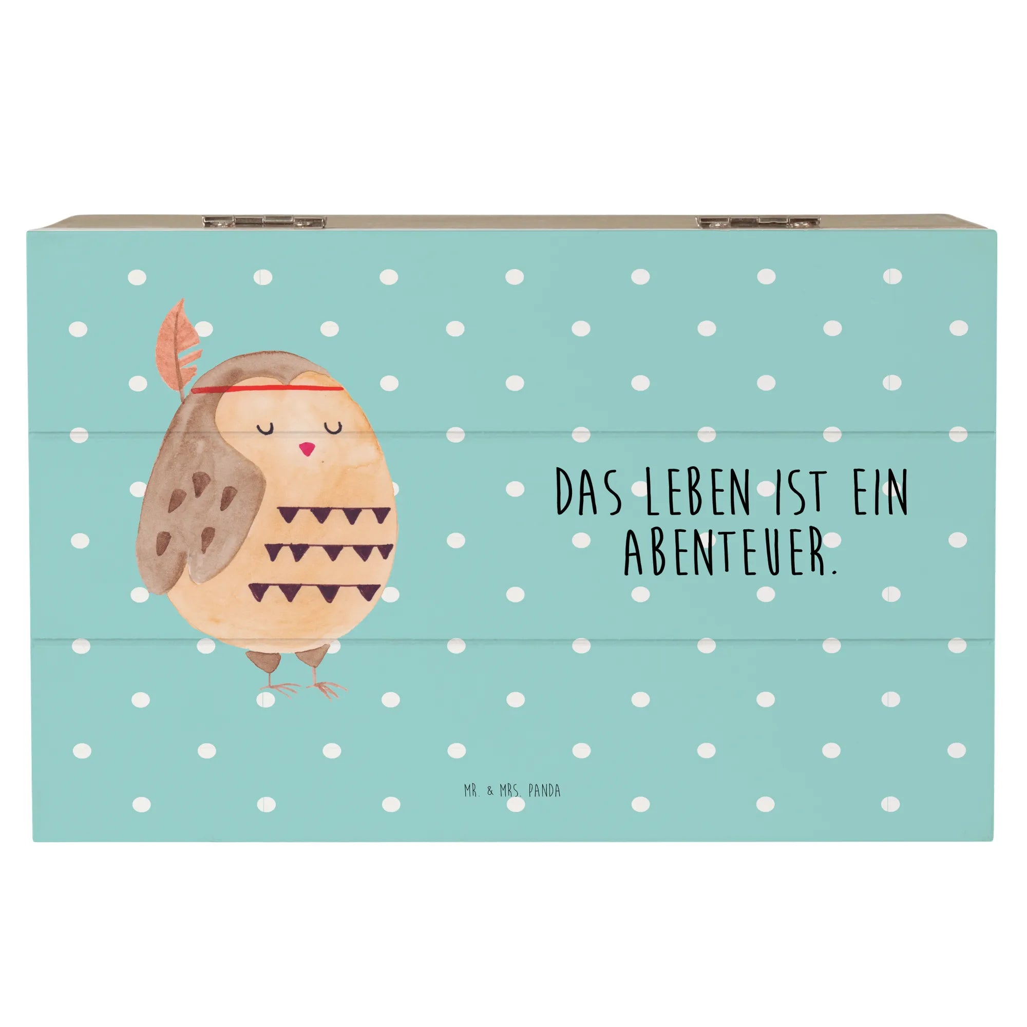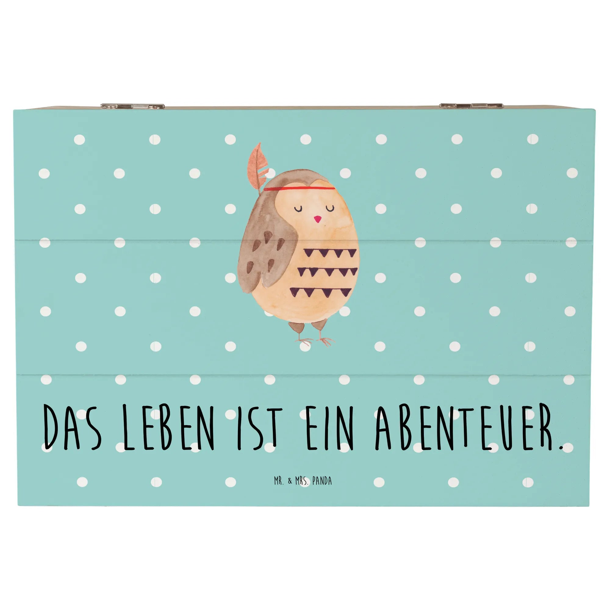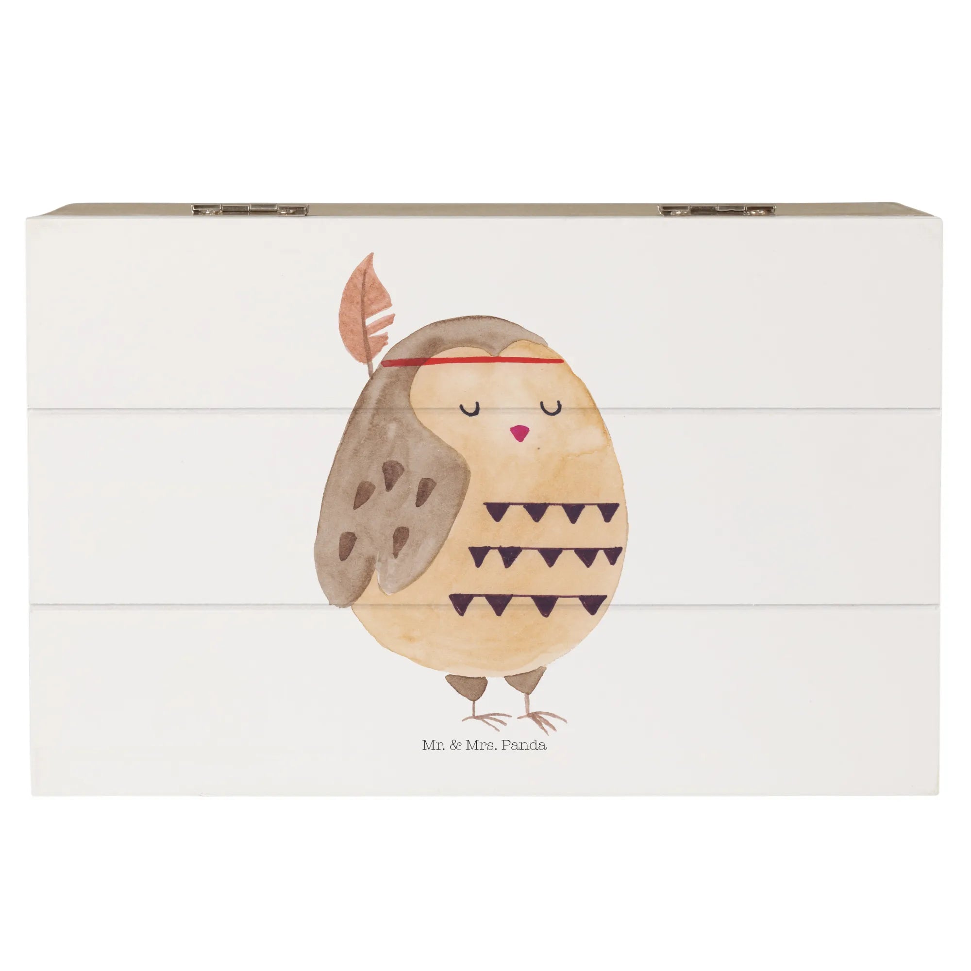 Die wunderschöne Holzkiste mit dem Motiv der Eule Federschmuck von Mr. & Mrs. Panda ist der perfekte Aufbewahrungsort für all deine wertvollen Schätze!