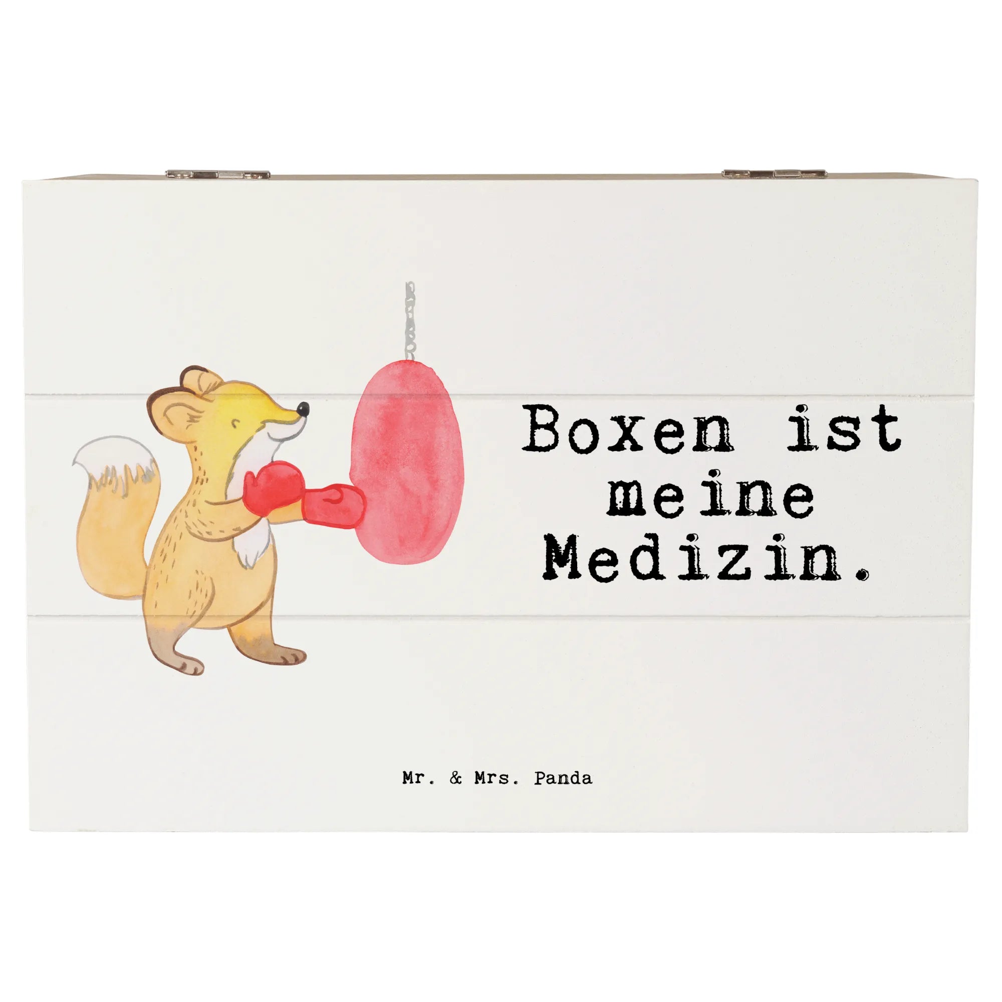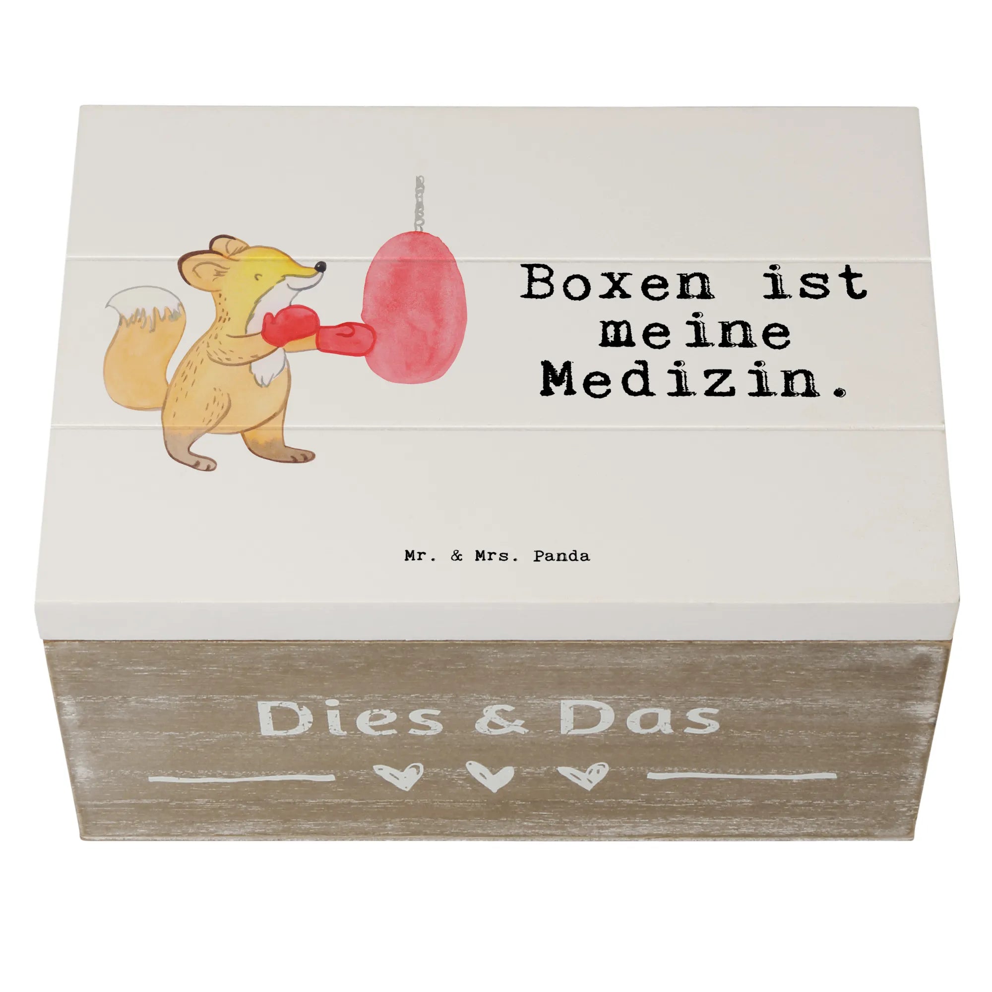 Die Holzkiste mit dem süßen Fuchs-Motiv "Boxen Tage" von Mr. & Mrs. Panda ist das perfekte Geschenk für sportbegeisterte Menschen und Boxliebhaber. Jede Kiste wird aus robuster Premium Hartfaser gefertigt und bietet nicht nur Platz für all deine wertvollen Erinnerungen, sondern macht auch als dekoratives Element eine hervorragende Figur.