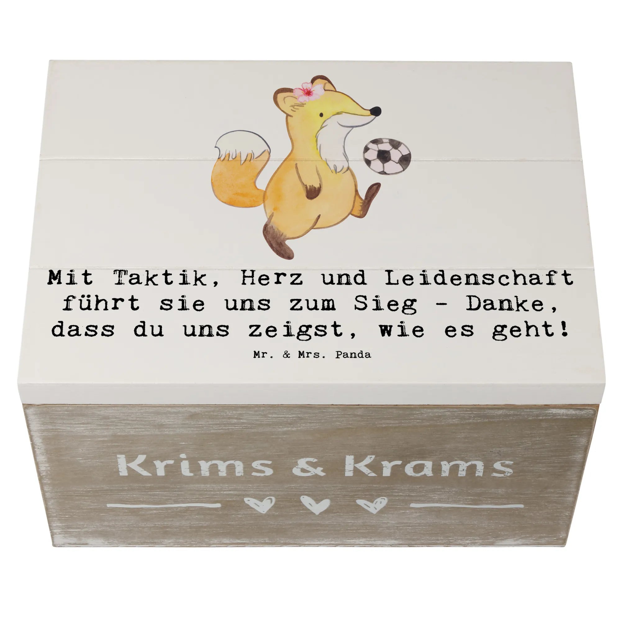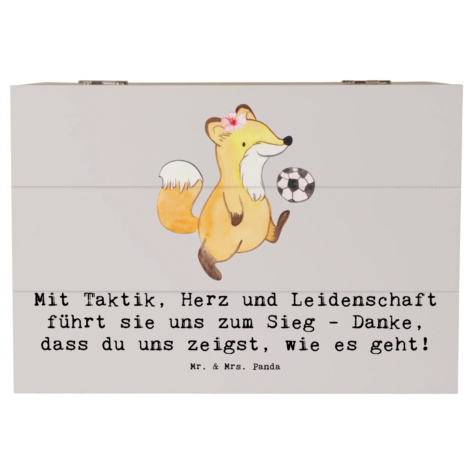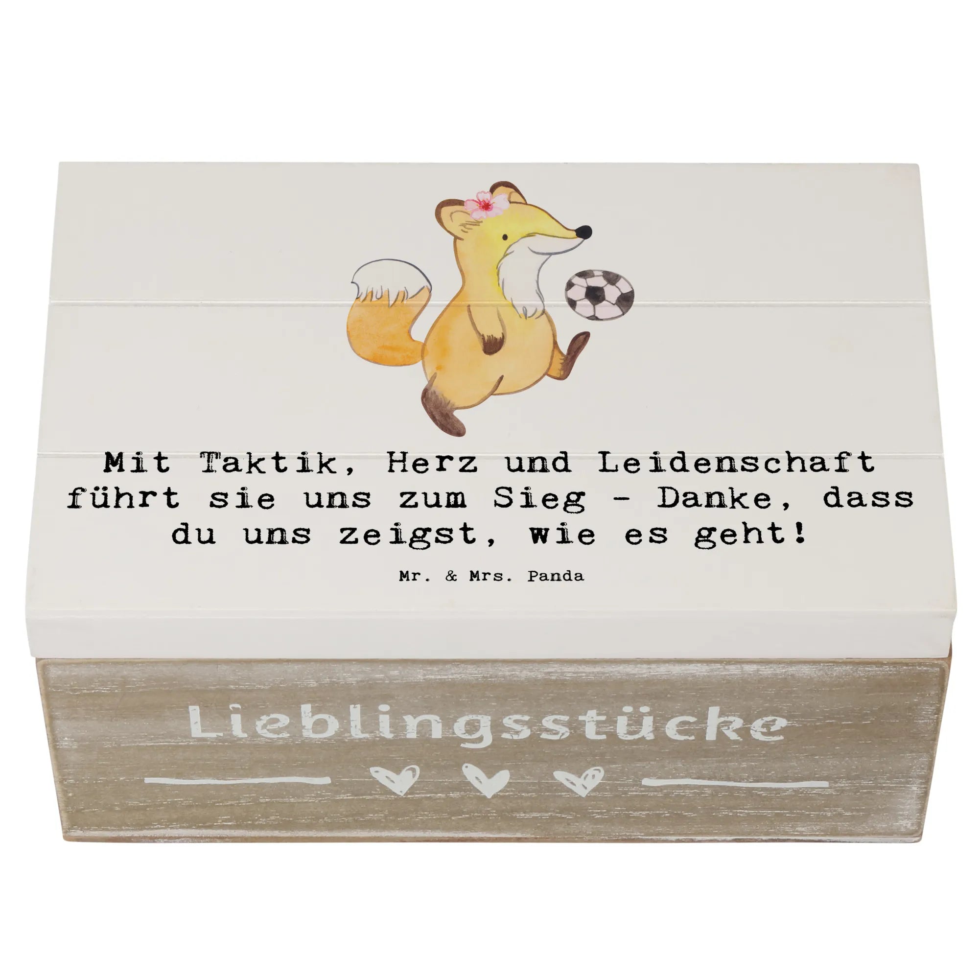 Entdecke unsere wunderschöne Holzkiste für Fußball Trainerinnen von Mr. & Mrs. Panda! Diese liebevoll gestaltete Kiste ist nicht nur ein praktischer Aufbewahrungsort, sondern auch ein ganz besonderes Erinnerungsgeschenk.