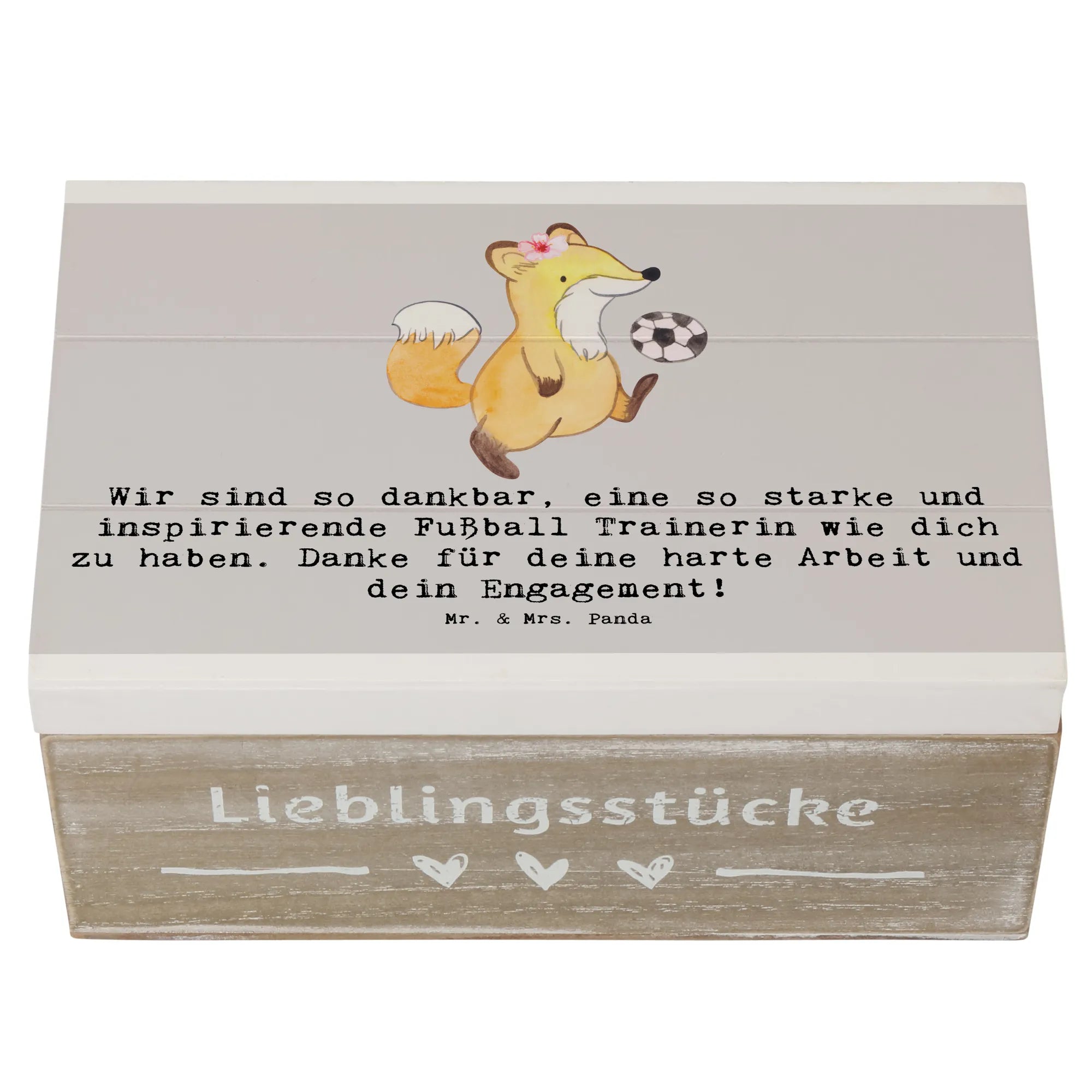 Holzkiste Fußball Trainerin Dankbarkeit - 22 x 15 cm - Grau Pastell