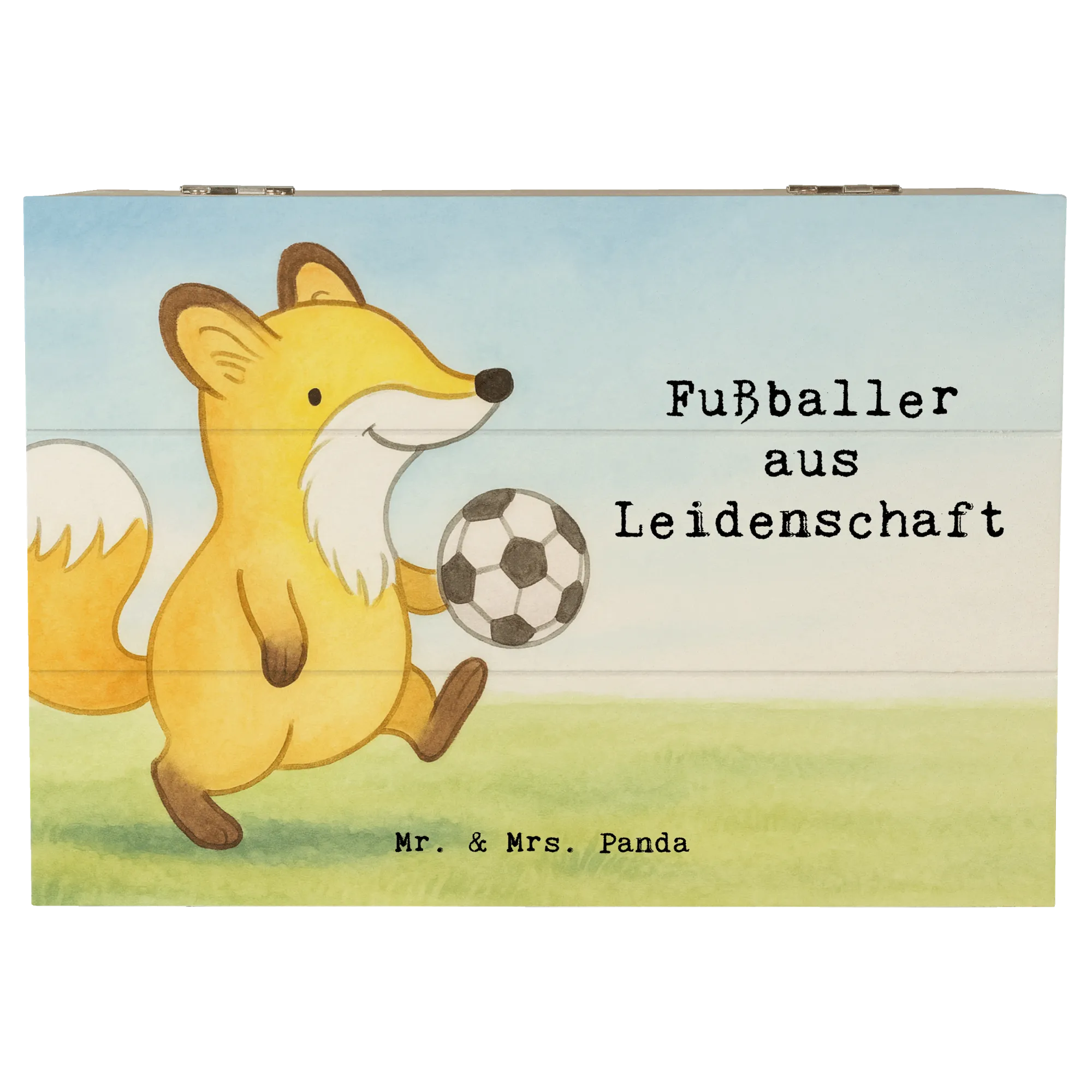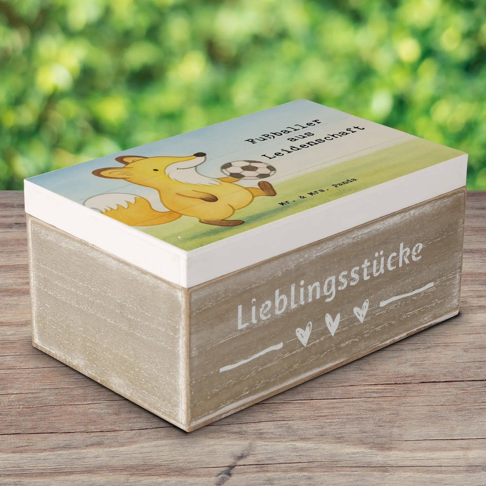 Eine wunderschöne Holzkiste von Mr. & Mrs. Panda – Fußballer aus Leidenschaft.