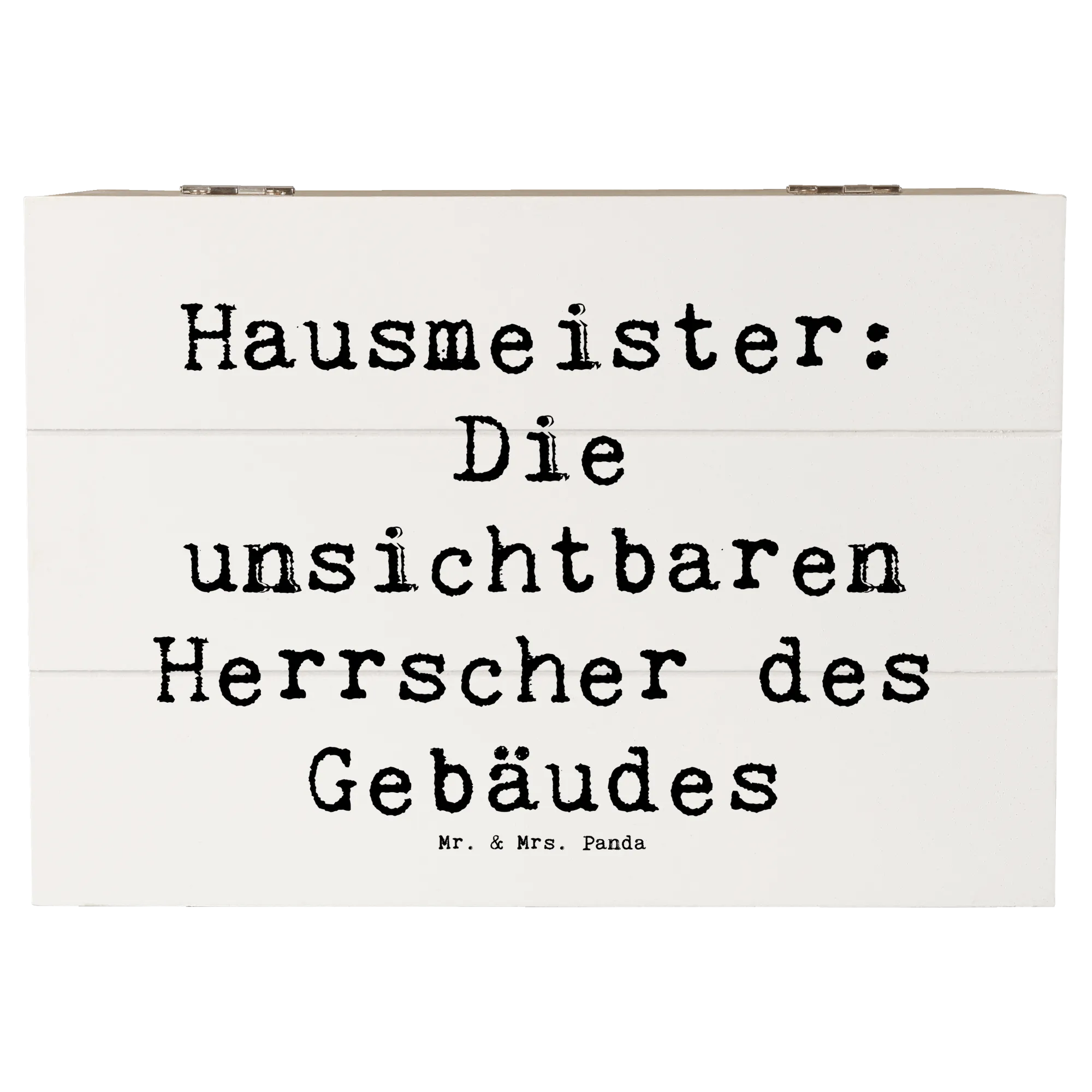 Holzkiste Spruch Hausmeister: Die unsichtbaren Herrscher des Gebäudes - 22 x 15 cm - Weiß