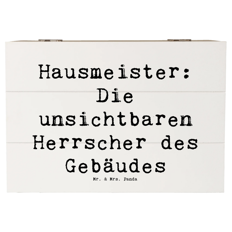 Die wunderschöne Holzkiste von Mr. & Mrs. Panda mit dem Spruch "Hausmeister: Die unsichtbaren Herrscher des Gebäudes" ist das perfekte Geschenk für alle, die den Beruf des Hausmeisters schätzen. Ob als Erinnerungskiste für festliche Anlässe wie Kommunion oder Konfirmation oder als schicke Aufbewahrungsbox für persönliche Schätze – diese Kiste ist vielseitig einsetzbar.