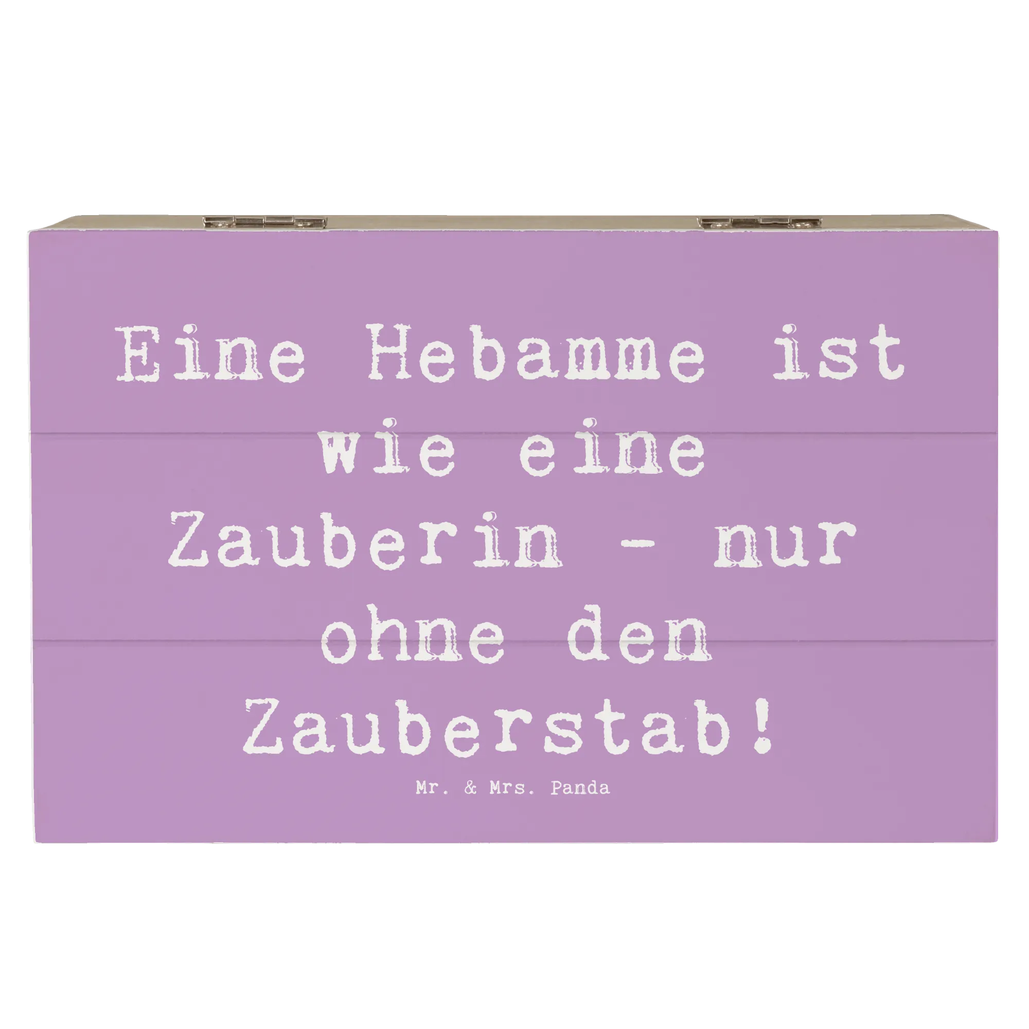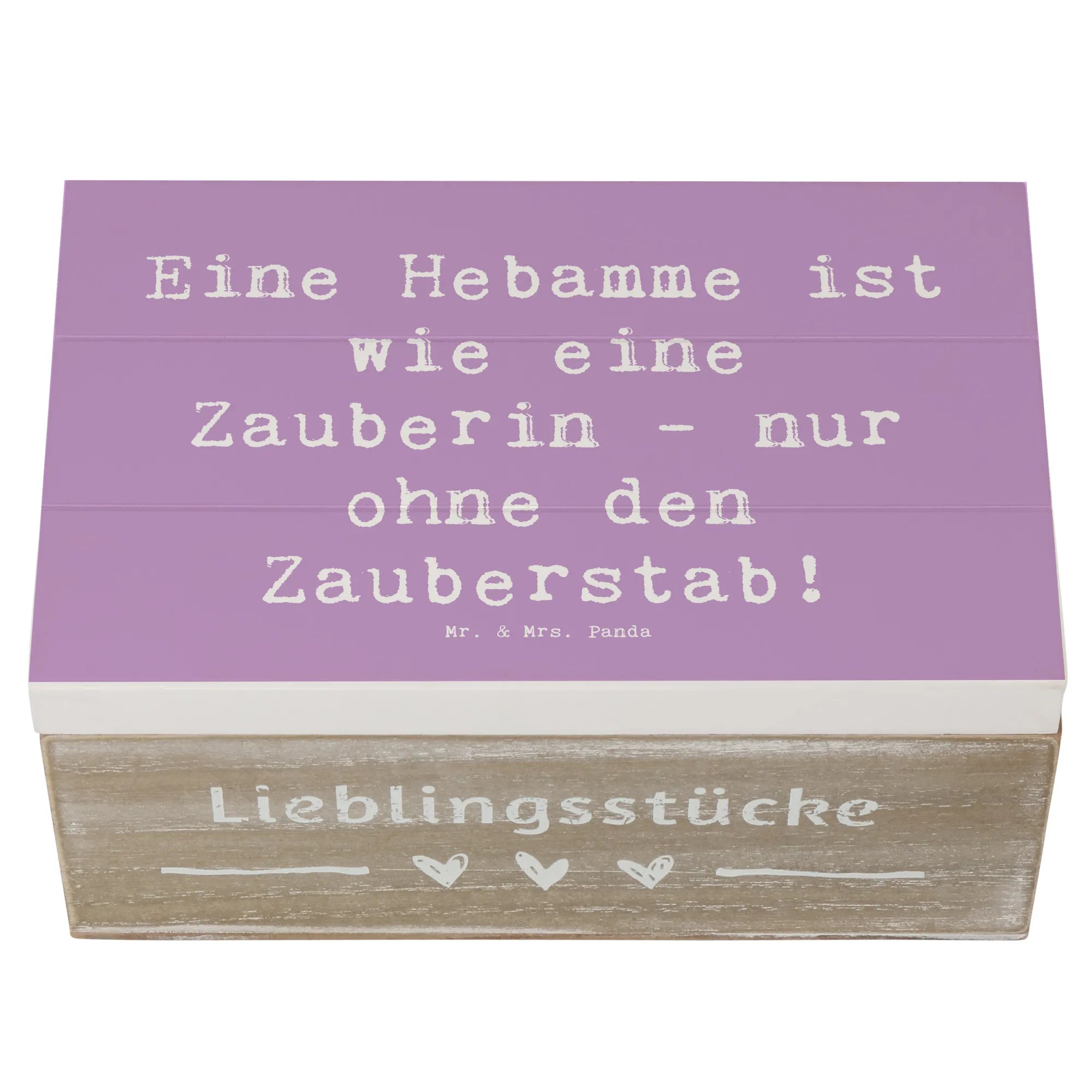 Entdecke die zauberhafte Holzkiste "Hebamme" von Mr. & Mrs. Panda – das perfekte Geschenk für alle, die im Bereich Geburtshilfe tätig sind oder Hebammen in ihrer Familie und Freundeskreis haben. Mit dem liebevollen Spruch "Eine Hebamme ist wie eine Zauberin – nur ohne den Zauberstab!" wird jede Kiste zu einem ganz besonderen Unikat.