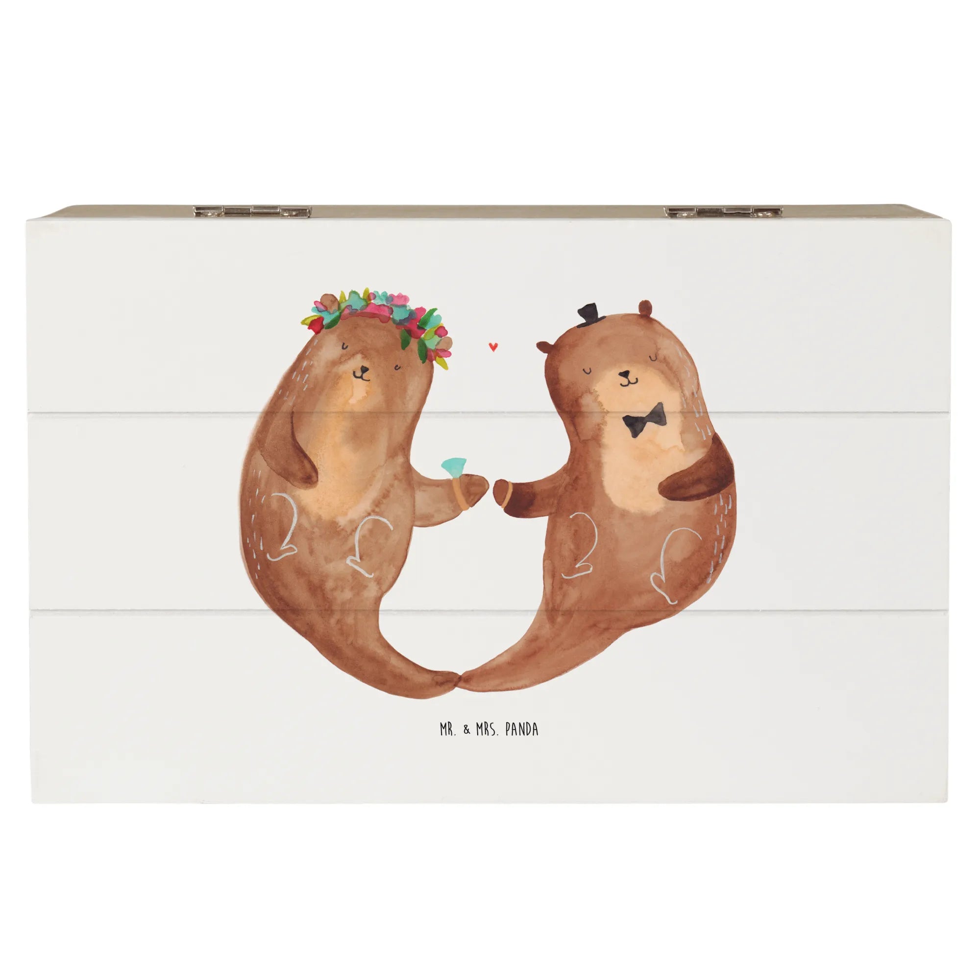 Die wunderschöne Holzkiste "Hochzeitspaar Otter" von Mr. & Mrs. Panda ist das perfekte Geschenk für frische Ehepaare, Verlobte oder zur Feier eines Hochzeitstags!