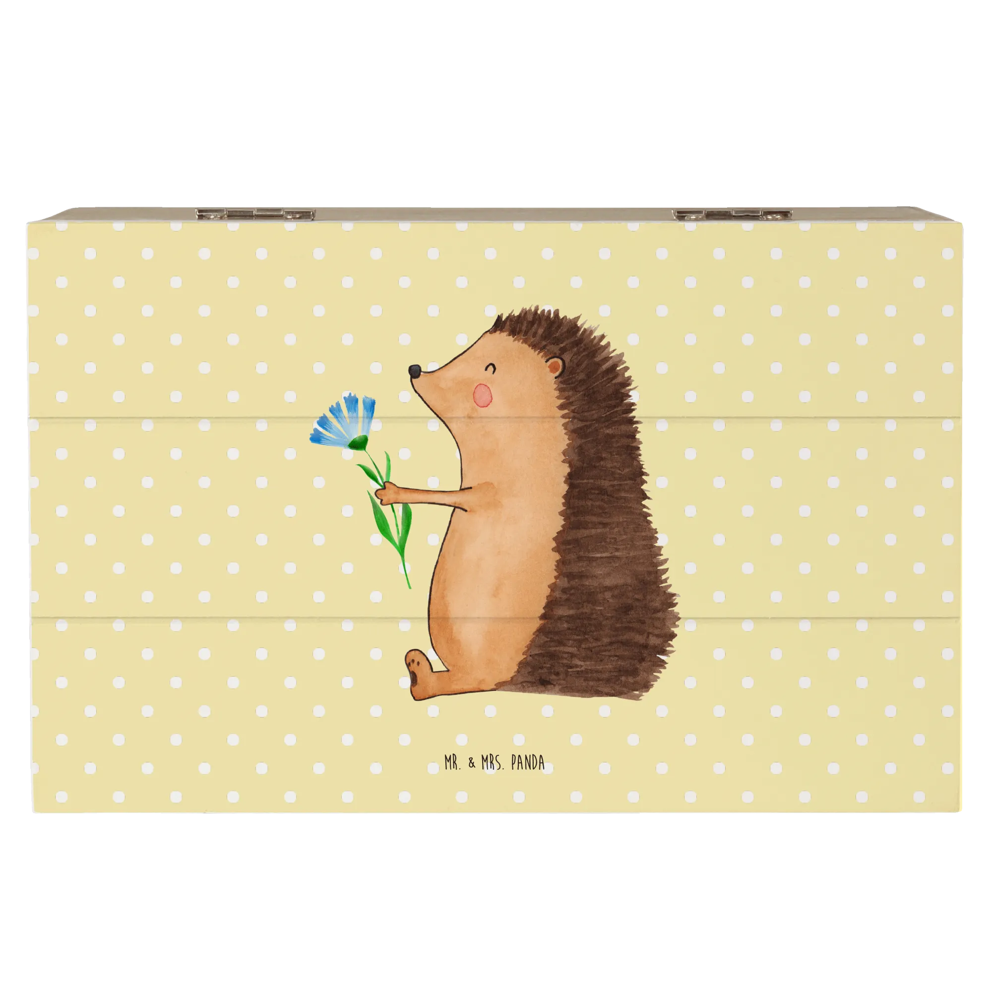 Entdecke die wunderschöne Holzkiste "Igel mit Blume" von Mr. & Mrs. Panda! Diese zauberhafte Schatzkiste ist der perfekte Aufbewahrungsort für all deine wertvollen Erinnerungen.