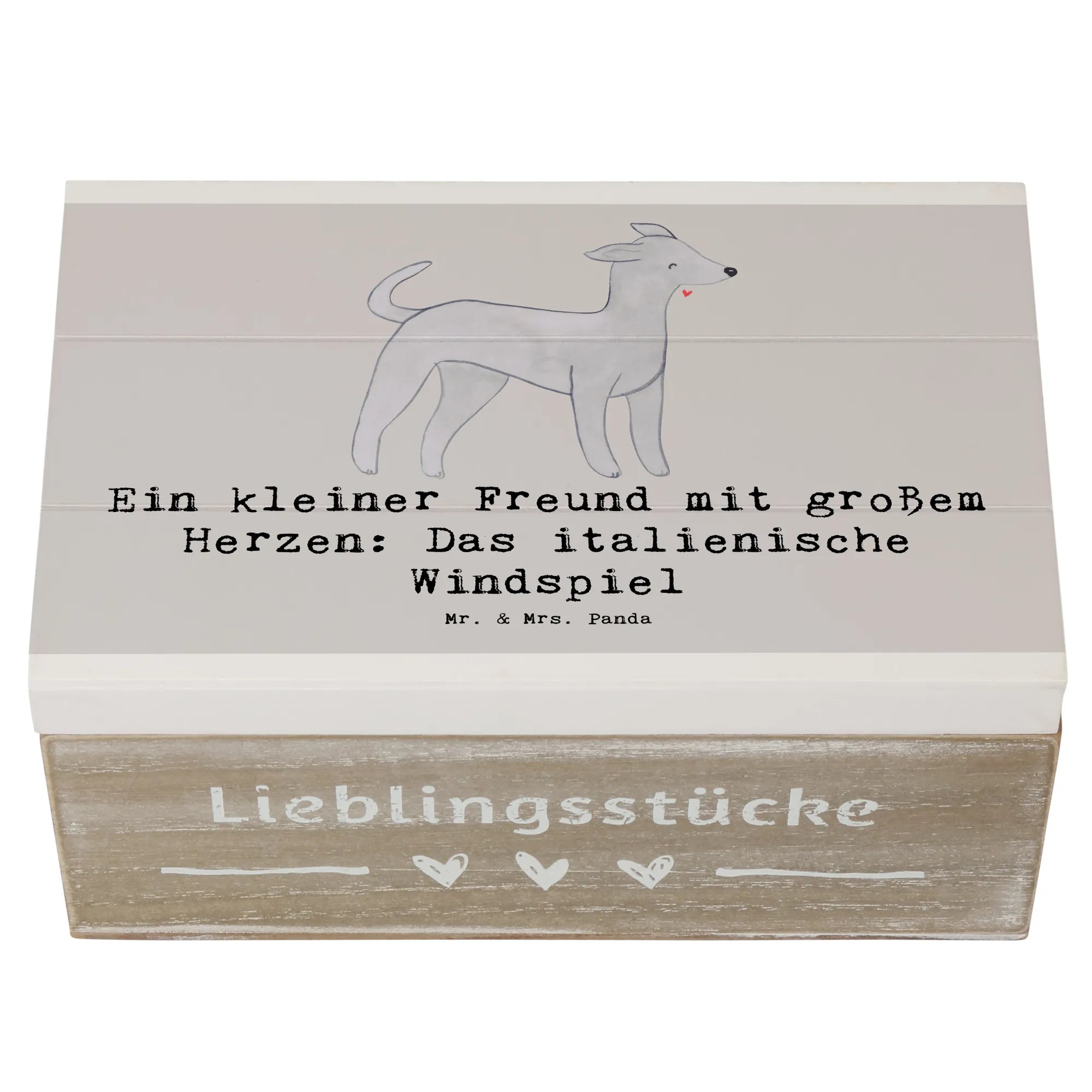 Die wunderschöne Holzkiste von Mr. & Mrs. Panda mit dem Motiv "Italienisches Windspiel" ist das perfekte Geschenk für jeden Hundefan! Diese einzigartige Kiste bietet nicht nur einen stilvollen Aufbewahrungsort für all deine wertvollen Schätze, sondern strahlt auch die Liebe zu unserem vierbeinigen Freunden aus.