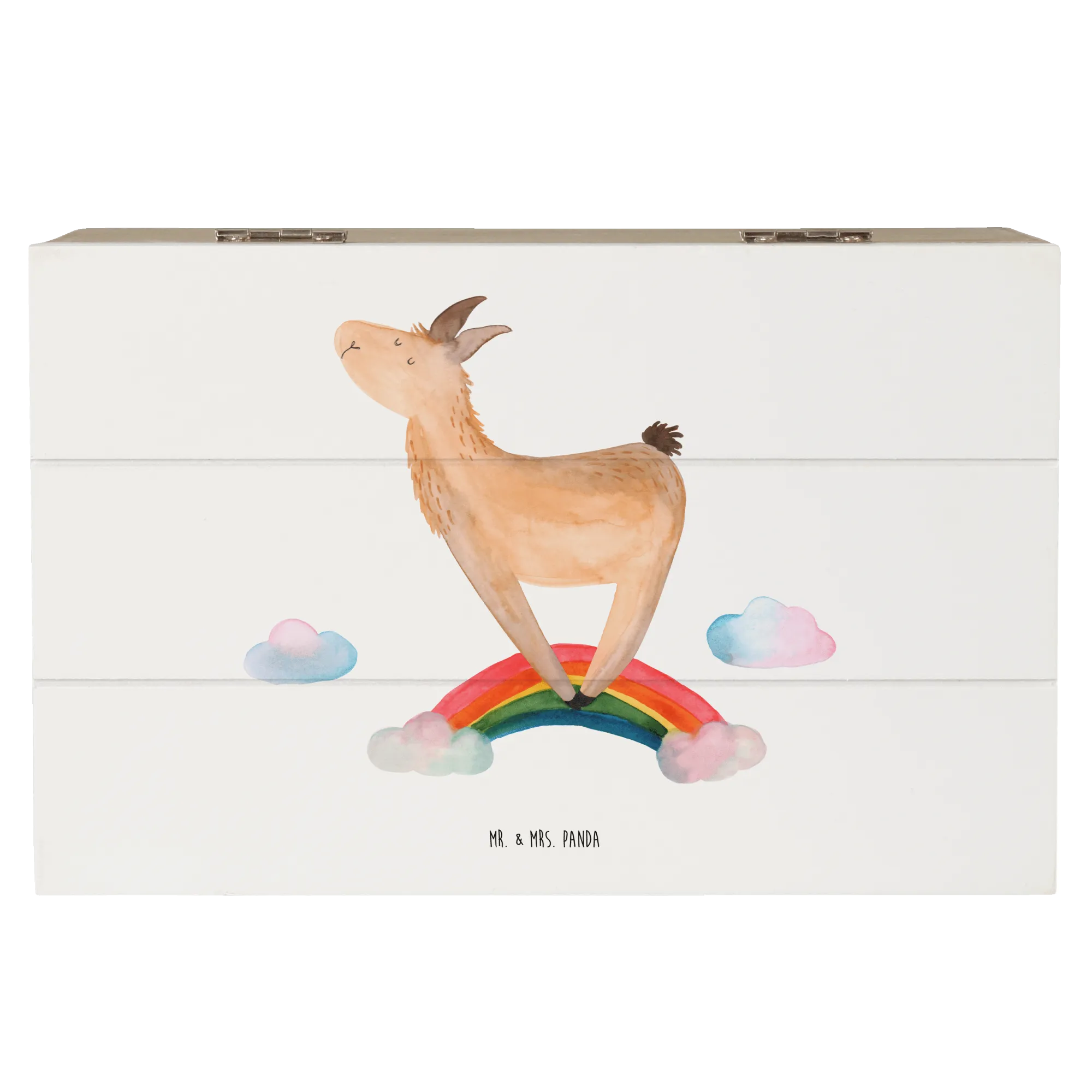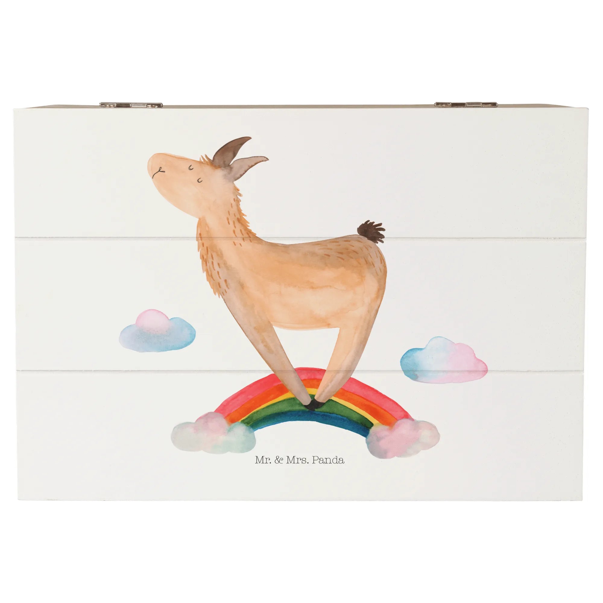 Entdecke die zauberhafte Holzkiste "Lama Regenbogen" von Mr. & Mrs. Panda – der perfekte Aufbewahrungsort für deine wertvollsten Schätze!