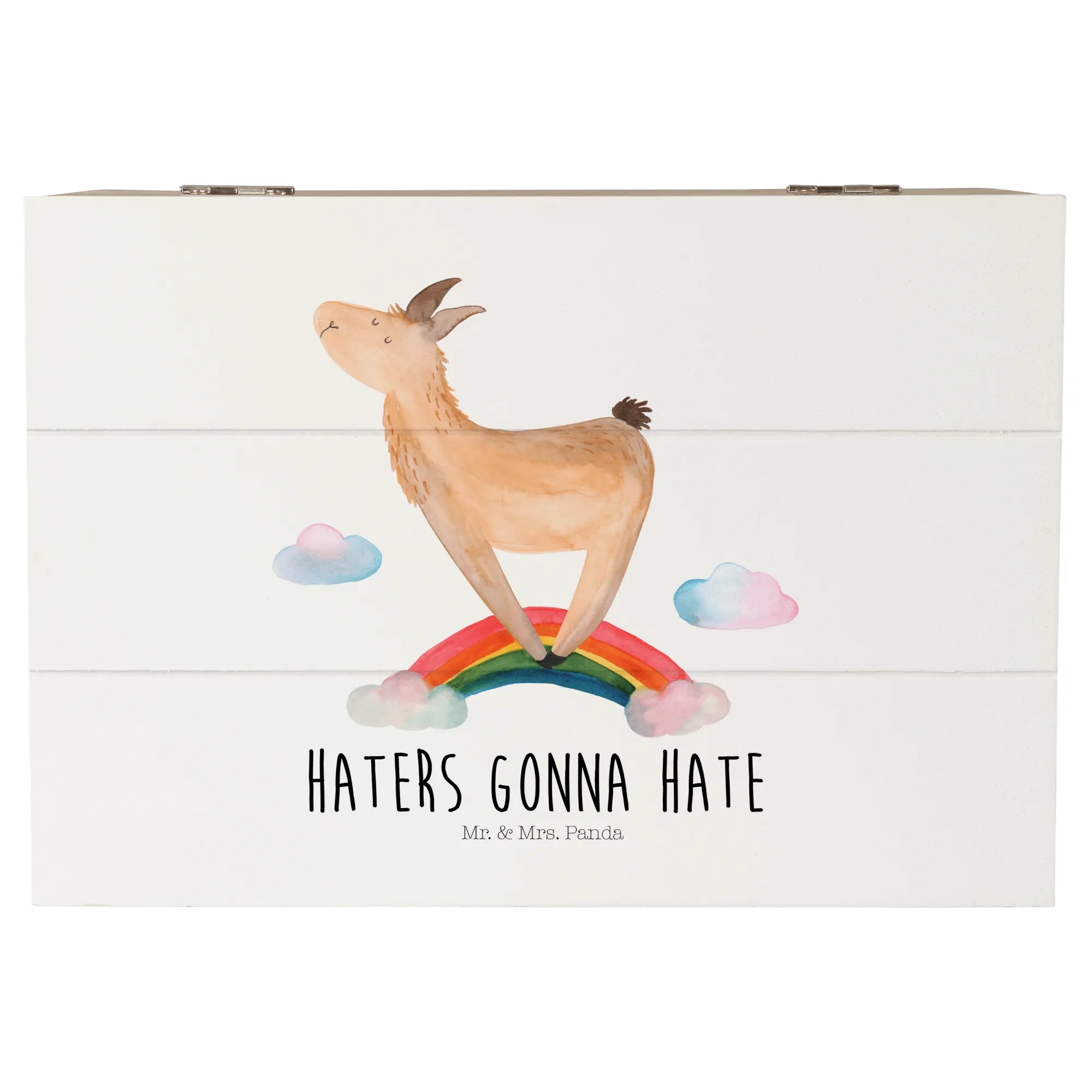 Holzkiste Lama Regenbogen Erinnerungskiste, Schatzkiste, Aufbewahrungsbox, Erinnerungsbox, Geschenkdose, Kiste, Geschenkbox, XXL, Schatulle, Holzkiste, Truhe, Dekokiste, Lama, Alpaka, Schule, Regenbogen, Hobby, Außenseiter, Freiheit, Lamas, Wolkenland, Selbstständig, Haters, Haters gonna hate, Abi